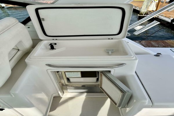 The Tiara 3700 Open preserves a heritage of flexibility for fishing or cruising. She is a true dual-purpose boat with the comfortable accommodations demanded by upscale family cruisers and the cockpit dimensions of a serious offshore sportfishing machine. A conservative profile and modified-V hull with 18 degrees deadrise at the transom make her a performer in any rough water. Reliable power is supplied by turbo-charged 6CTA 430 hp Cummins, providing a 24 kt cruise and a top end around 30 kts.