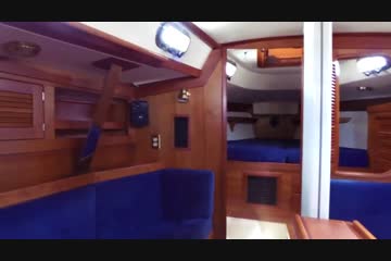 The saloon is finished in the optional maple interior and the cabin sole is teak with inlaid holly. The joiner-work is quite nice. There is center-line salon table with opening leaves on both sides. Excellent ventilation is provided by two Hood overhead deck hatches, S/S dorades and 10 stainless steel Hood portlights. The settees have contoured cushions that are quite comfortable. Additionally the Settee on this boat is convertible to a double, like the option that was available on the 3700's.