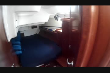 The boat has 3 cabins, with a full stateroom forward, twin bunk rooms aft. The galley has a dual stainless steel sink, a side opening fridge, freezer and a two burner stove with convention oven. The salon is large, seating for 6-8 guests with two settees , a table and an island seat amidships. Her interior joiner work is well cared for with a bright shining finish. The large cockpit seats 4-6 with custom cushions.
