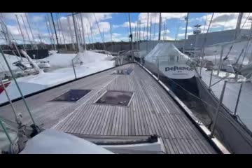 Modern Design: The yacht has a distinct, modern look with a low coachroof, flush hatches, and large vertical hull windows in the saloon that provide ample natural light.