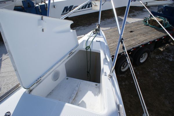 - ft lockers: port for gas bottle, starboard for storage Liferaft compartment below helm seat