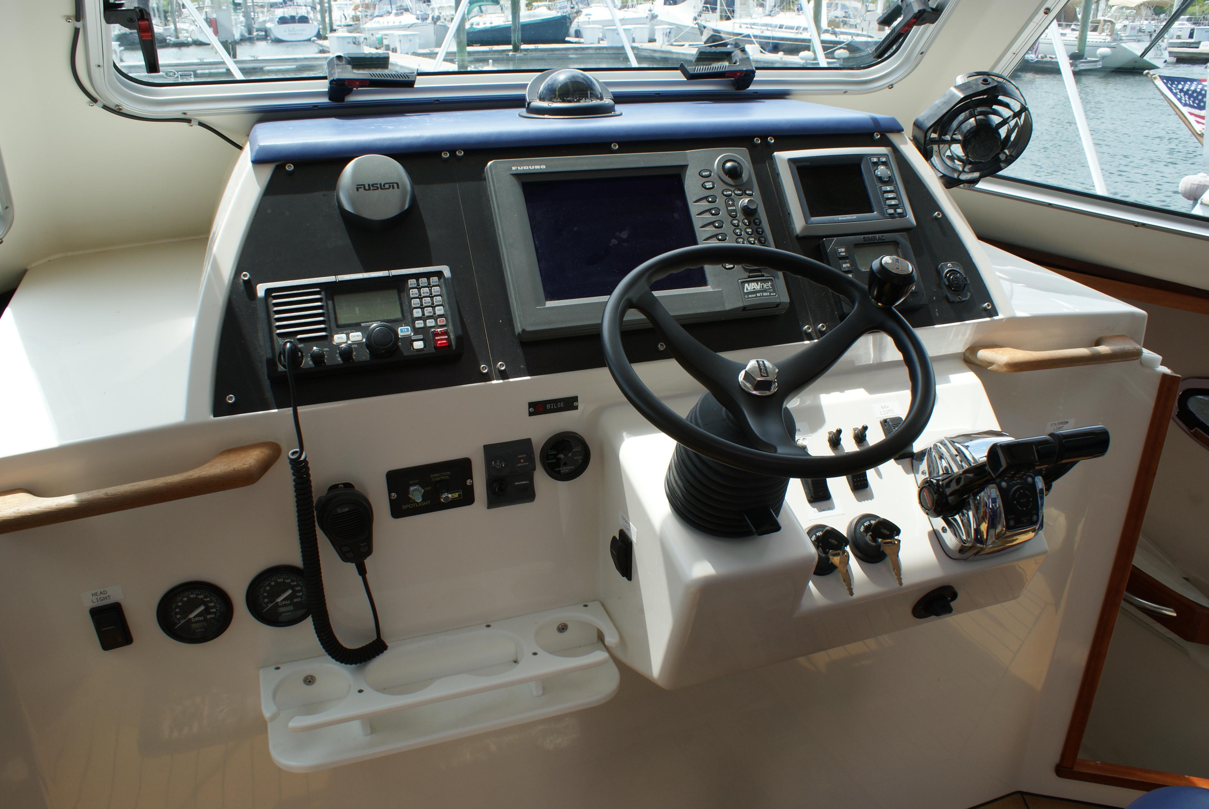 - Helm window fully venting with wiper and freshwater rinse
