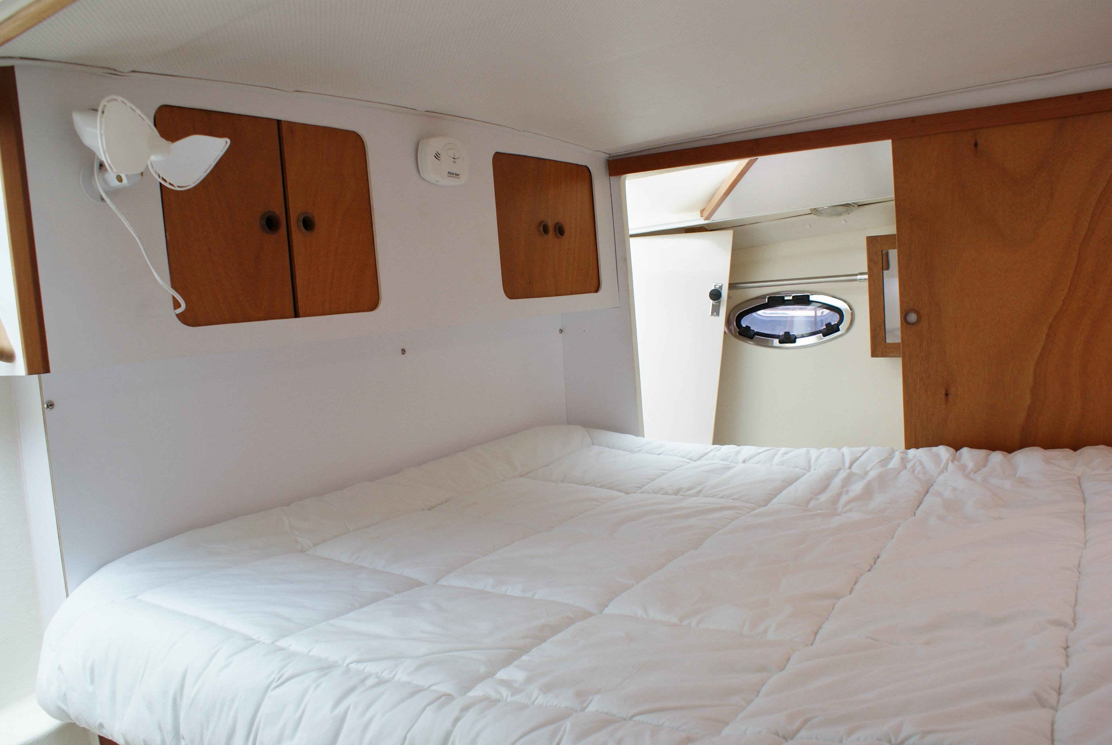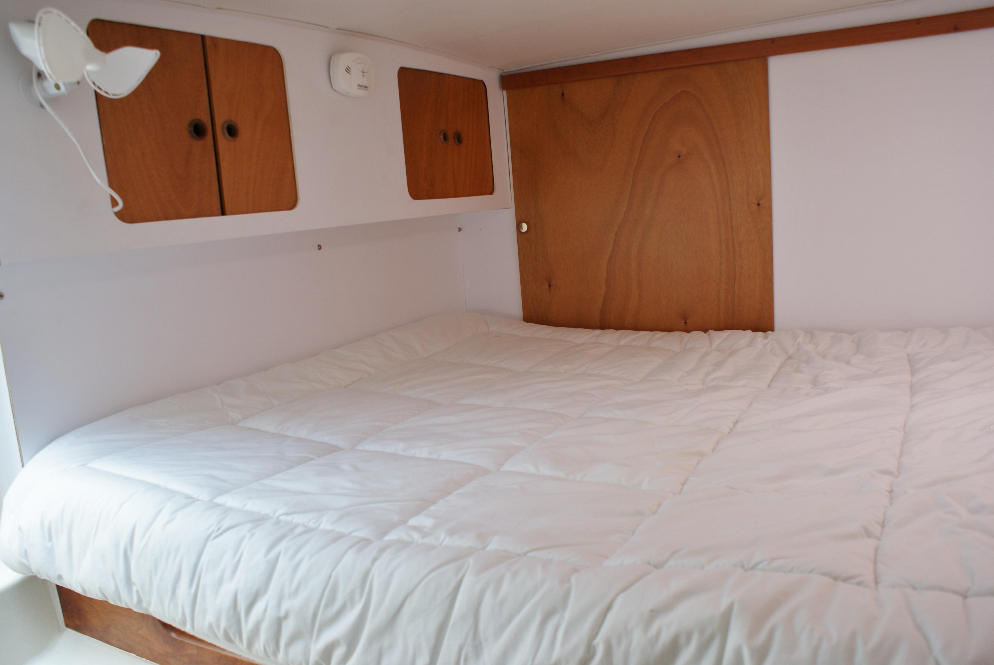 - Full queen sized berth with laminated memory foam pad