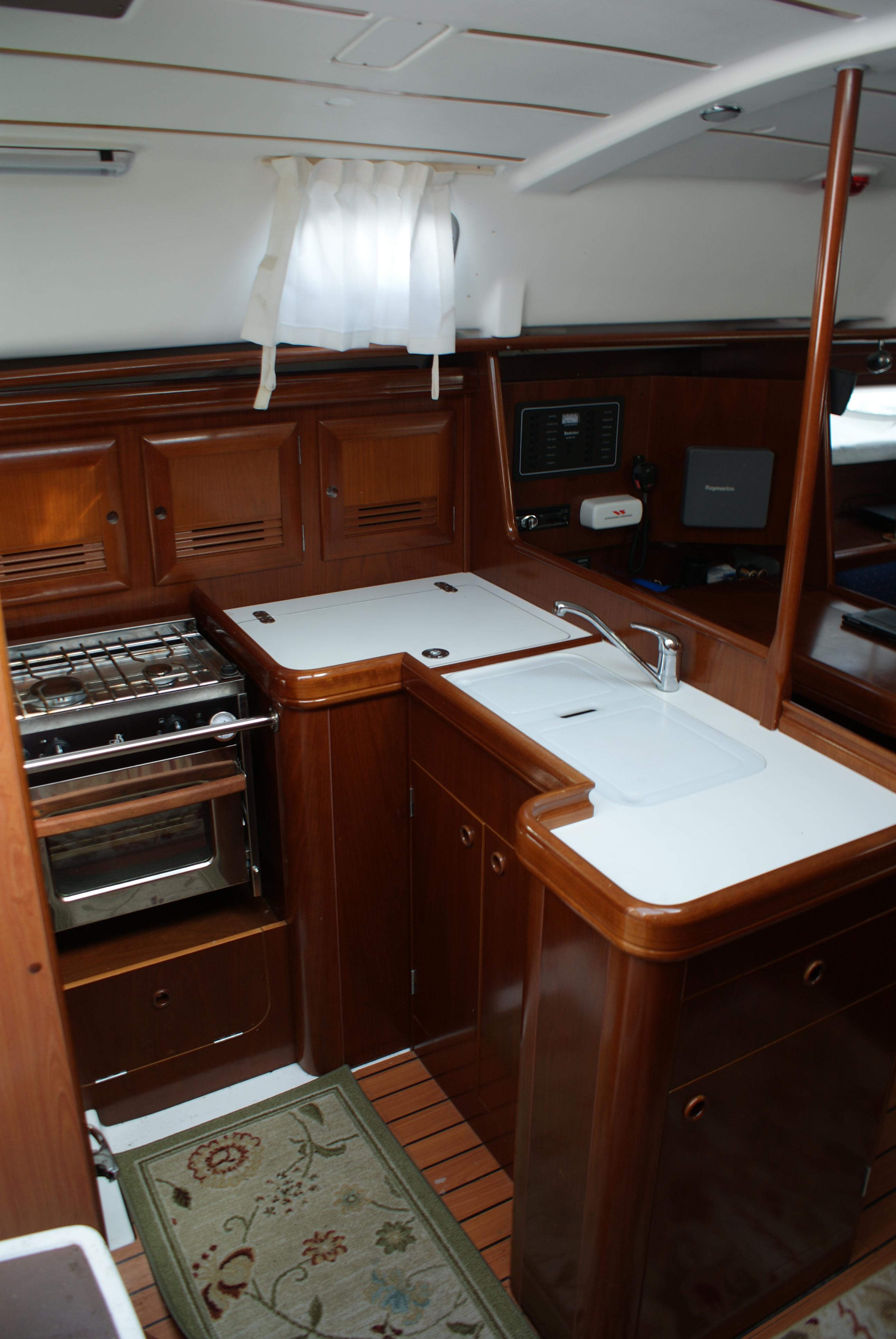 In her large L-shaped galley you’ll find every needed amenity as you prepare for evening guests in one of the most seaworthy galleys afloat.