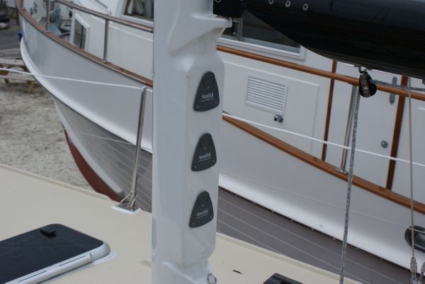 Harken Unit 0 headsail furler with control leading aft to cockpit.