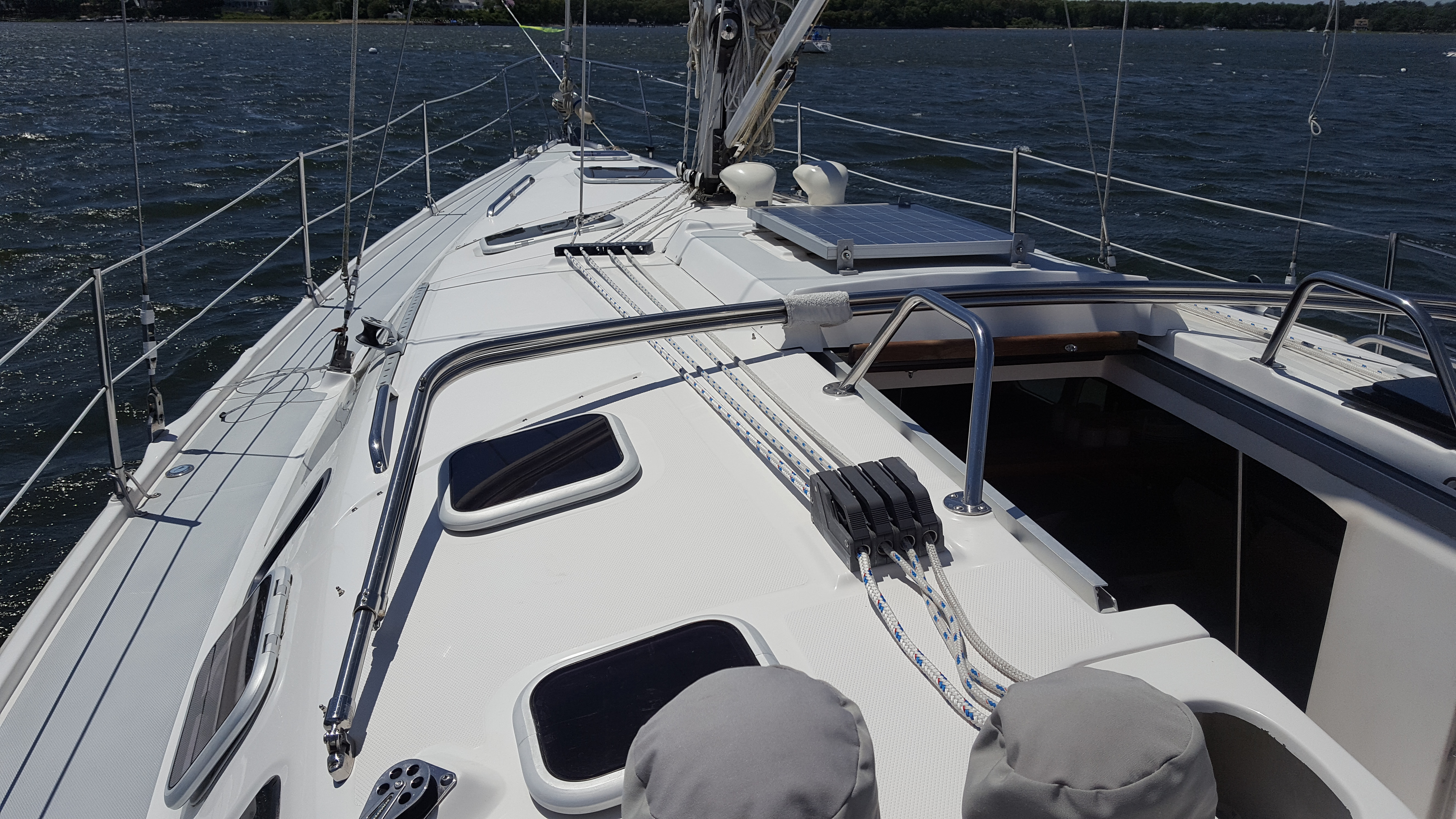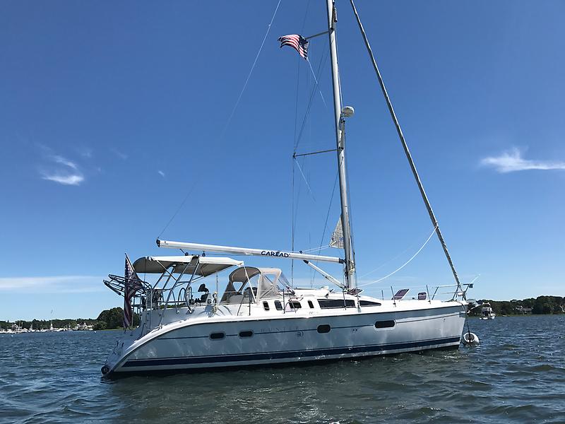 This Hunter 410 Cariad is a spacious and comfortable cruiser. The Hunter 410 is one of the most popular boats they made. Cariad comfortably sleeps seven in two staterooms and the salon table that converts in to an extra double berth. She was recently outfitted with new mattresses in both state rooms and new interior cushions. She is a beautifully cared for clean boat.