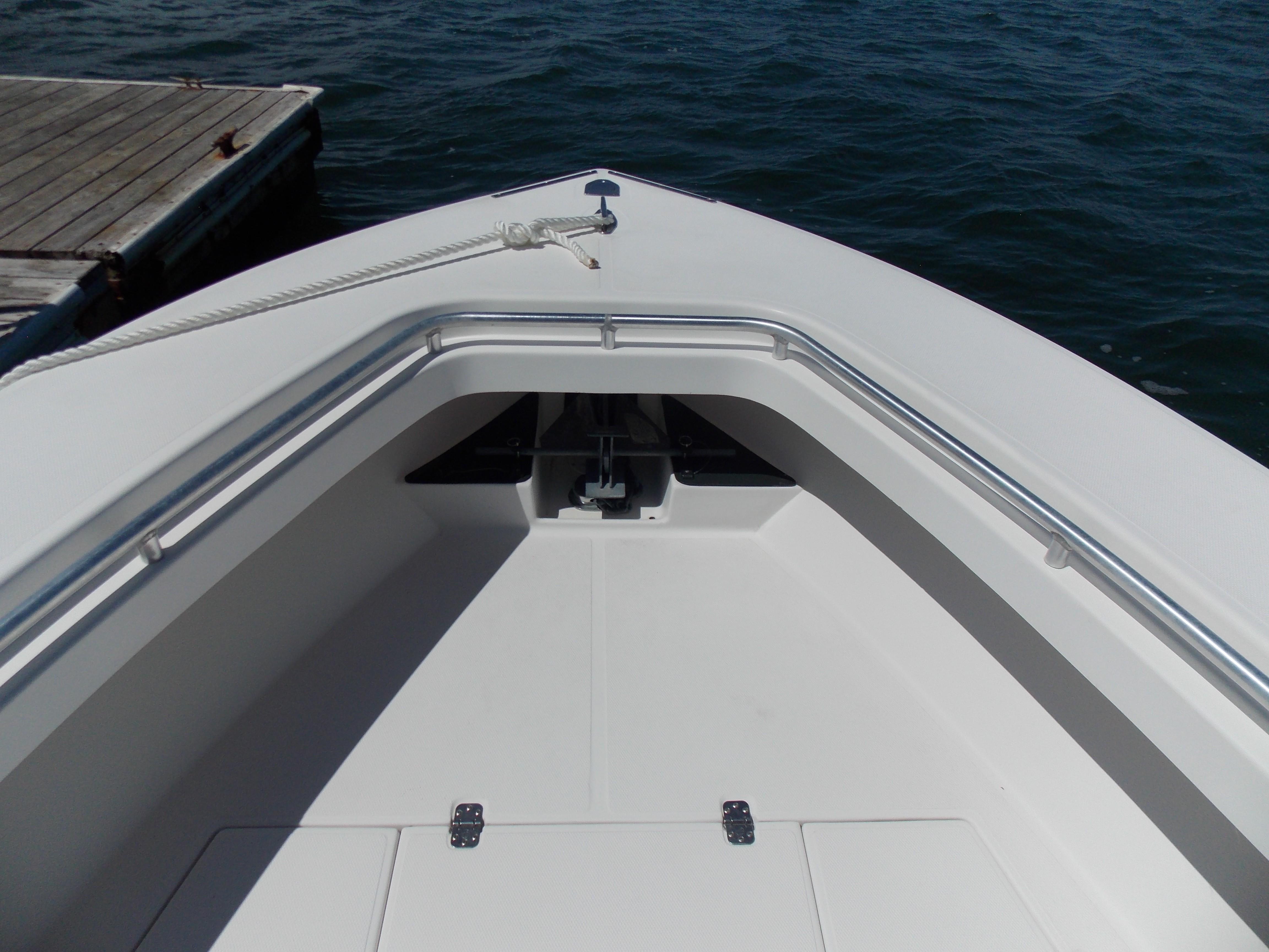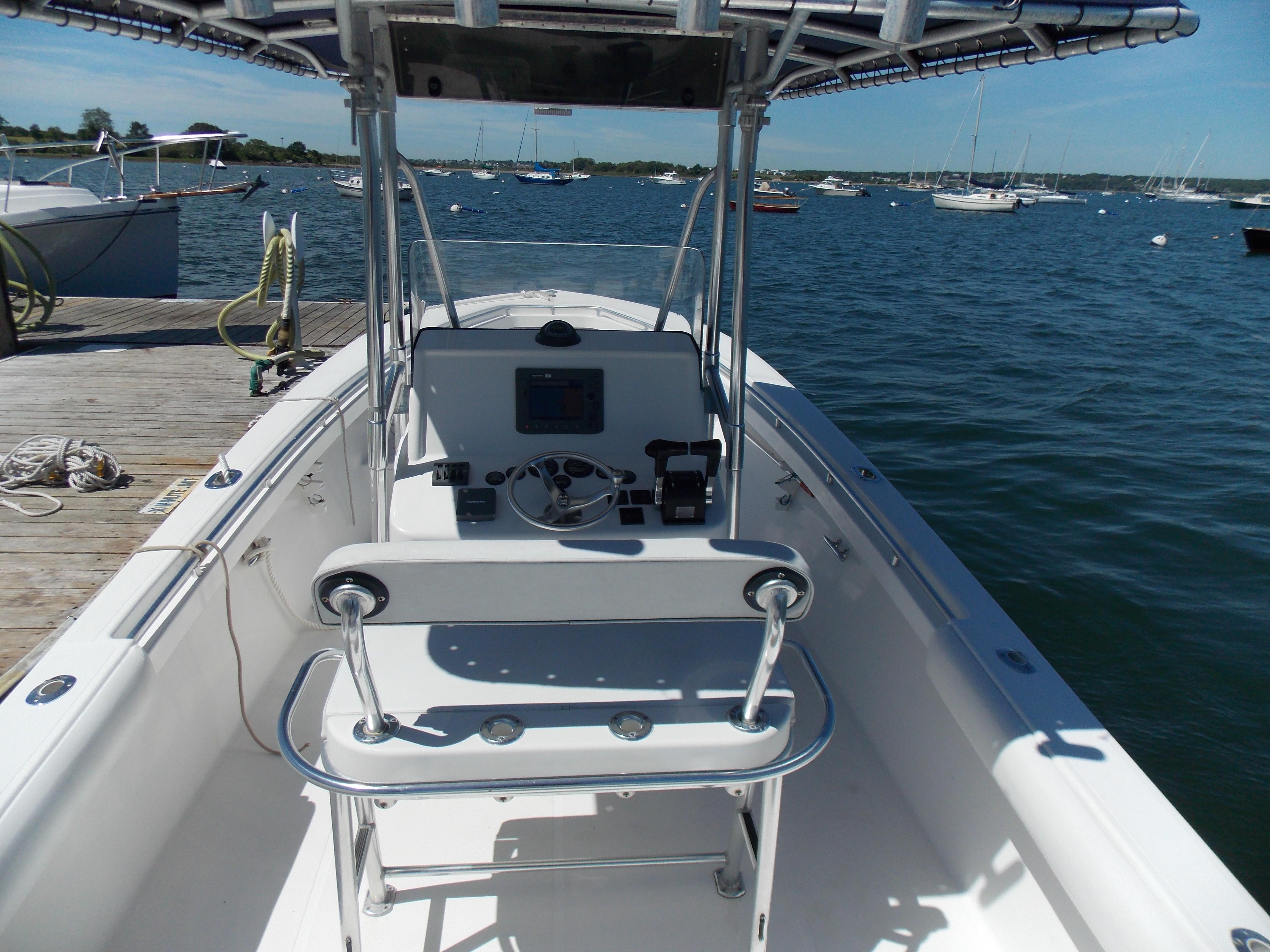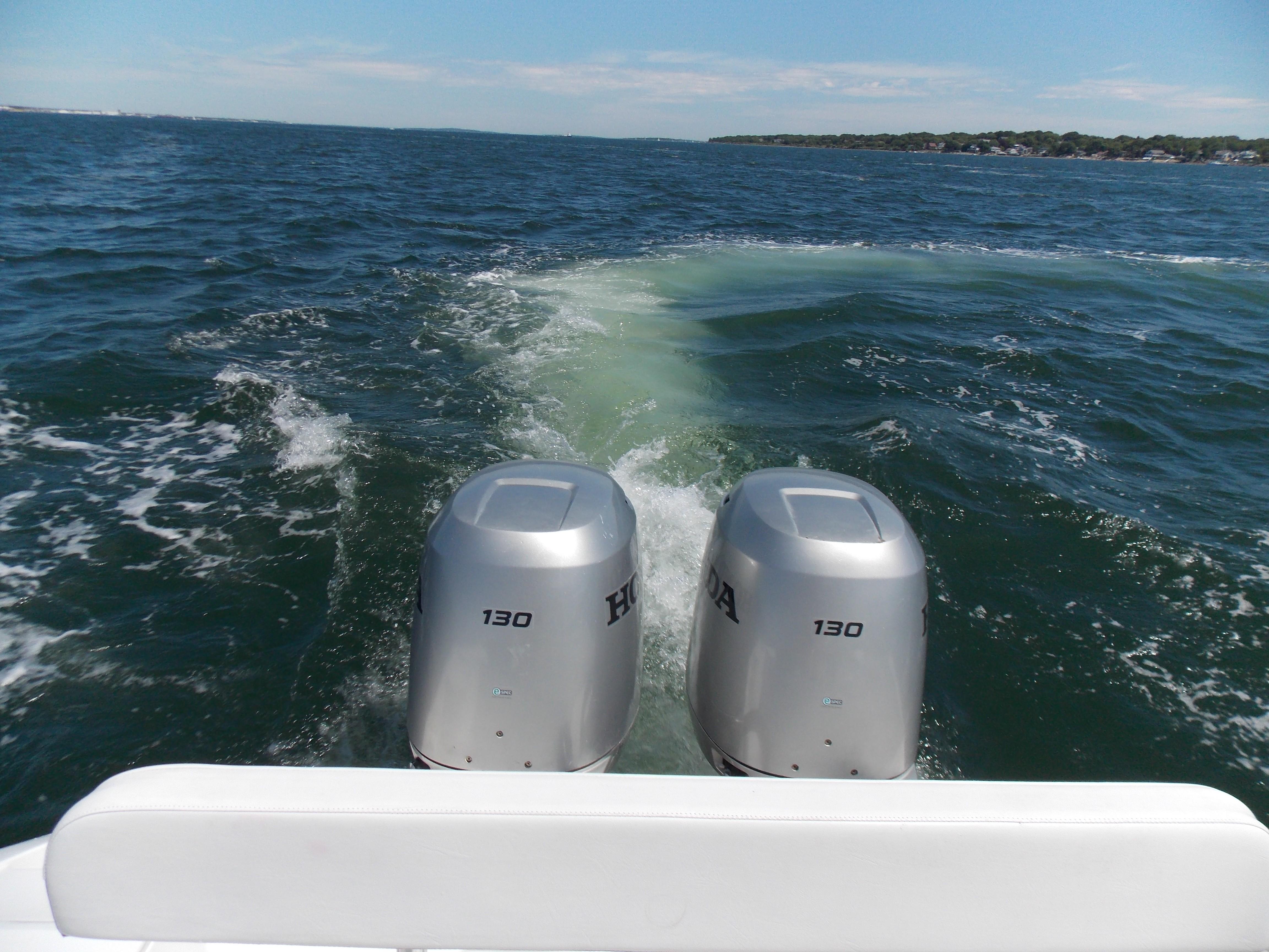 The owner reports the boat handles 2-3 foot chop with ease at 25+ knots and the boat feels larger when it counts. This boat has been an all-around performer for everything from cruising around Narragansett bay to 30 miles night runs fishing stripers off Block Island and beyond. Although not the fastest center console she is smooth and very efficient to run. If you want to do 40 knots and burn 30 gallons per hour this is not your boat. If you want to cruise at 27 knots all day long, she is well worth a look.