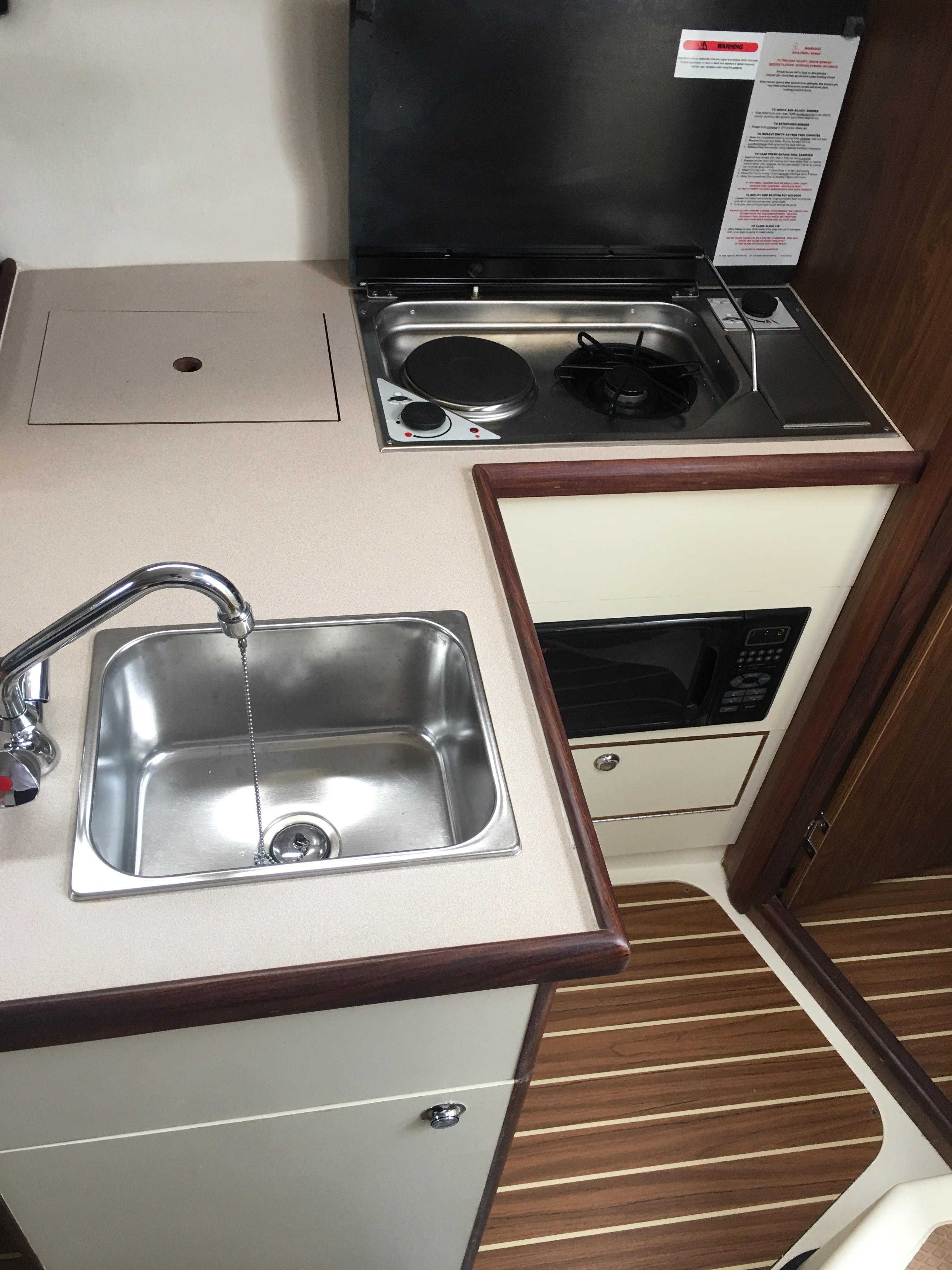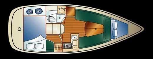 Description This 27' cruiser is an ideal size for small families that are looking for a blend of comfortable accommodations in an easy-to-handle size. She features an open plan main salon, galley and forecabin, plus offers a private head/shower compartment and a private double athrwarthships aft cabin. Her ease of use is complimented by the galley's design which includes a removable ice chest or cooler. This cruiser is equipped with a marine head, shorepower, hot water, etc. - well suited for marina berth holders. She has a fine blend of beautiful exterior lines and a spacious, comfortable interior. Brisk performance in a stable hull form help ensure that your cruising time is always enjoyable.