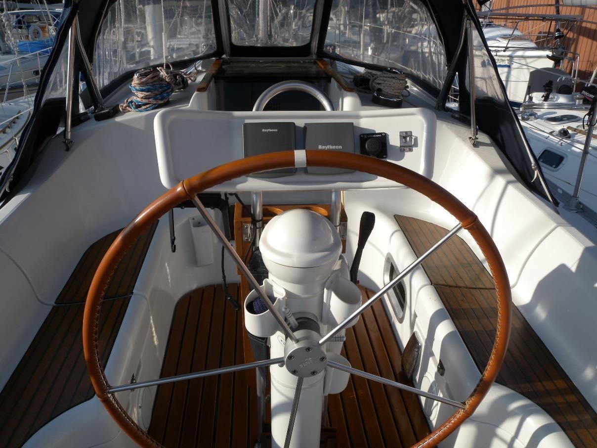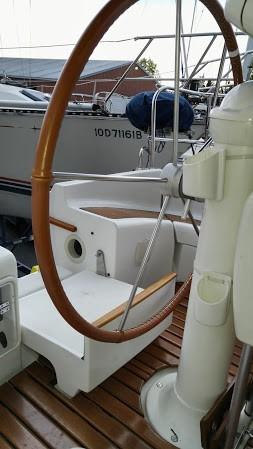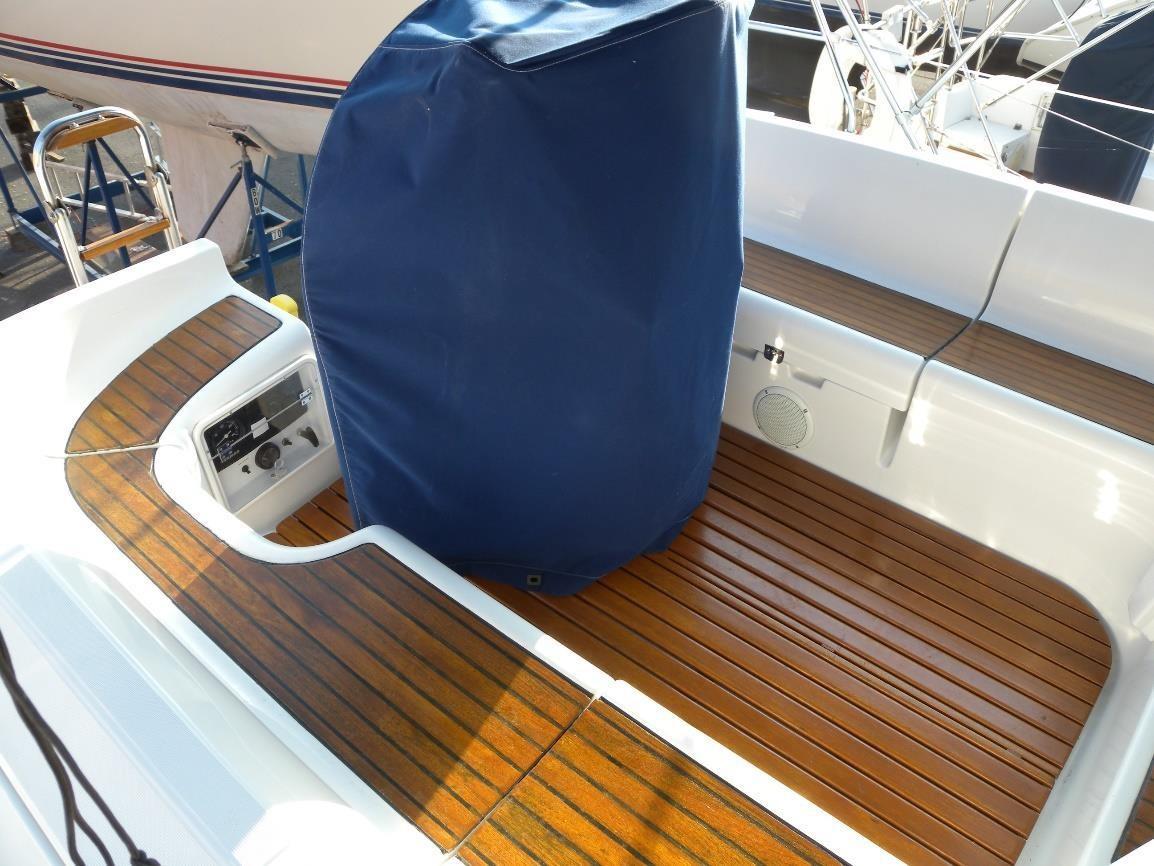 - Grated varnished teak in-lay on cockpit floor