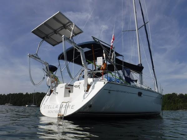 - Atkins Hoyle-heavy duty painted (white) SS dinghy davits with solar panel mounted on top