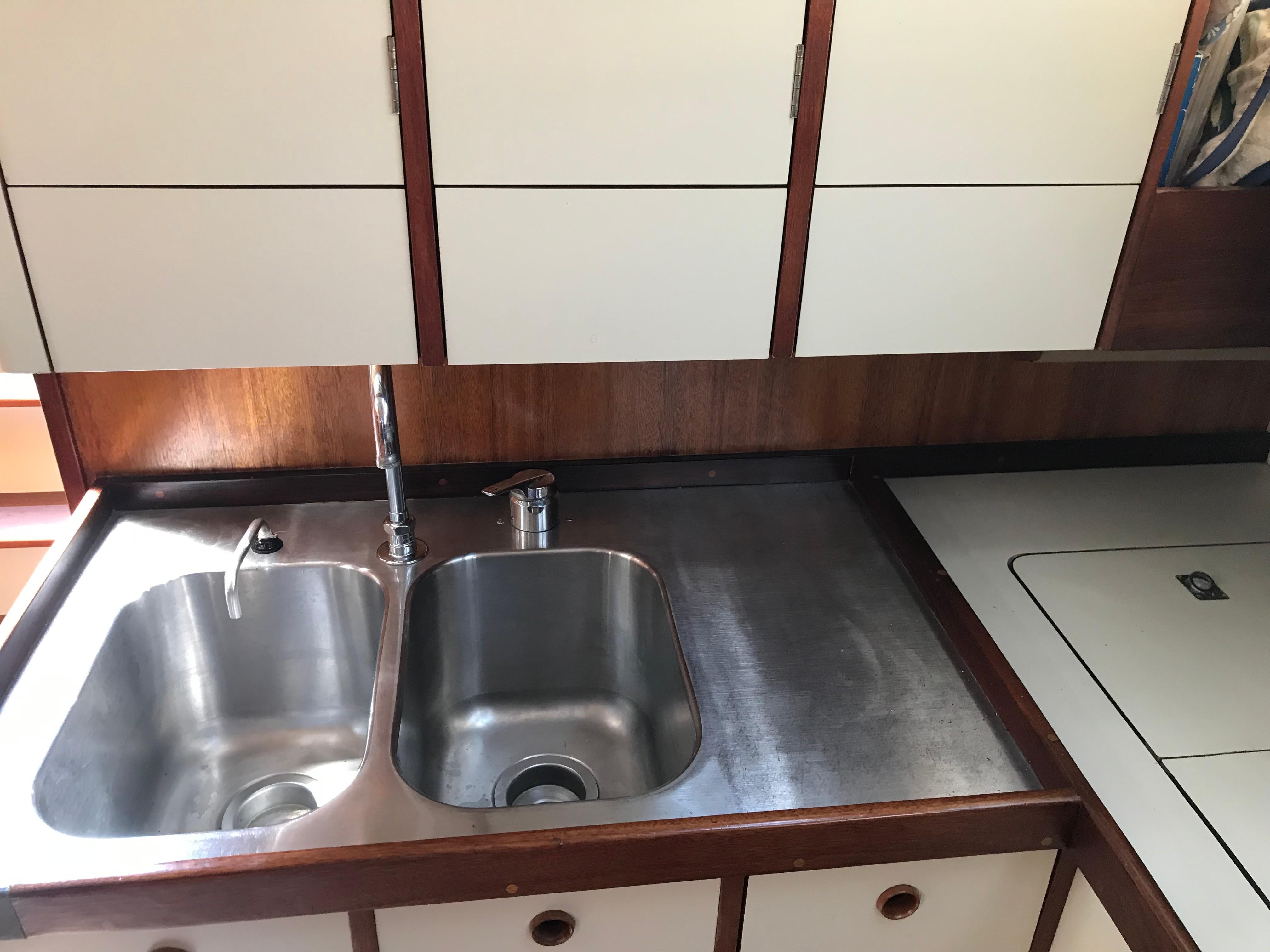 The shower in the cockpit is controlled by a Grohe temperature & pressure compensated valve in the lazarette