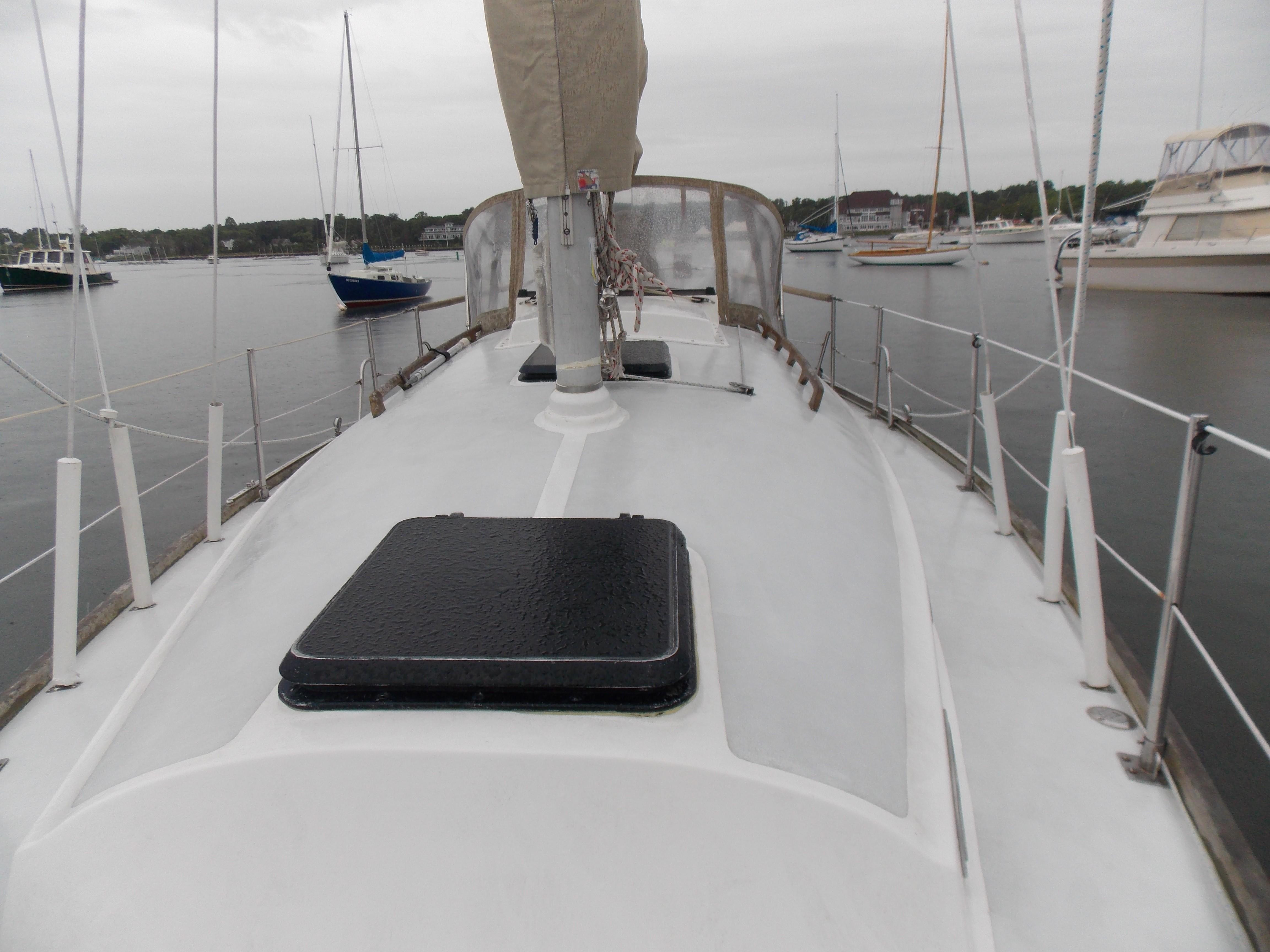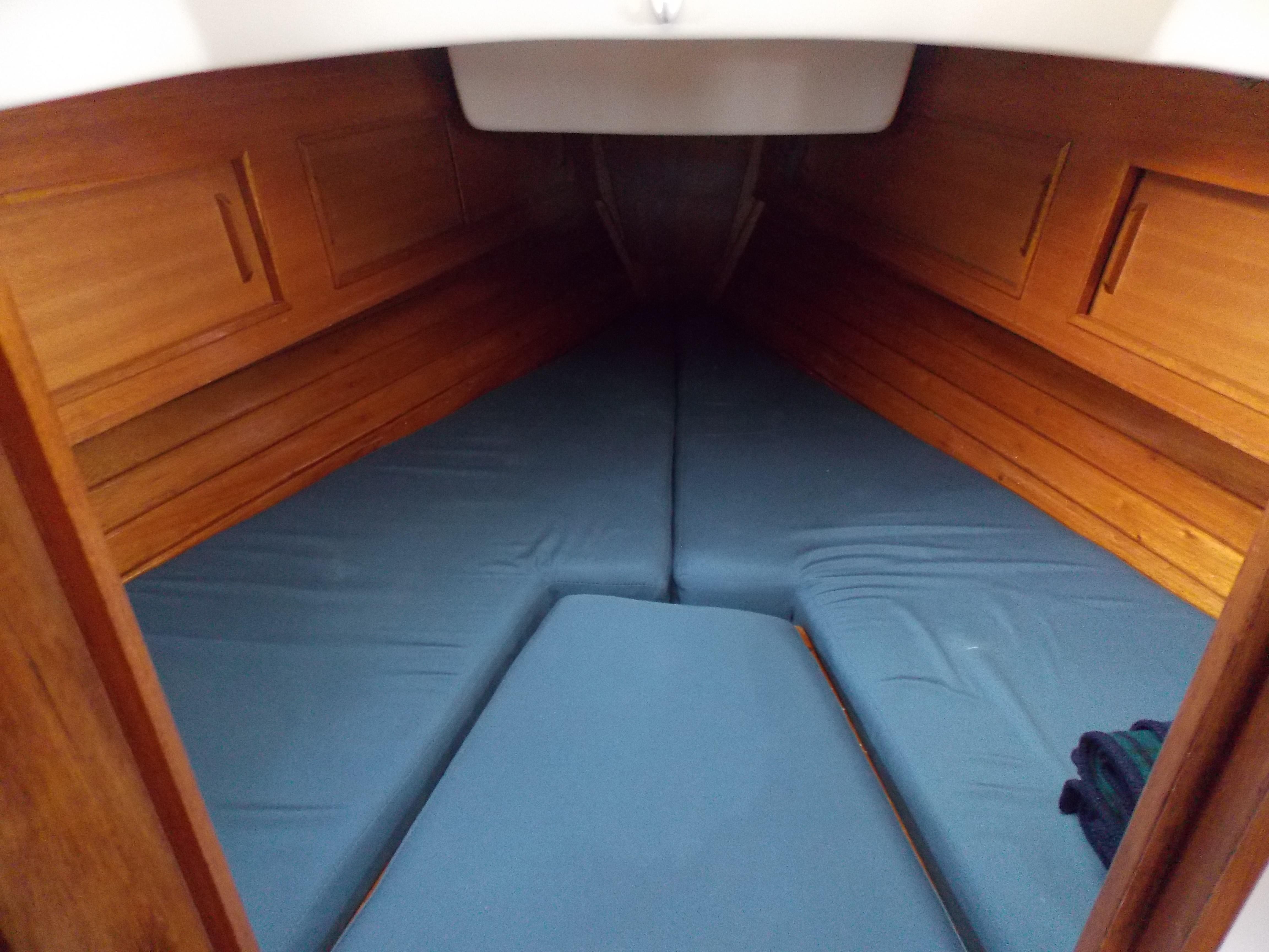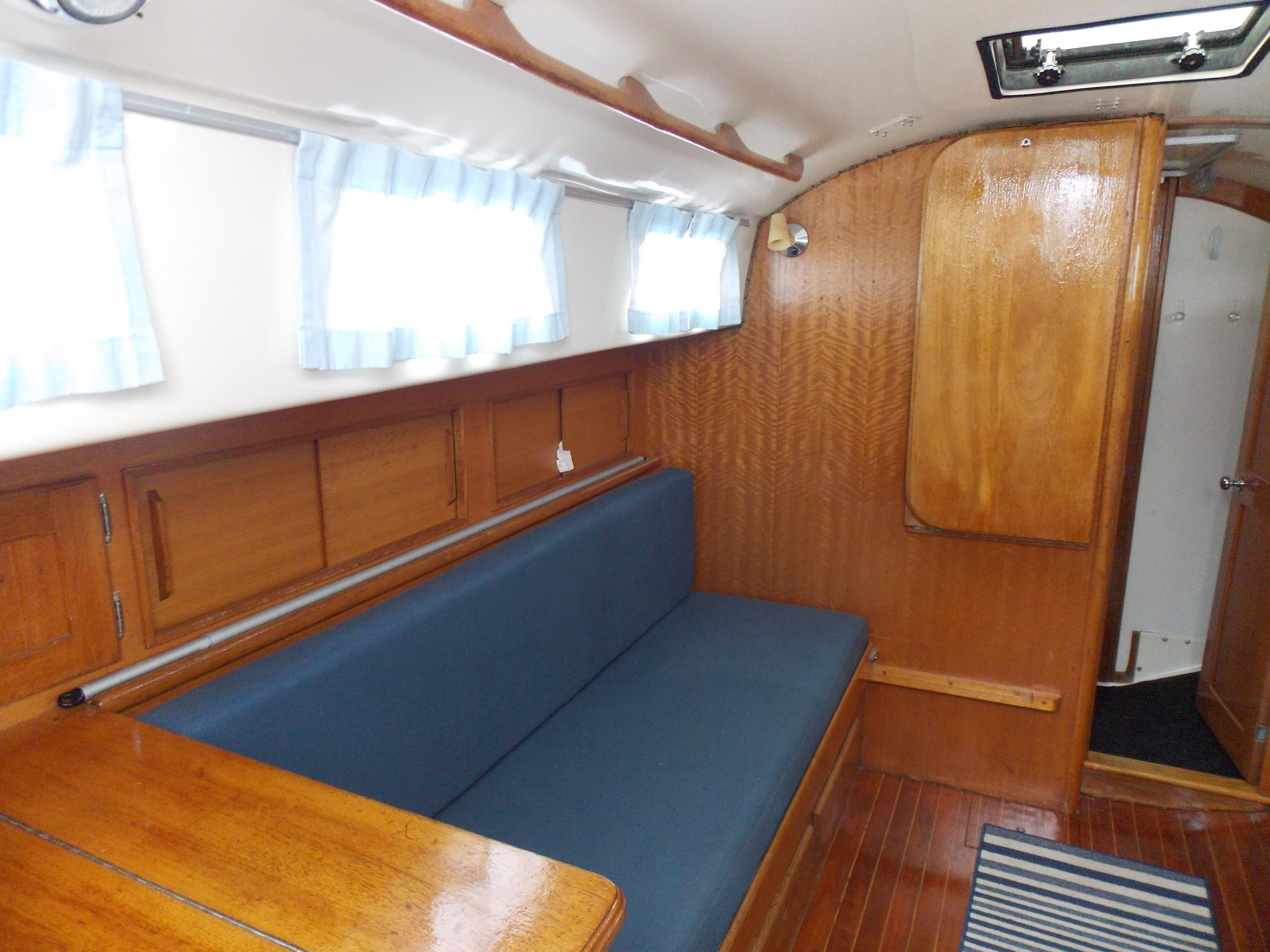 The Bristol 29.9 has a traditional layout for this size boat starting with a forward V-Berth. The head is next aft to port. The open main salon has settees to port and starboard with a bulkhead folding dinette table. The port berth is convertible into an additional double berth. The L-shaped galley is aft facing starboard with a stainless sink, icebox and Origo alcohol stove and oven. Opposite to port is the nav-station and quarter berth. The teak and holly sole was refinished in 2010 and new upholstery in 2003.
