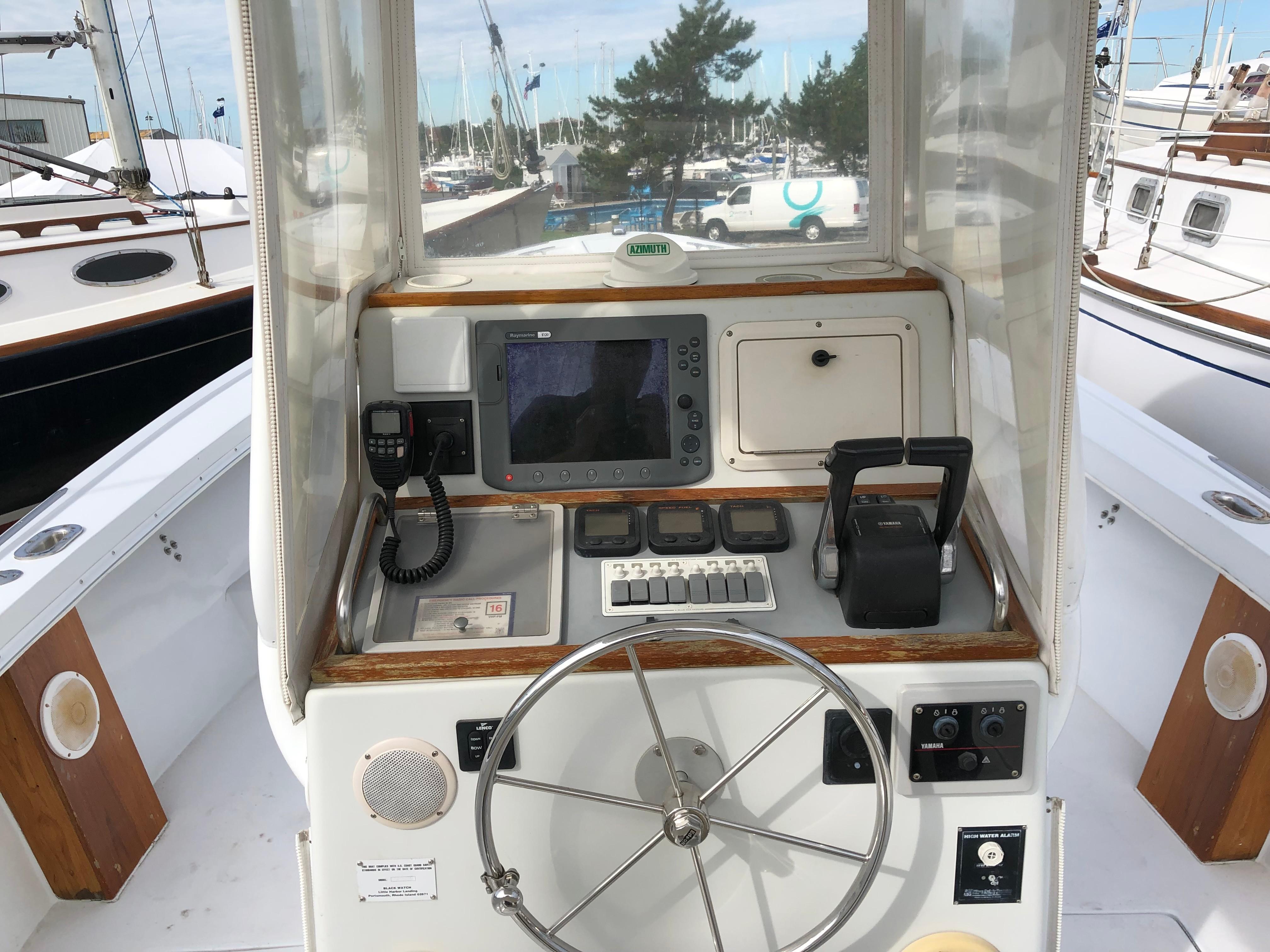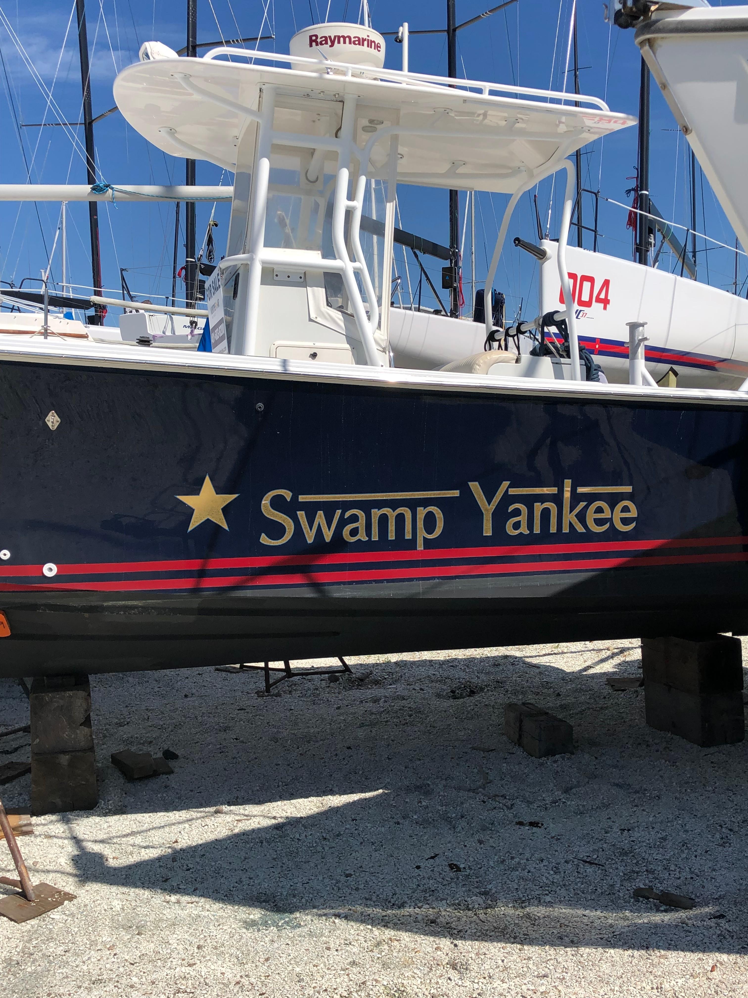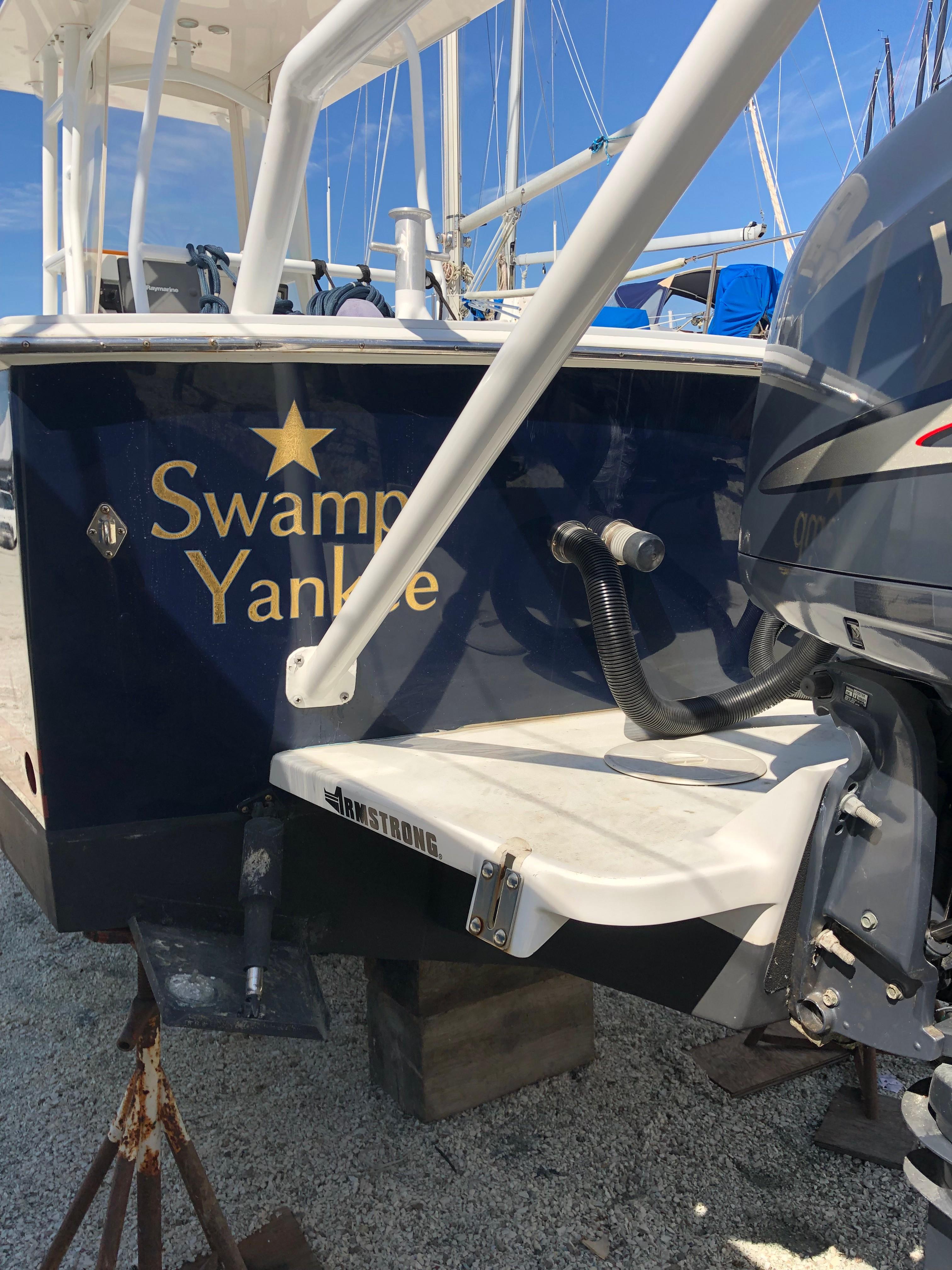 "Swamp Yankee" is a unique Black Watch 26' Center Console. The boat has been professionally maintained and has been recently updated with new flag blue Awlgrip topsides, white Awlgrip nonskid deck paint and two Yamaha 225hp four stroke engines. An updated Raymarine C120 GPS chartplotter and radar as well as Standard Horizon VHF round out a very nice boat.