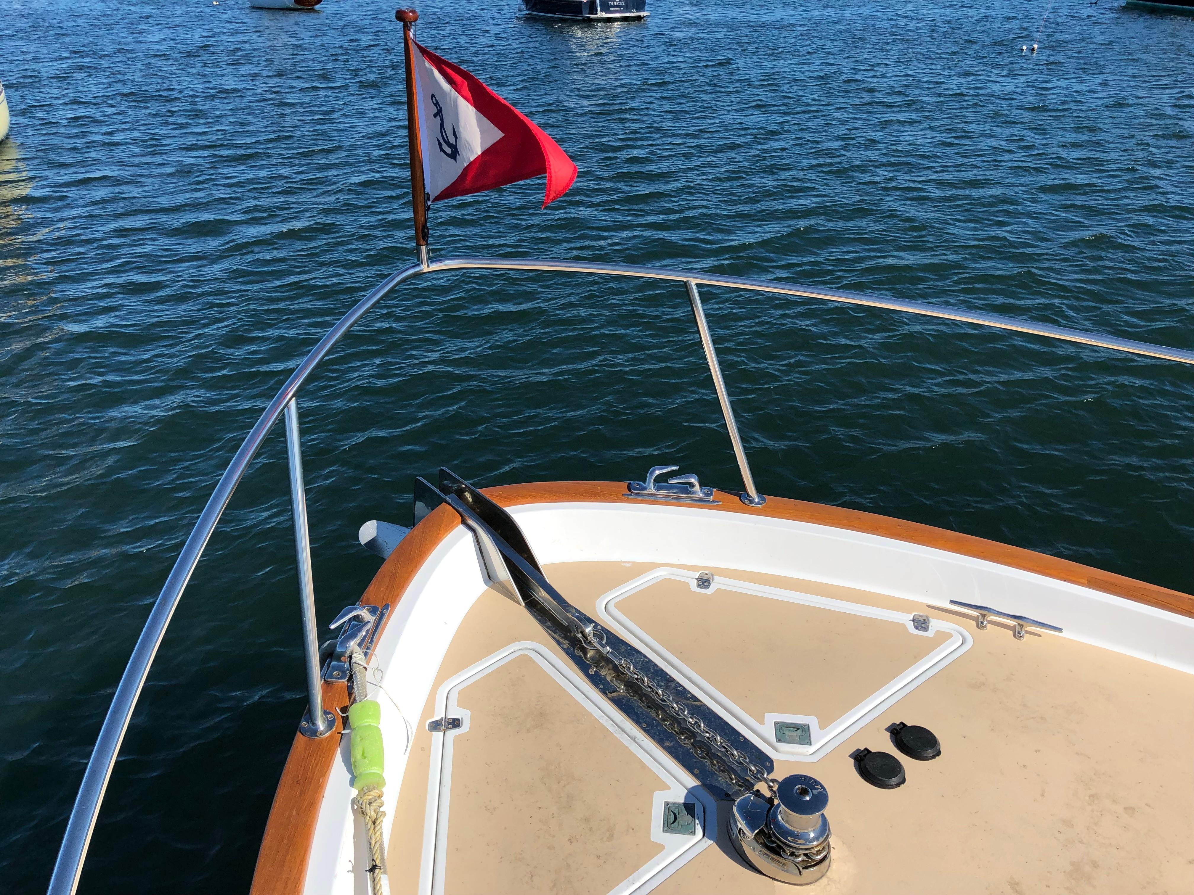 - 45lb. S/S CQR Anchor on bow roller (20' 3/8 "S/S chain with rode)