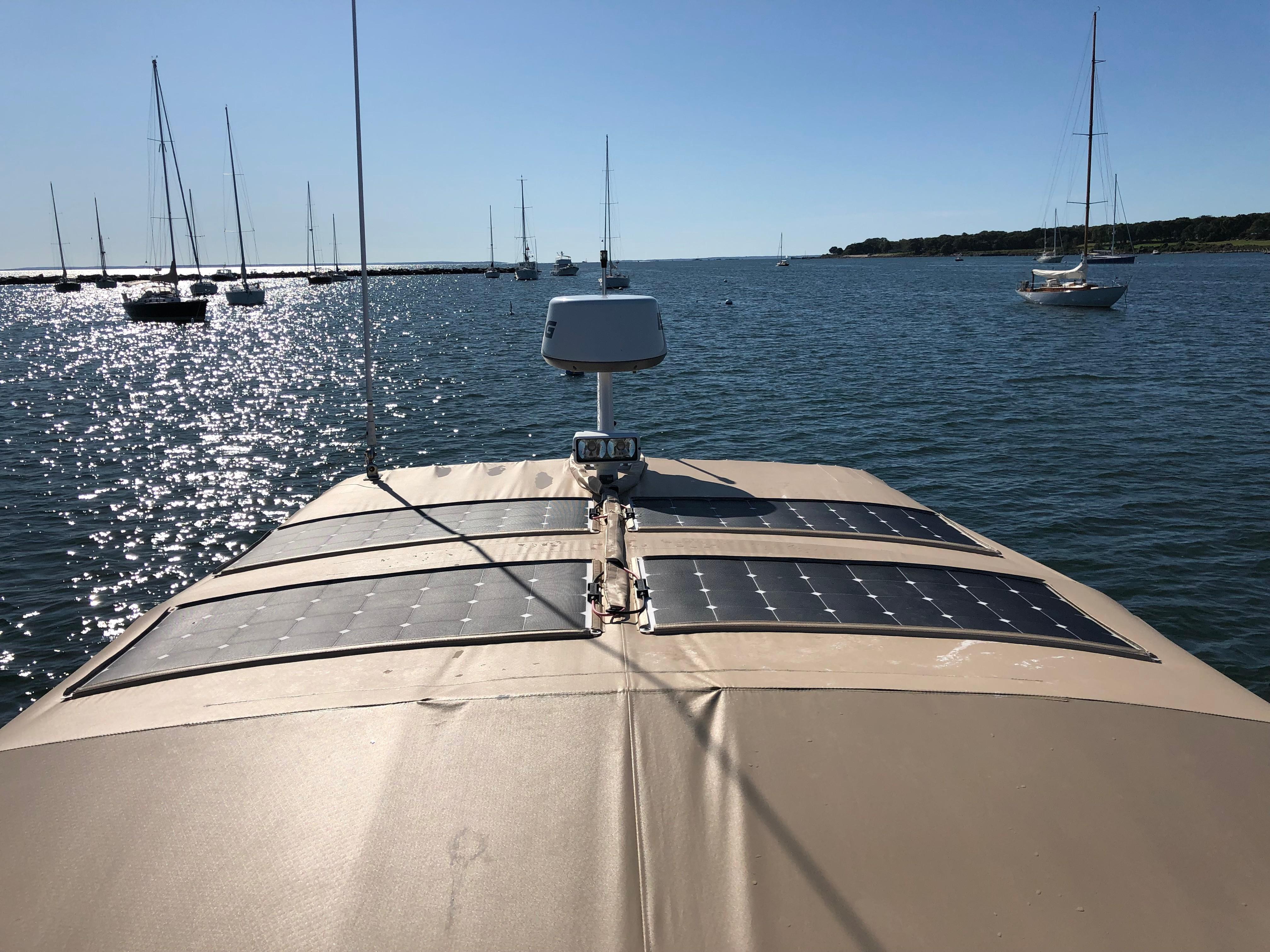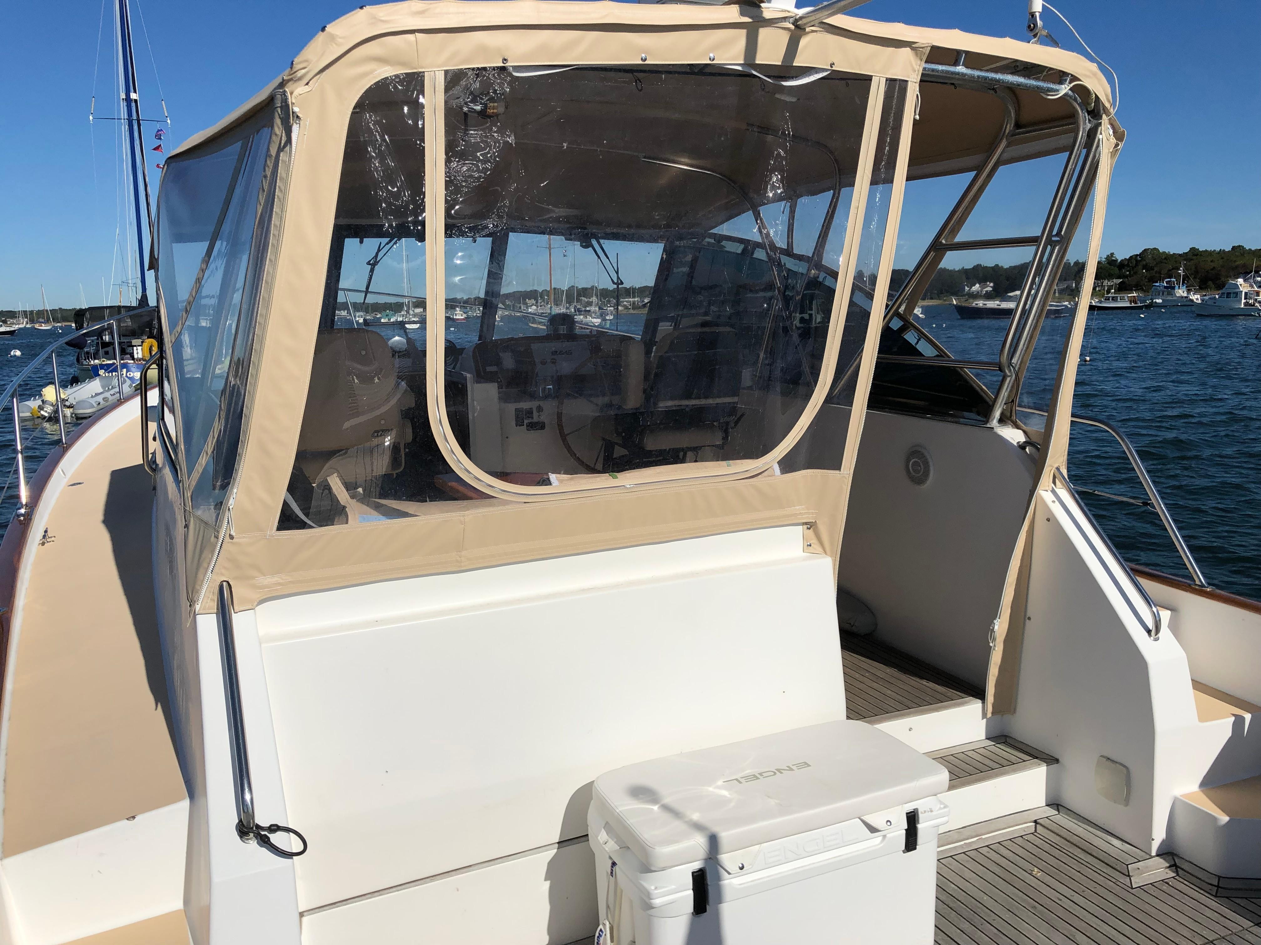 - Stamoid canvas top and sides with custom "screen door" and screens for aft-facing pieces (2017 by Creative Canvas, New Bedford, MA)