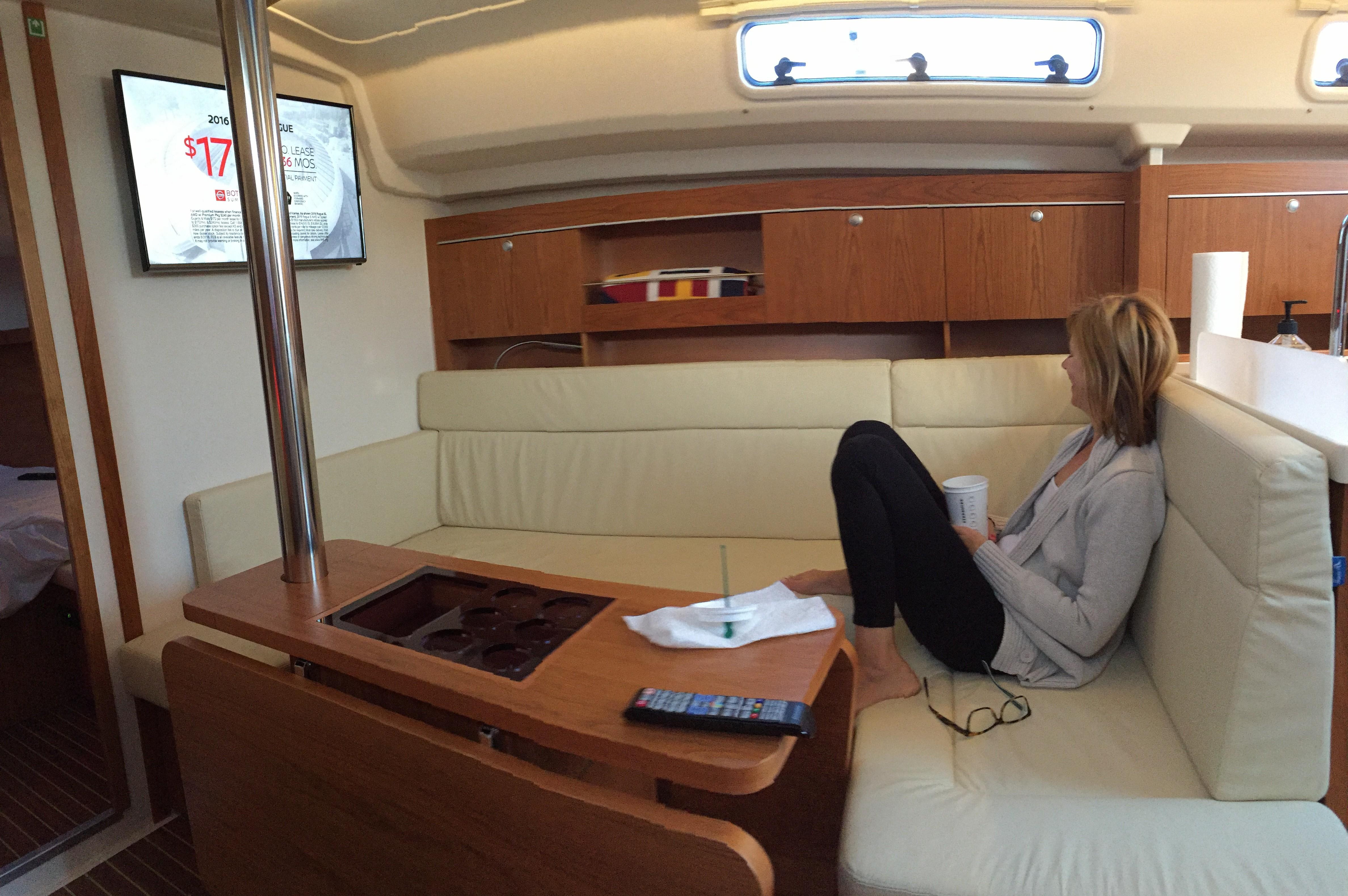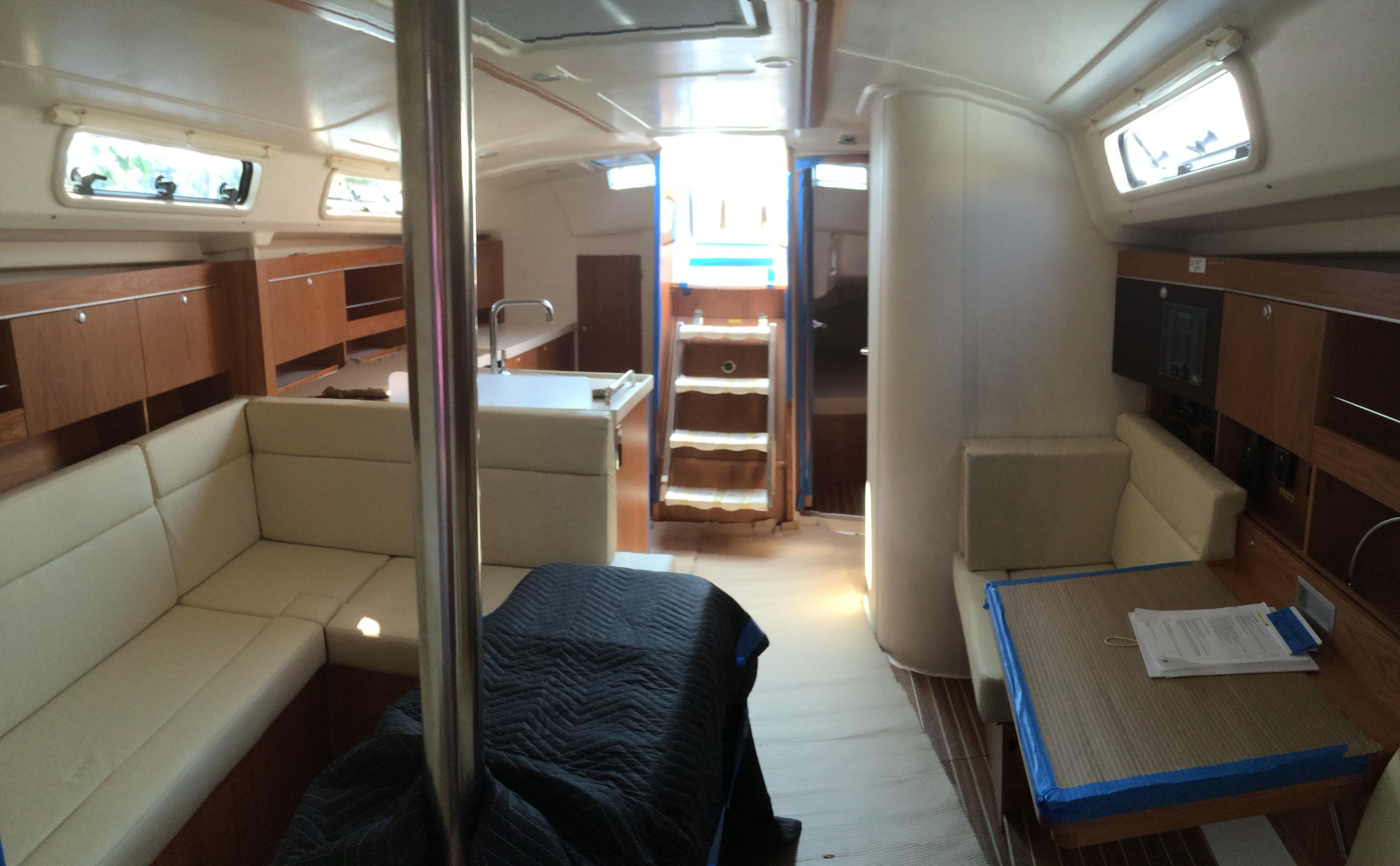 - Large main salon with U-shaped settee to starboard that converts to double berth