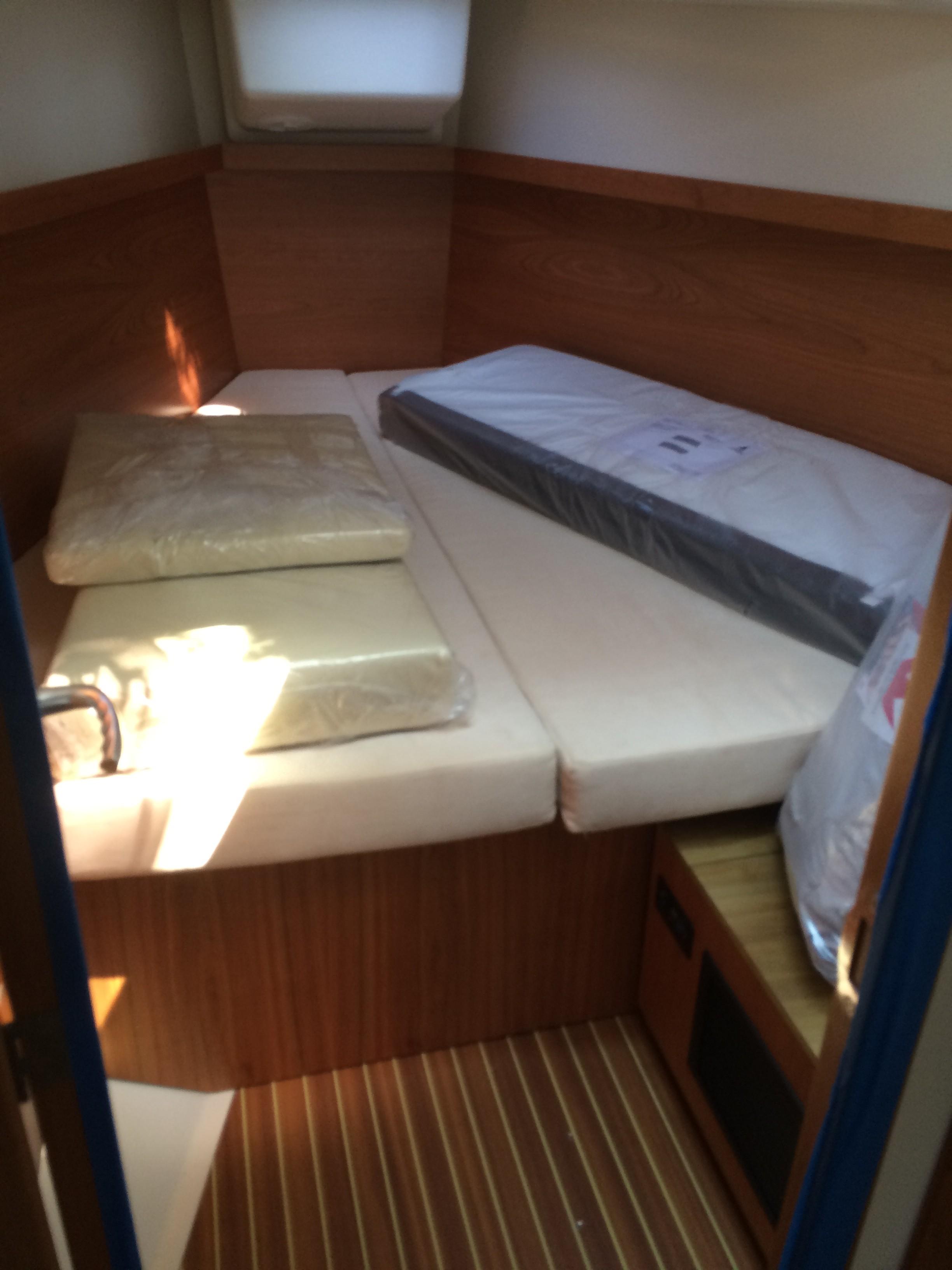 - Double berth (6’10’’x5’) with 4’’ cushions