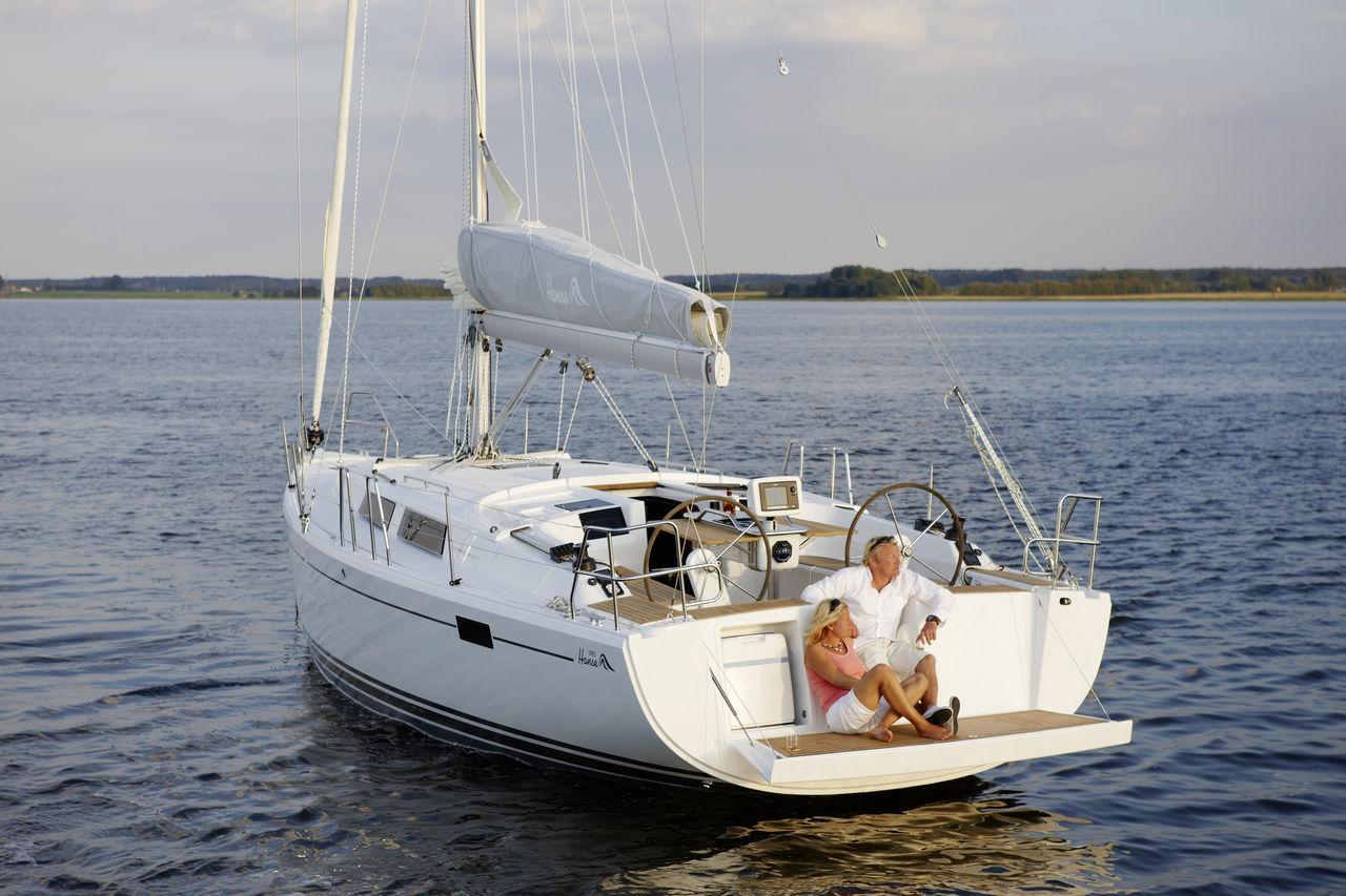 The Hanse 385 offers a wide range of comforts that make cruising a relaxing and enjoyable experience. Hanse takes its design quality a step above with thick cabinetry doors, plush upholstery, and ample natural light through large opening Lewmar ports and hatches. The interior design offers an attractive and functional space with a large salon and gourmet galley for entertaining, storage throughout the yacht, spacious double-berth cabins forward and aft, and a large modern head with plenty of elbowroom for showering.