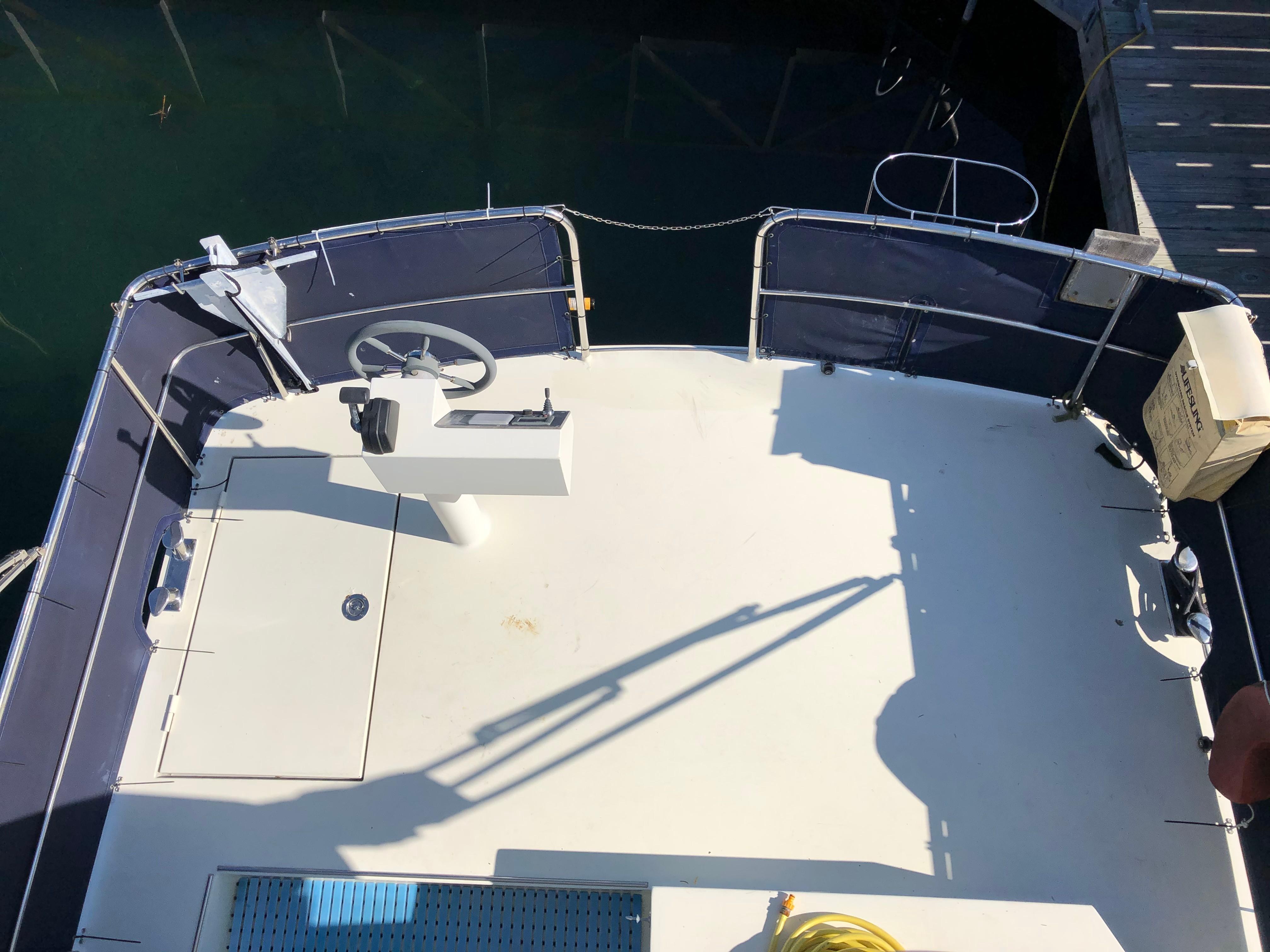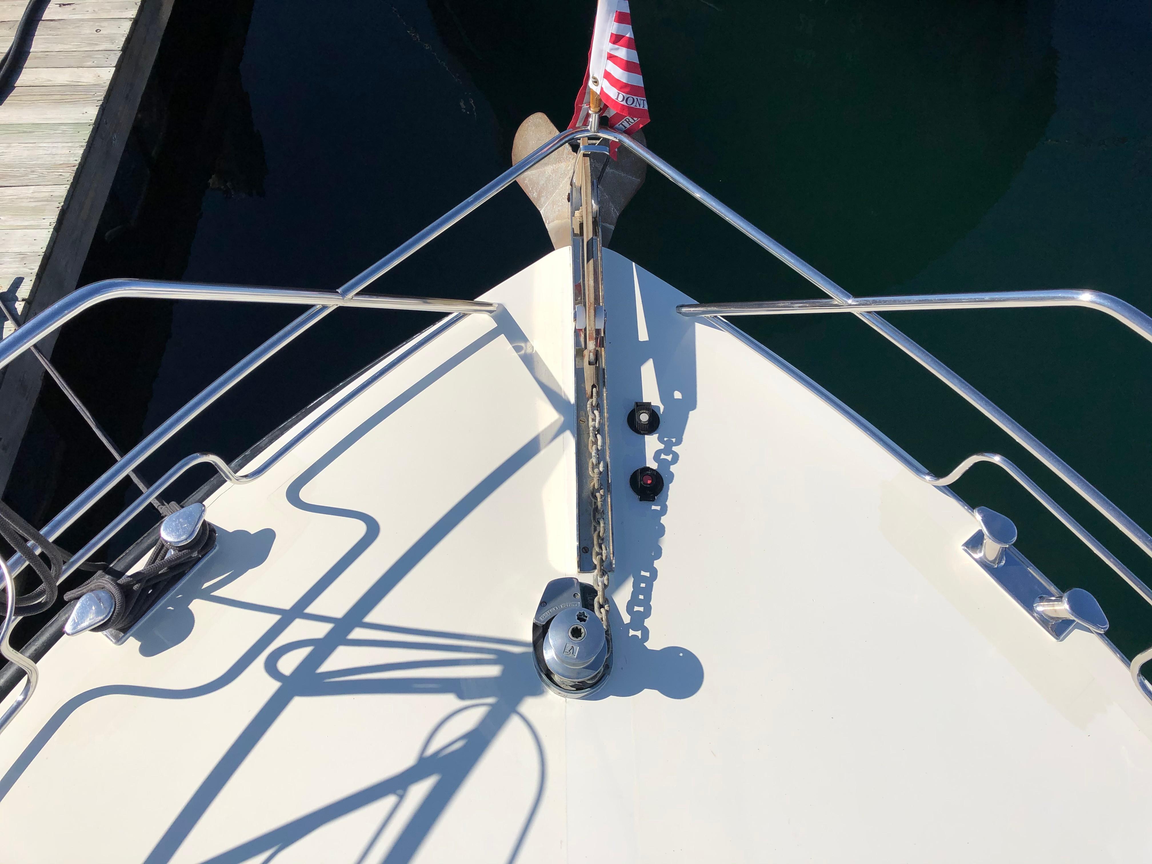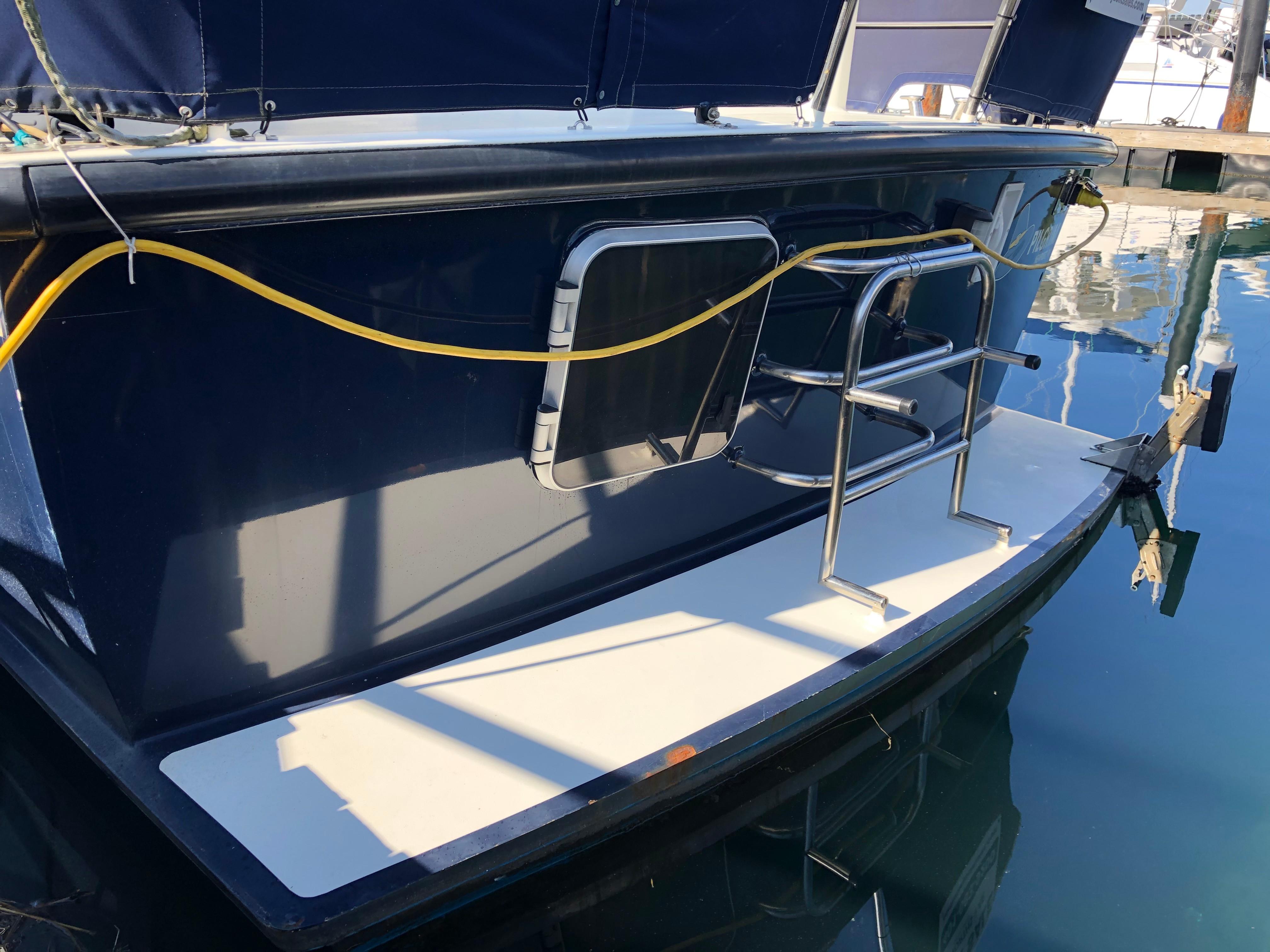 Stainless handrails are plentiful. The side decks are completed surrounded by a double stainless steel pulpit and pushpit with two side openings and one aft opening for boarding. (6) Bollard style stainless cleats provide secure mooring points There is also a stainless steel swim ladder on the swim platform,