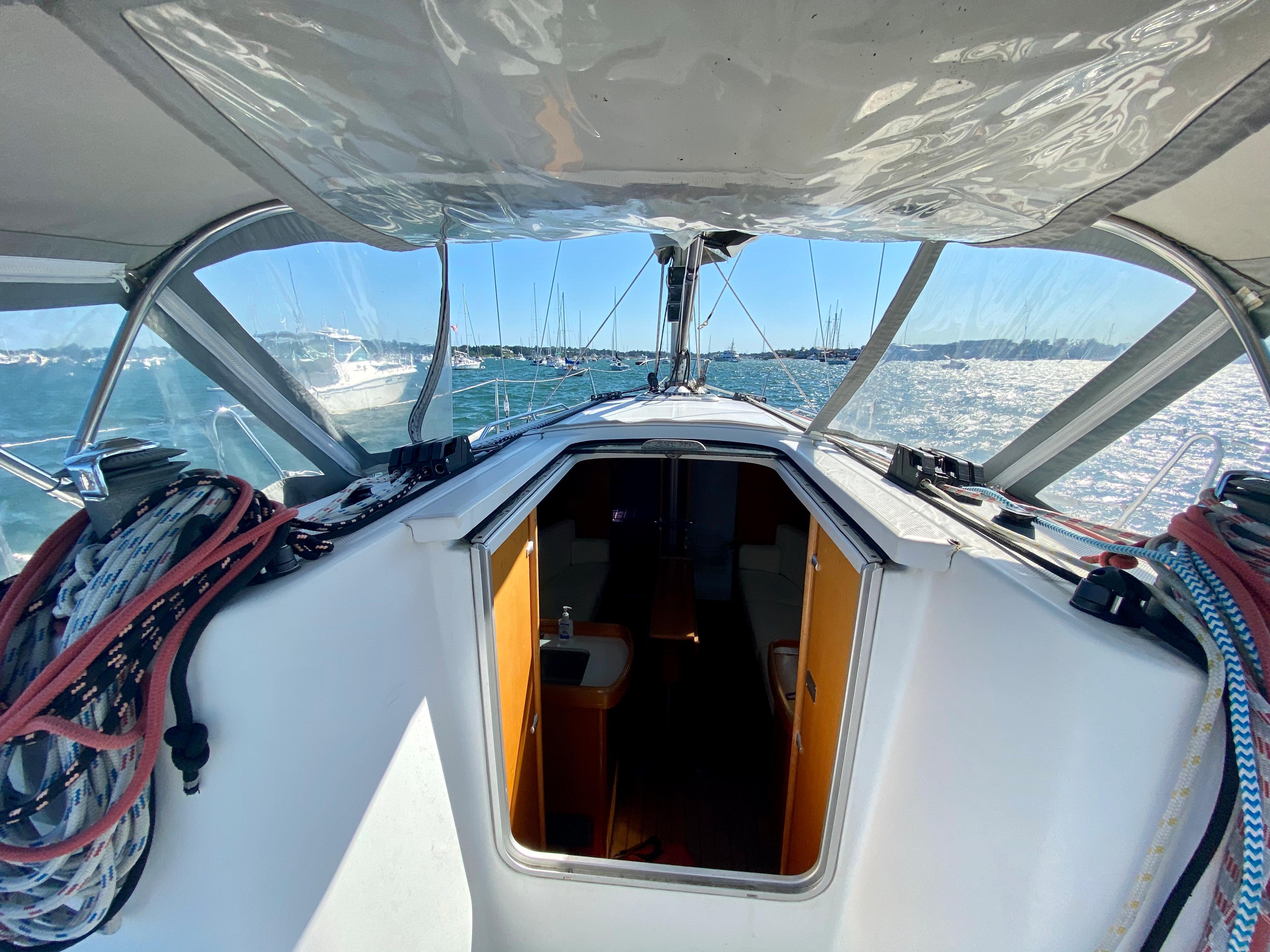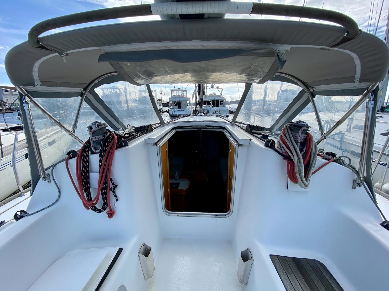 - Aft lockers: port for propane bottle, starboard for stowage