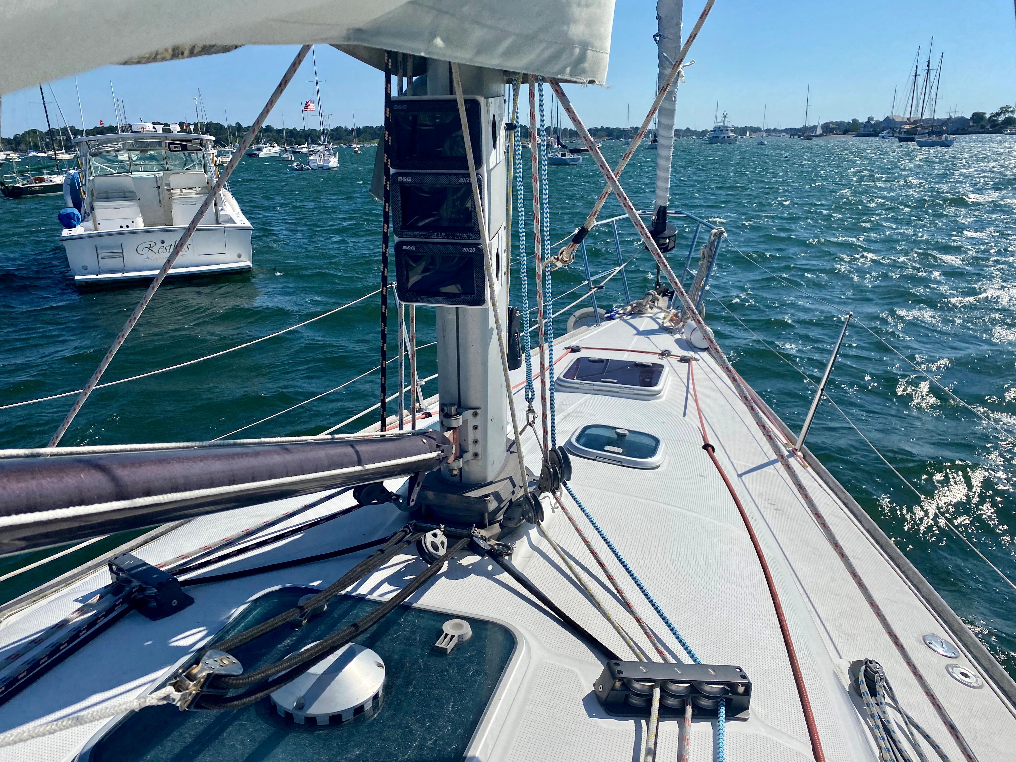 - Oversize (10%) Hall Spars carbon-fiber spinnaker pole w/ sleeve