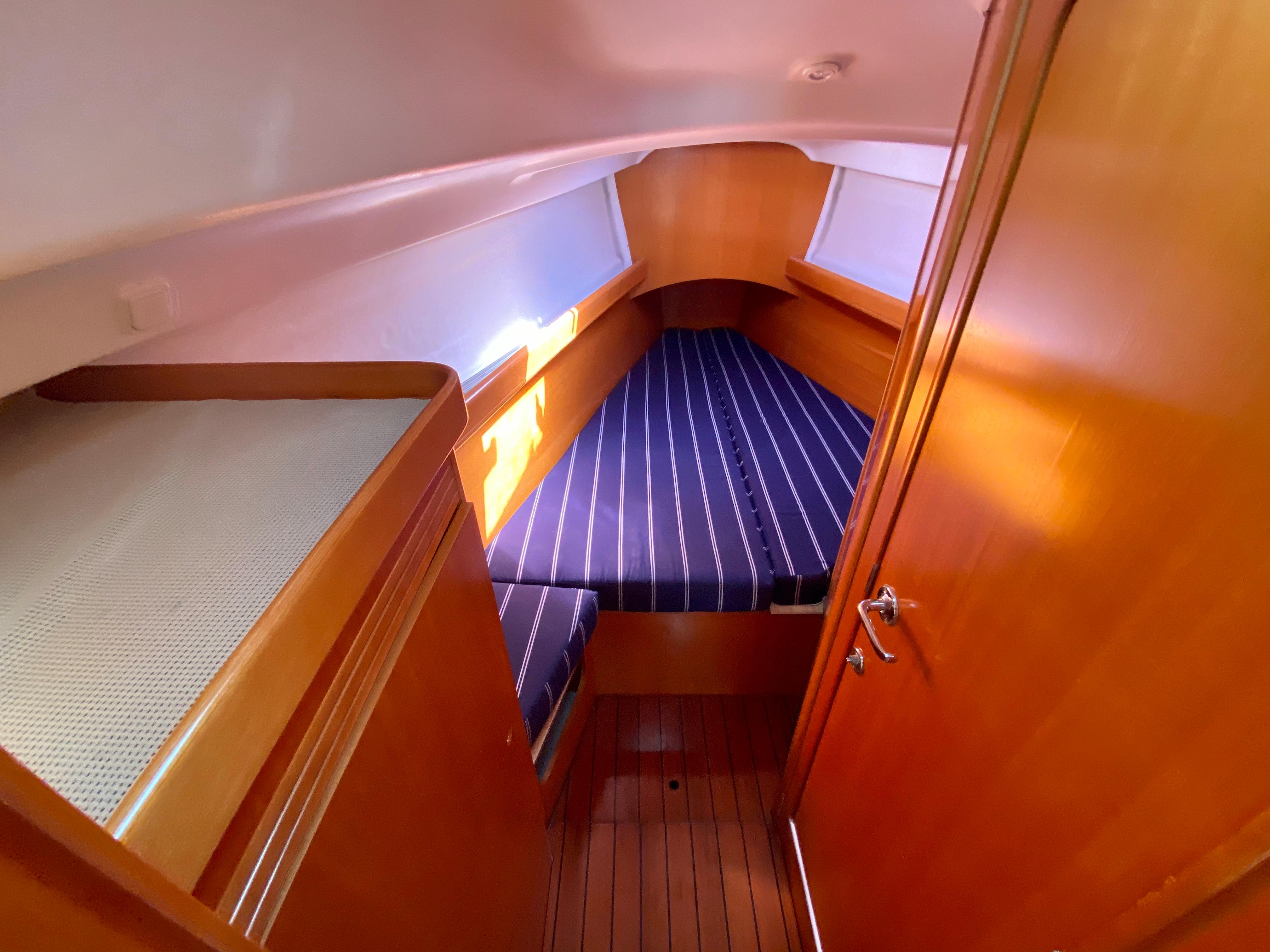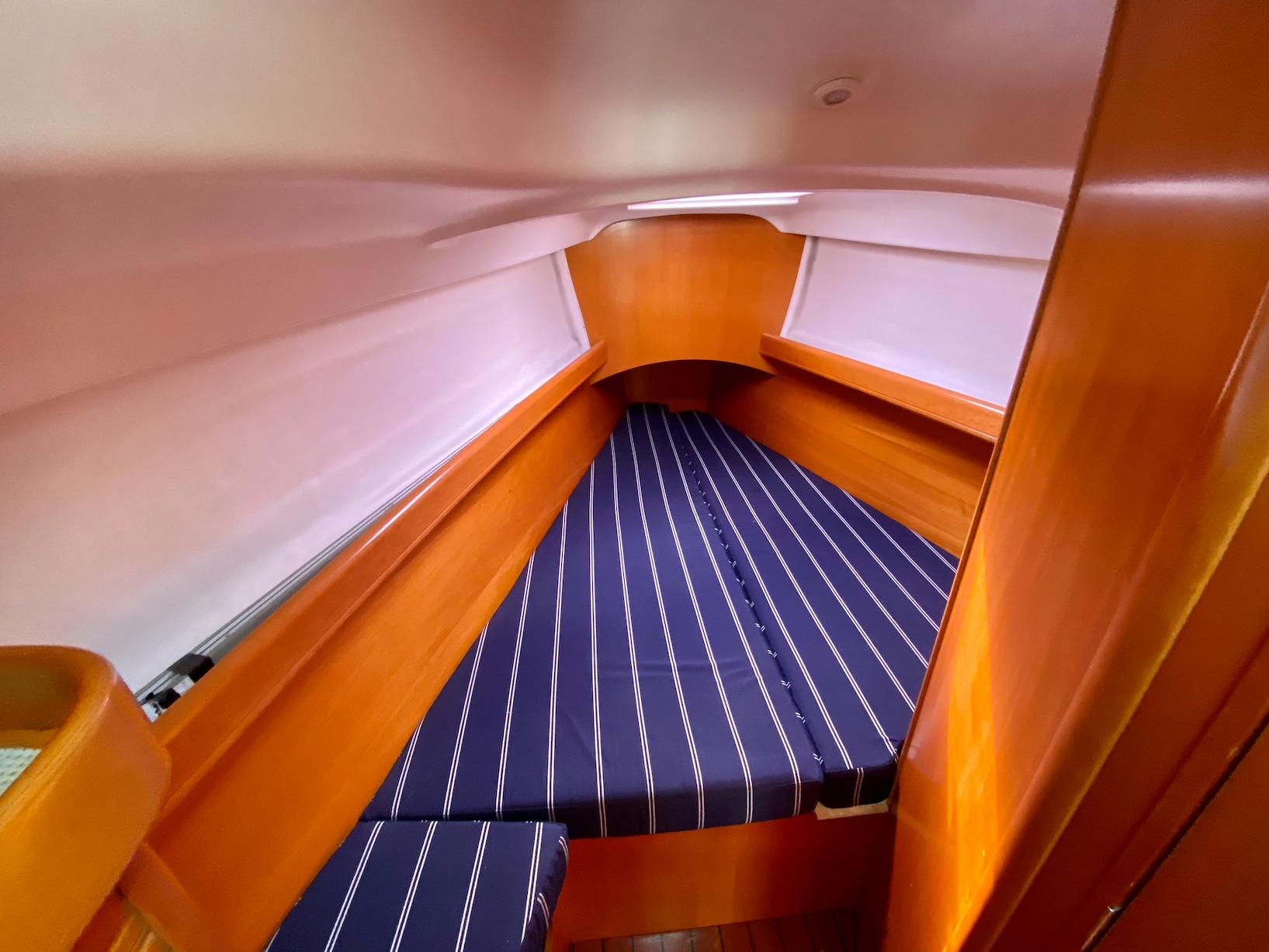 Starting in the forward stateroom "Shadowfax" has a vee-berth with ample storage and hanging.