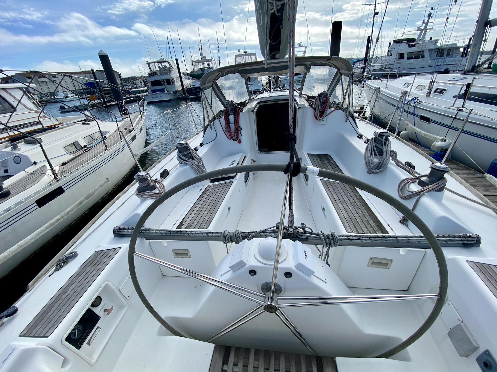 - Teak-slatted cockpit seats and removable lockers