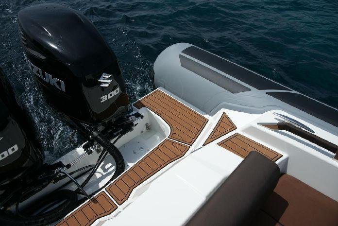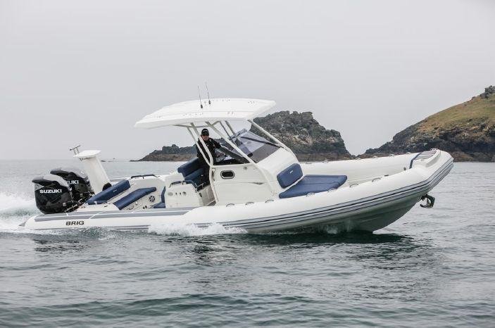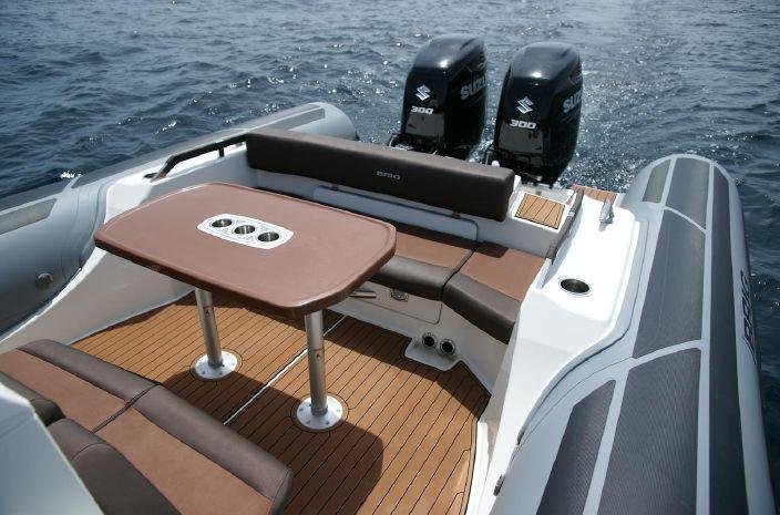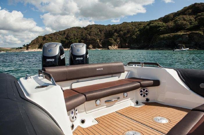Features Reinforced Deep 'V' Intelligent Hull Design Genuine ORCA® Hypalon Inflatable Tubes Genuine ORCA® Hypalon Grab Handles & Wear Patches with Heavy-Duty Rubbing Strake Spradling Silvertex® Upholstery Fabric with PERMABLOK3® Advanced Protection SeaDek® Non-Skid Decking SeaStar® Power-Assist Hydraulic Steering Stylish Contemporary Console with Protective Windshield Elevated Luxury Helm Bench Bolster Seat Gussi® Luxury Steering Wheel BRIG Custom Backlit Switch Panel Electric Horn & Stainless Steel Grill Ritchie® Flush-Mount Marine Compass Console-Top Storage Compartment & 12v/USB Sockets Console Stainless Cup Holders x2 Well-Appointed Cabin with Double Bed Electric Sea Toilet Bow Step Plate & 2x Stainless Cleats Large Bow Locker & Removable Bow Seat Cushions Lewmar® Electric Windlass & Stainless Anchor Extended Forward-Facing Console Relaxed Seating Large Convertible Bow Sun Lounge Infill & Cushions Concealed Stand-Up Galley Unit with Stainless Wash Basin & Tap and Preparation Surface Integrated 42L Refrigerator Aft-facing bench Seat & Stowage Compartment Stowable Large Aft GRP Table with Moulded Cup Holders Luxury Full-Width Cushioned Rear Settee Large Deep Rear Stowage Locker Large Convertible Aft Sun Lounge Infill & Cushions Stylish Swept-Back GRP Pillar & Watersports Towing Eye Stern Swim Platforms & S/S Telescopic Boarding Ladder Shower System & 45 Litre Freshwater Tank Rear Stainless Cleats x2 155 Gallon Built-In Fuel Tank LED Navigation Lights Built-In Davit Lifting Points x4 Engine Battery & Container Box 2x Domestic Batteries & Container Boxes Battery Isolation Switches x3 Self-Draining Deck Straight to Sea Automatic Electric Bilge Pump 2x Aluminium Paddles & Paddle Carry Bag Bravo® Foot Pump Inflatable Tube Repair Kit BRIG Owner’s Manual