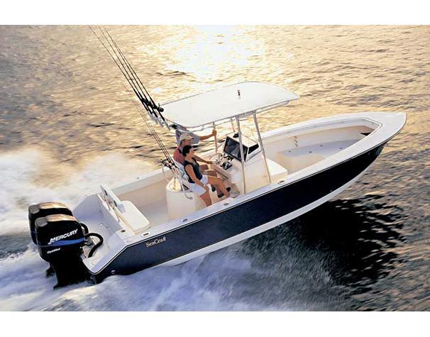 The SeaCraft 25 Open Fisherman is a finely styled boat built for both the discerning family boater and the fisherman alike. With the SeaCraft Variable Deadrise Hull to build on, the 25 blends form and function with equal measure. The SeaCraft 25 Open Fisherman comes complete with an ergonomically designed console, standard custom T-top with rod holders, leaning post with storage box and rod holders, two baitwells, saltwater washdown, 166-gallon fuel tank, and a host of high quality hardware. The 25 Open Fisherman performs with notable results attaining a top-end speed of near 55 mph, and trolling comfortably with incredible stability.