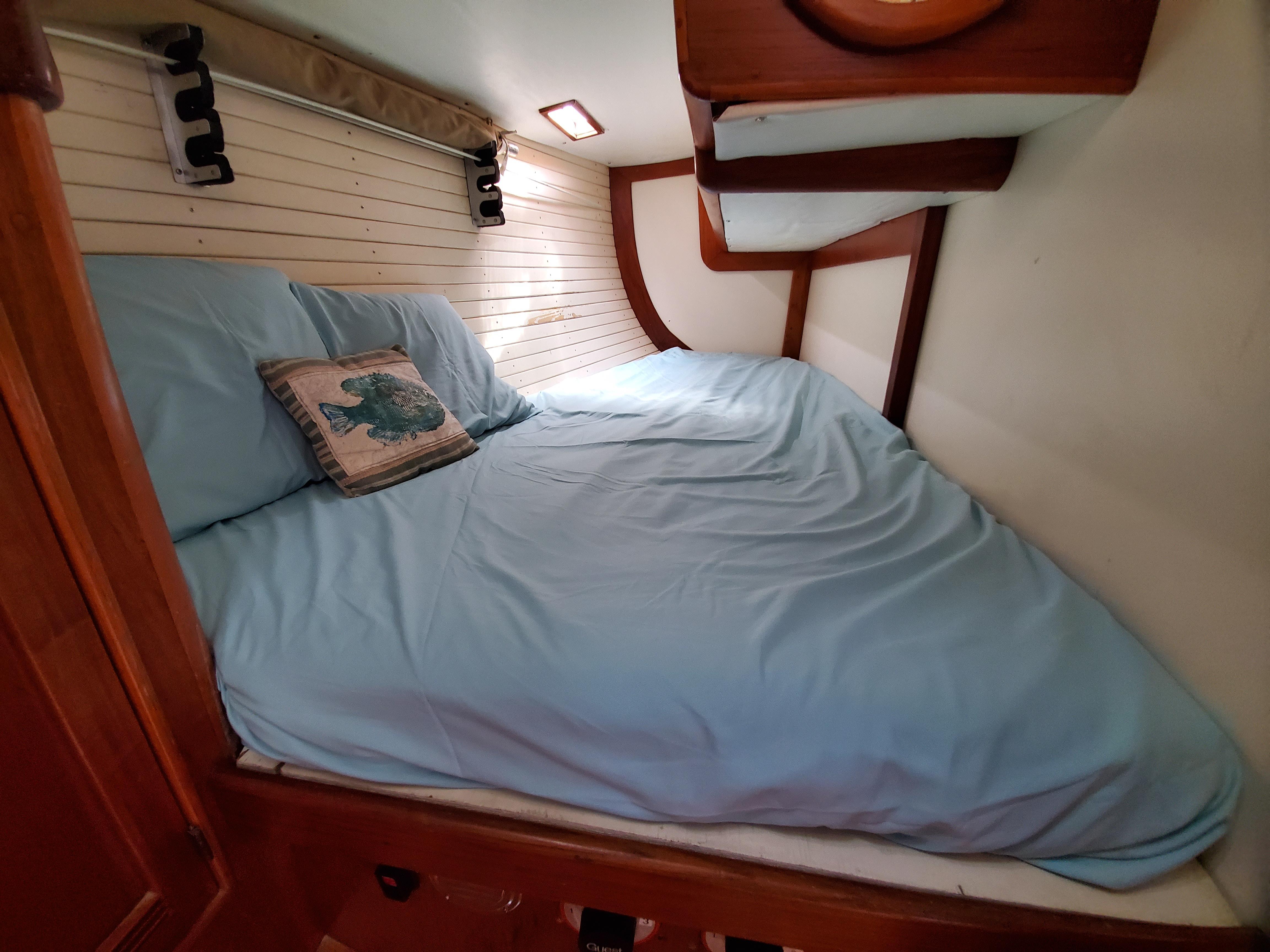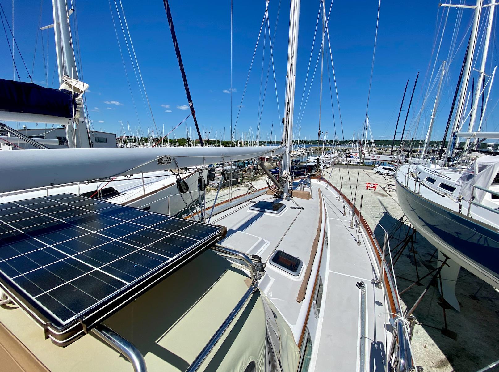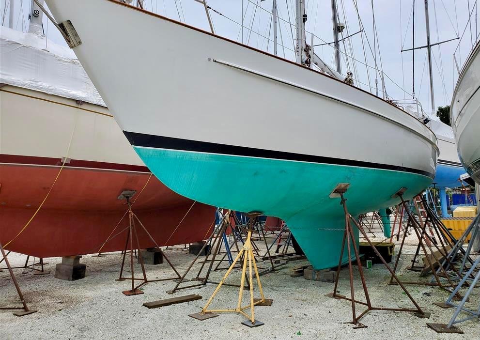 The majority of Cape Dory's sea-kindly boats emerged from the drawing board of Carl Alberg and bear all the hallmarks of his designs, including full keel, attached rudder, and cut-away forefoot. When Cape Dory created the Intrepid 40', however, they were looking for a different design- and for that, they turned to Chuck Paine. As a result, Moonrise has a distinct pedigree, boasting a skeg-hung rudder, a long fin with an original Chuck Paine-designed keel (a cross between a wing and a bulb), a flattened bulb that adds significant stability and stiffness while minimizing draft and drag.
