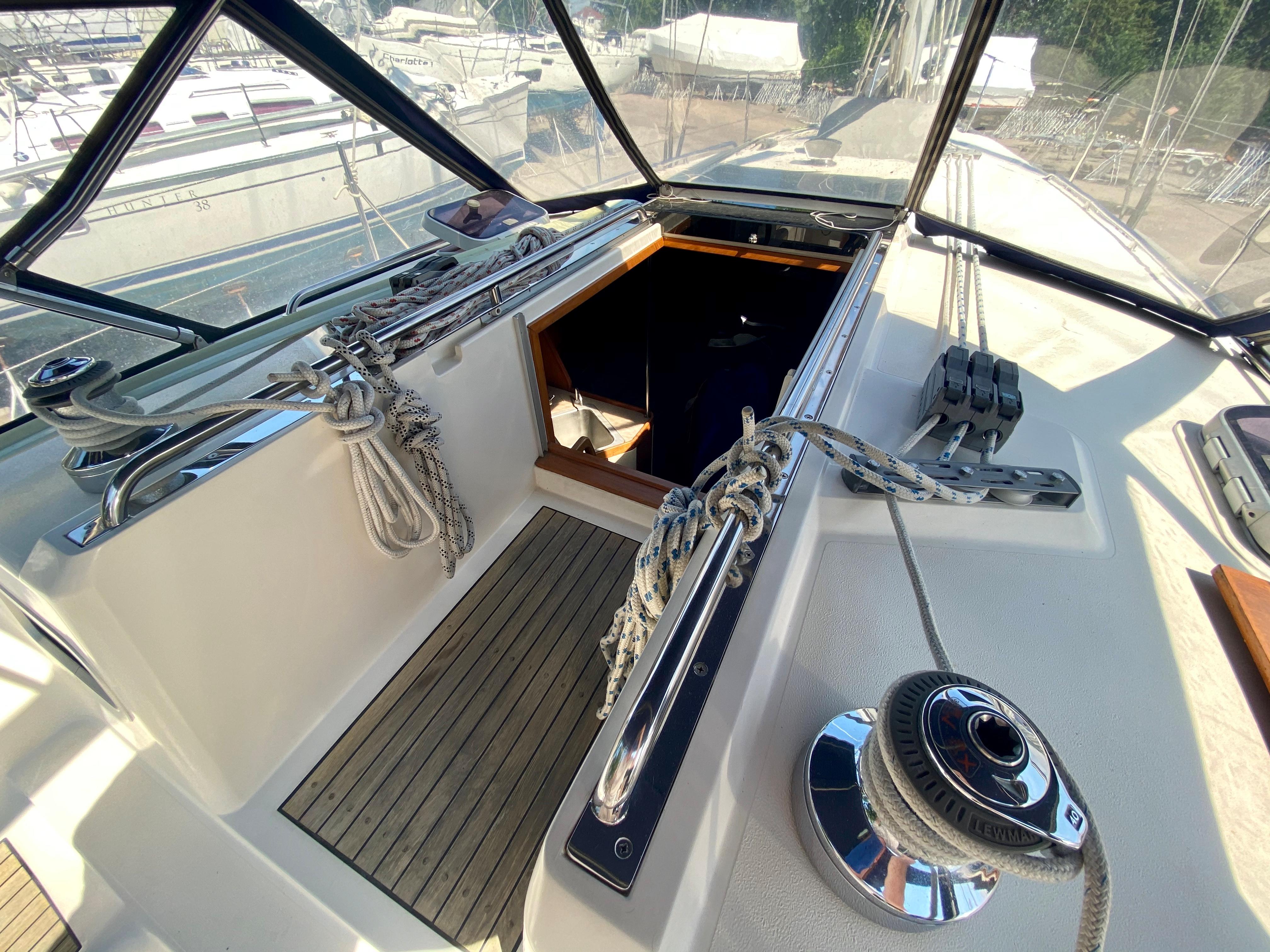 - Large cockpit locker to port w/ access ladder