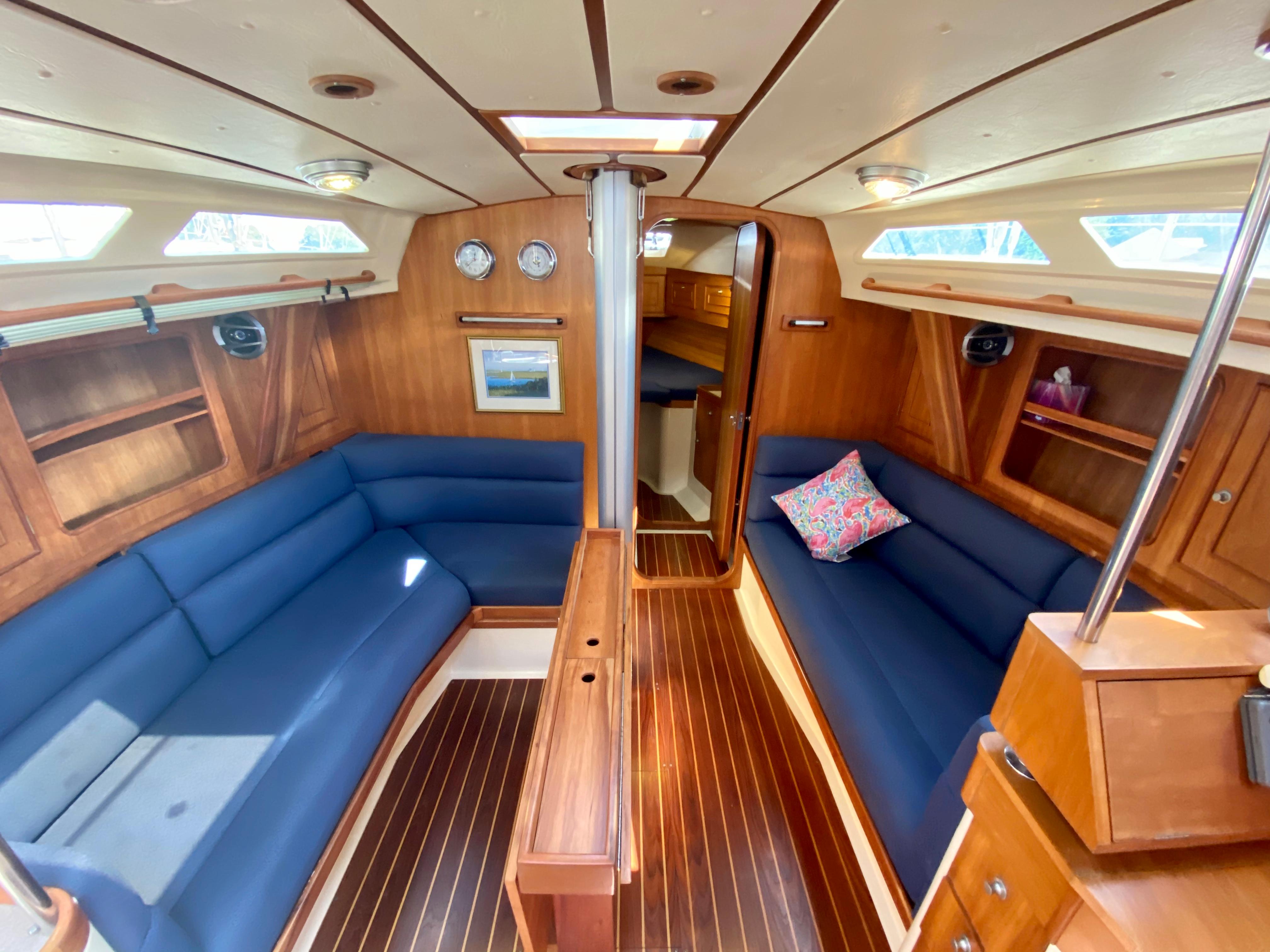 - Portside settee converts to a double berth via insert