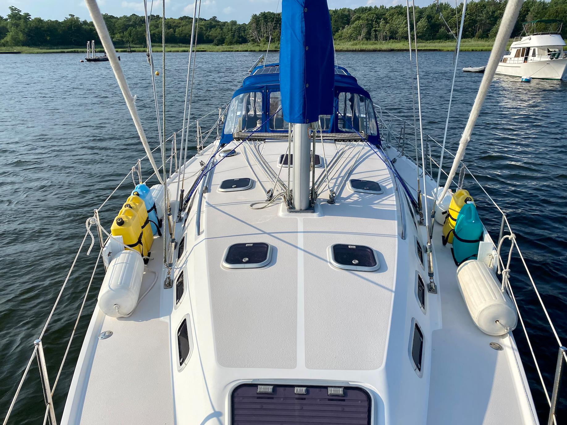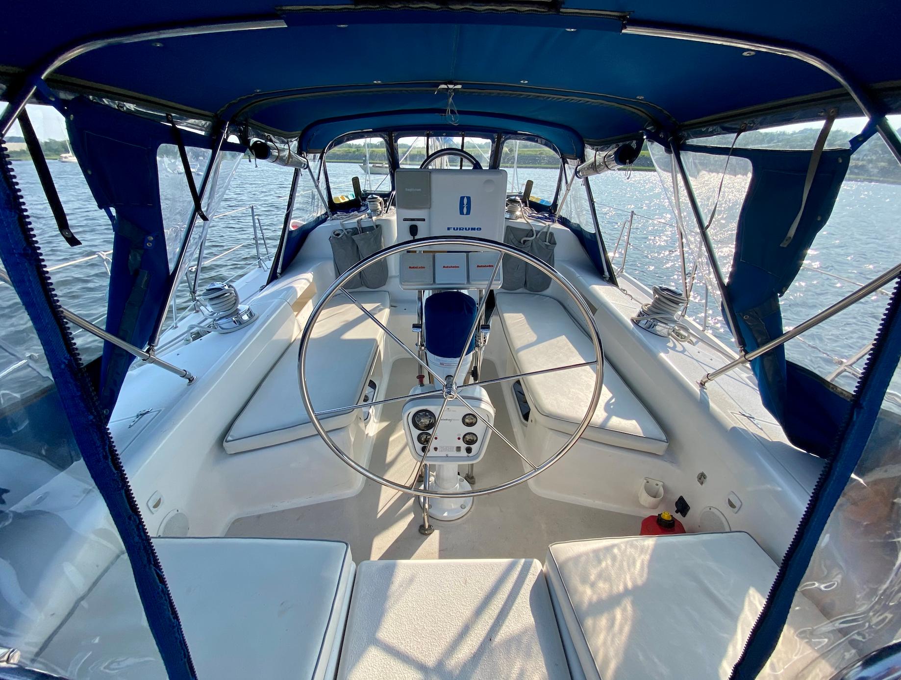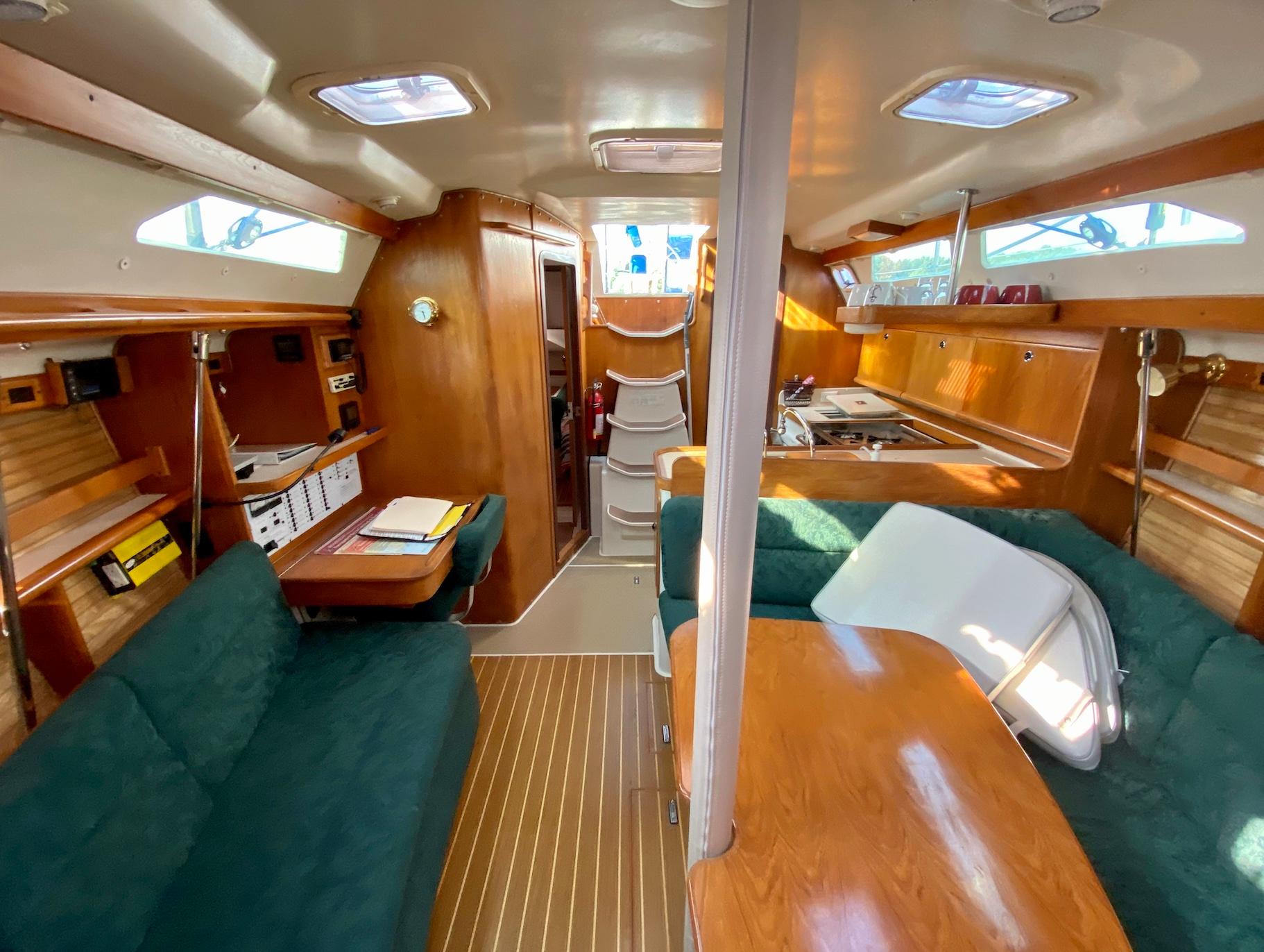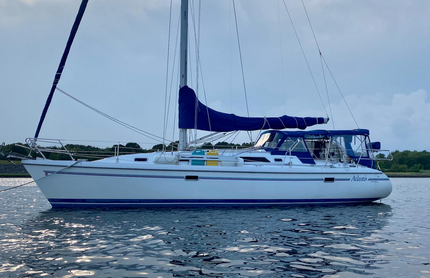 "Atlantis" was outfitted and commissioned with many extra options for comfort and safety at sea. She has larger self-tailing winches, ample storage, and is loaded with gear for local or offshore cruising. All sail handling is from the fully enclosed cockpit. Her interior is bright and airy, featuring a centerline queen berth aft, large galley, u-shaped converting dinette, long settee, and v-berth with a washup sink. Comfortable accommodations for 7 adults. Shoal keel with a full main. Cruising World's 1997 "Boat of the Year" award winner.