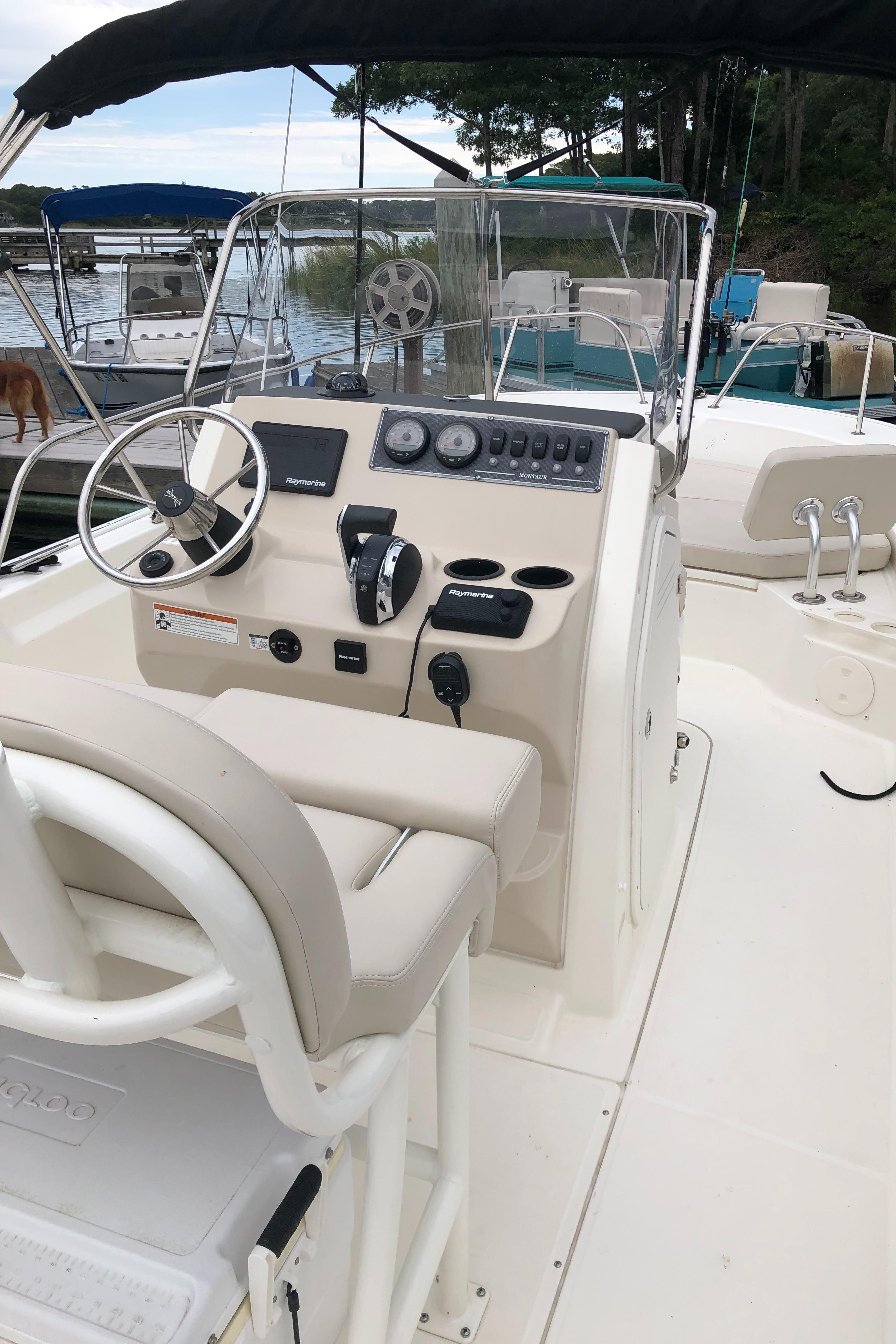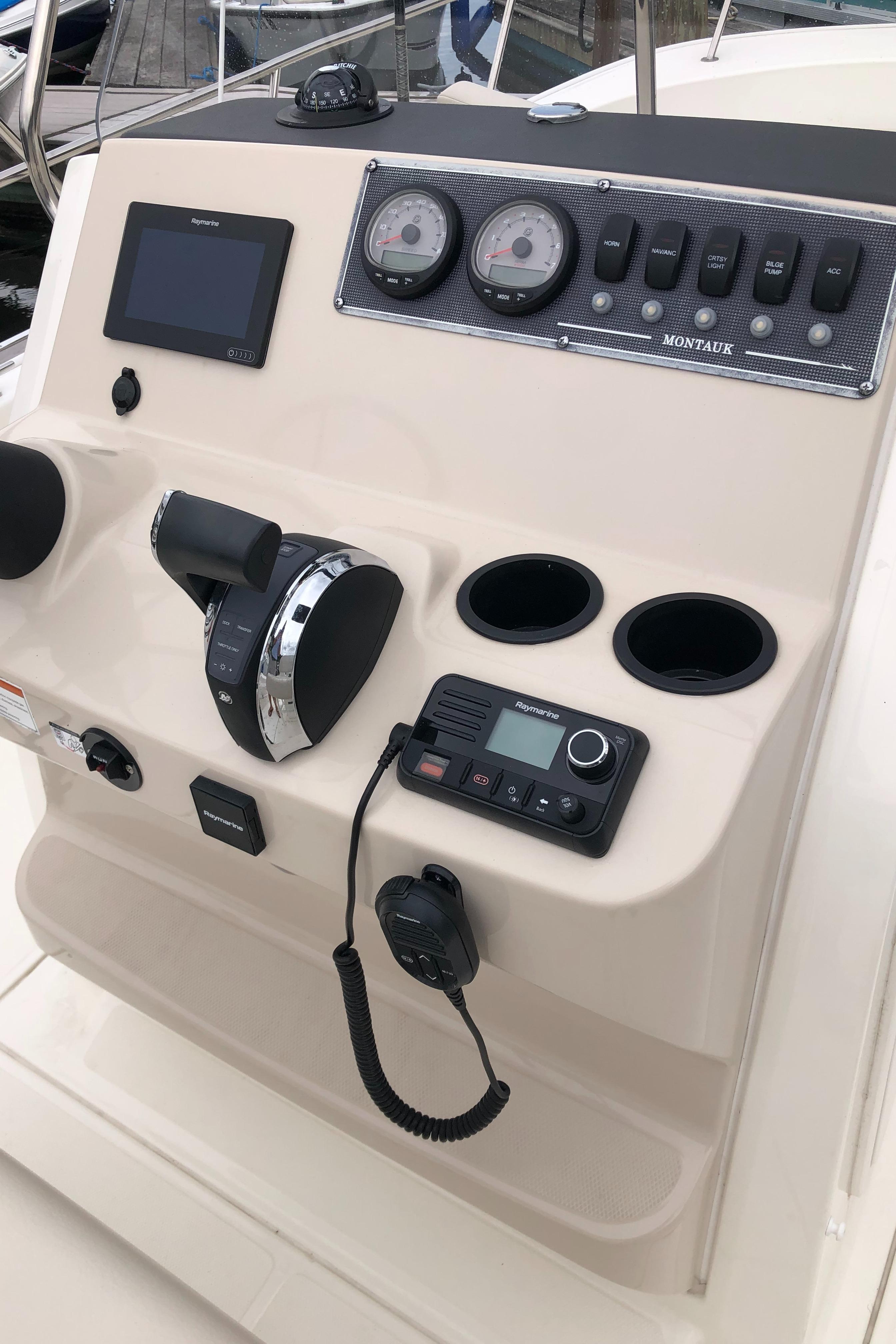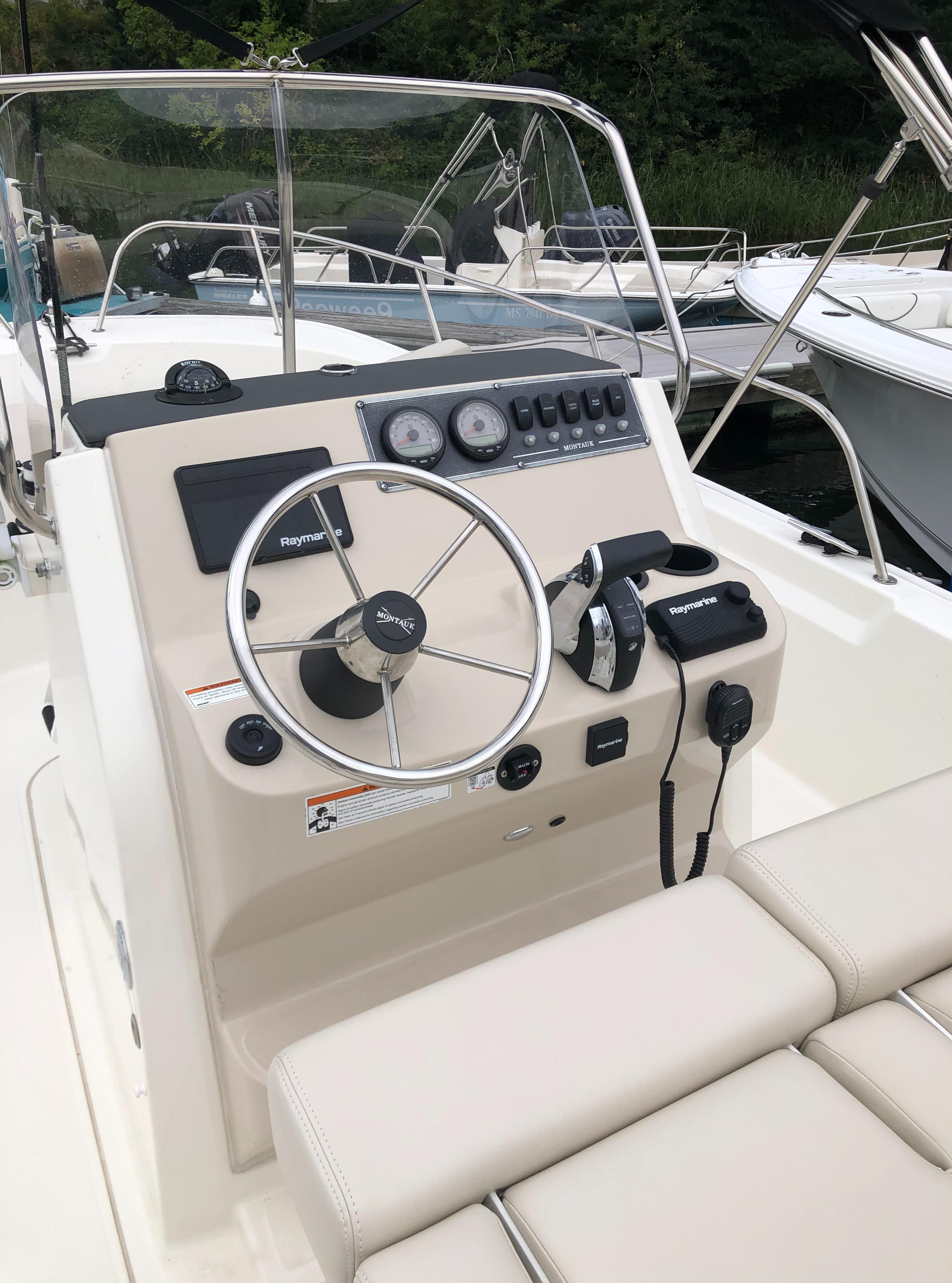 This Montauk 210 was sold new in 2020 and has been lightly used for two seasons. She has very low hours, only 119, on her 200 HP Mercury outboard.