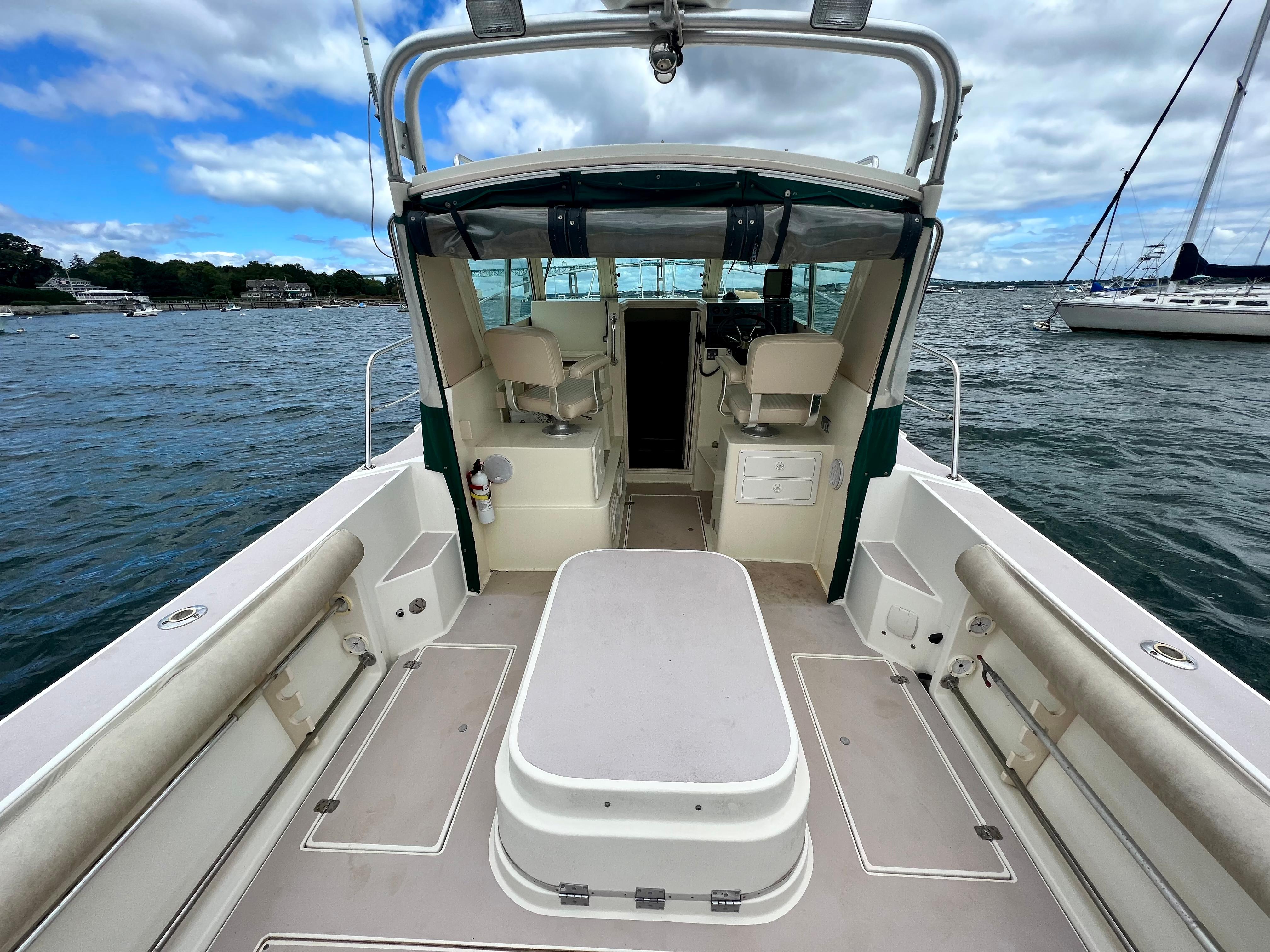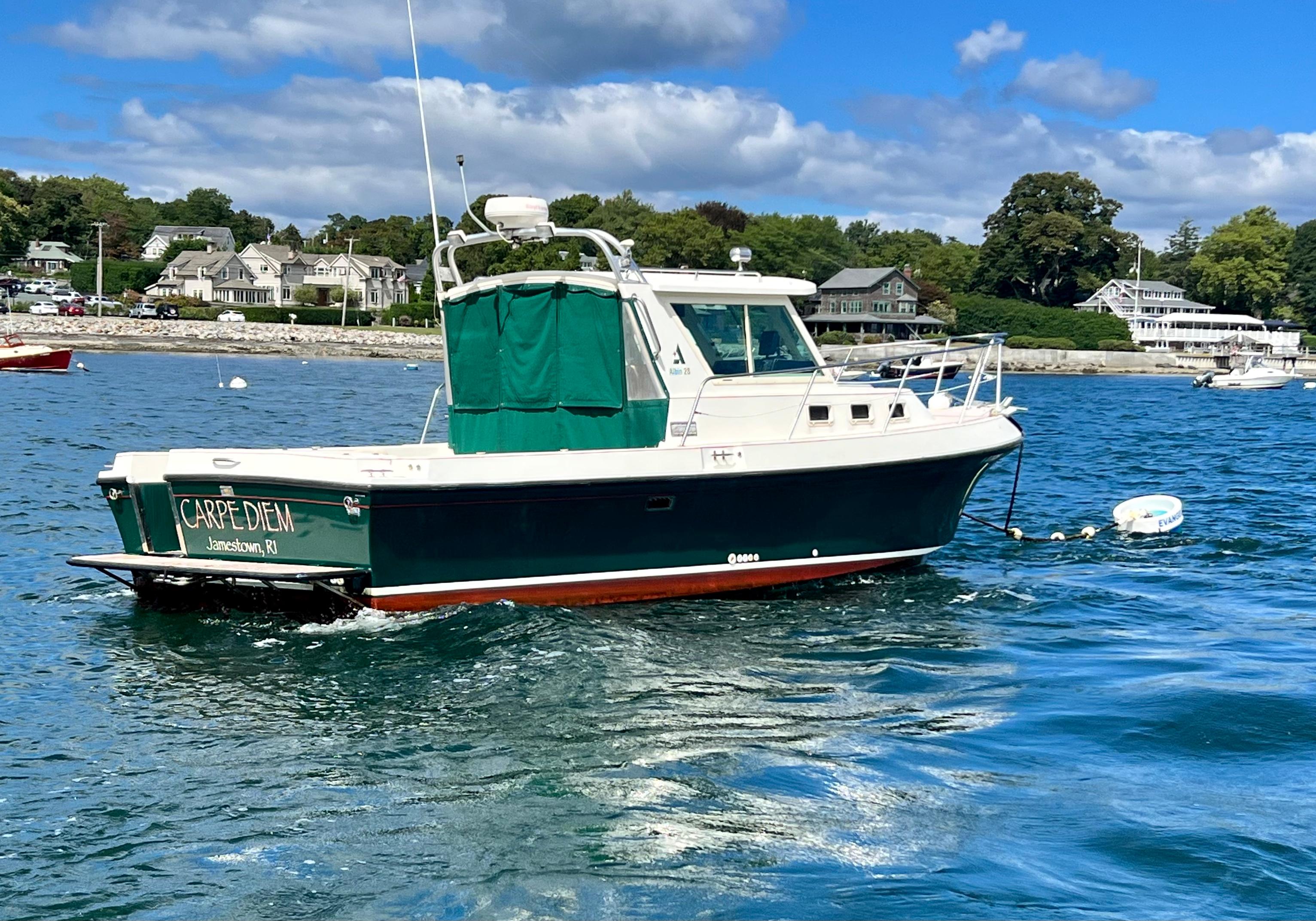 “Carpe Diem” is a single-owner, top-rated hardtop cruiser with a solid reputation for rugged construction and excellent sea tracking abilities. Her Downeast styling has developed somewhat of a cult following over the years and is the perfect family cruising or workhorse fishing boat.