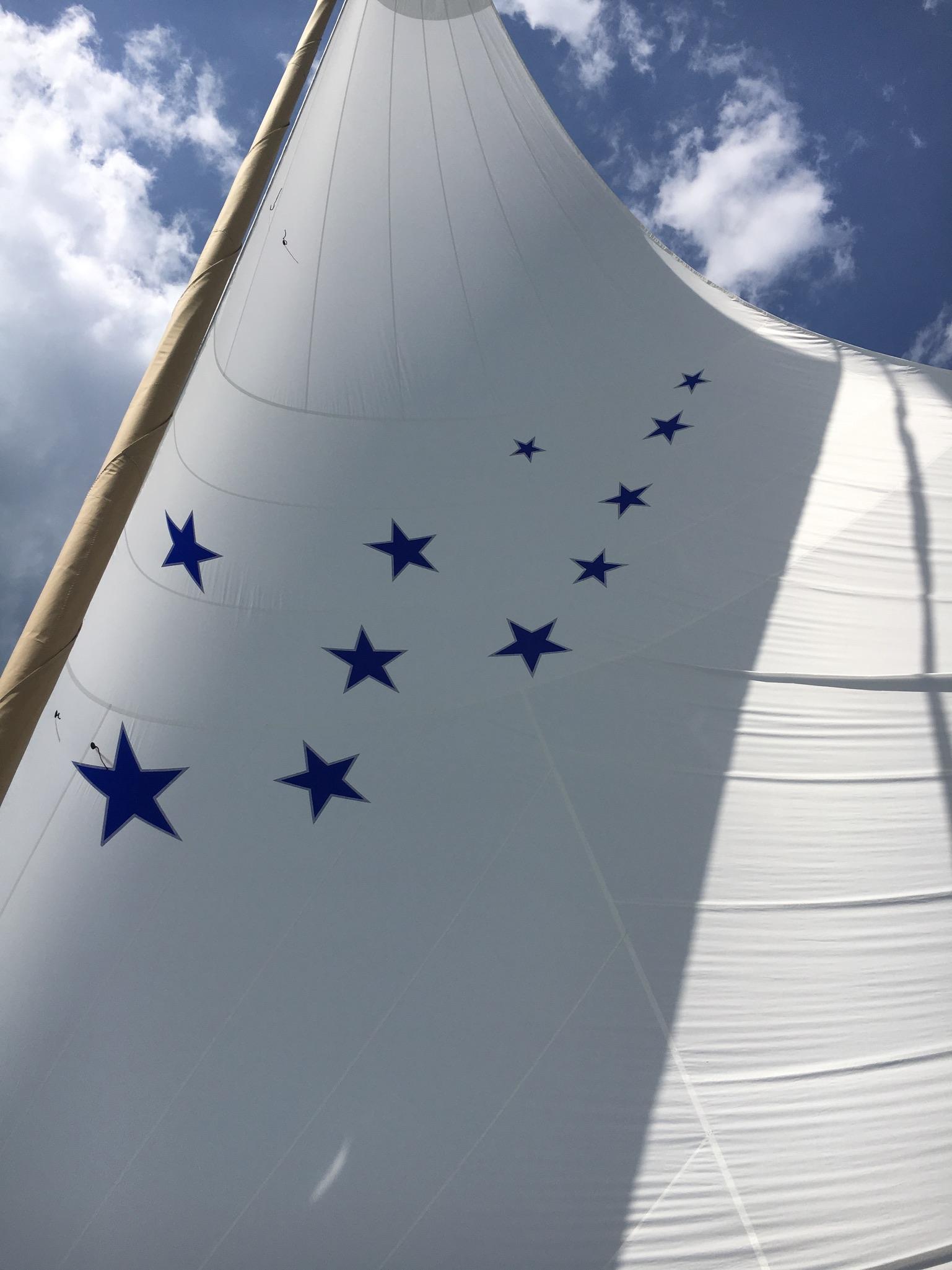 - Boom: Anodized aluminum fitted with 2 continuous reefs