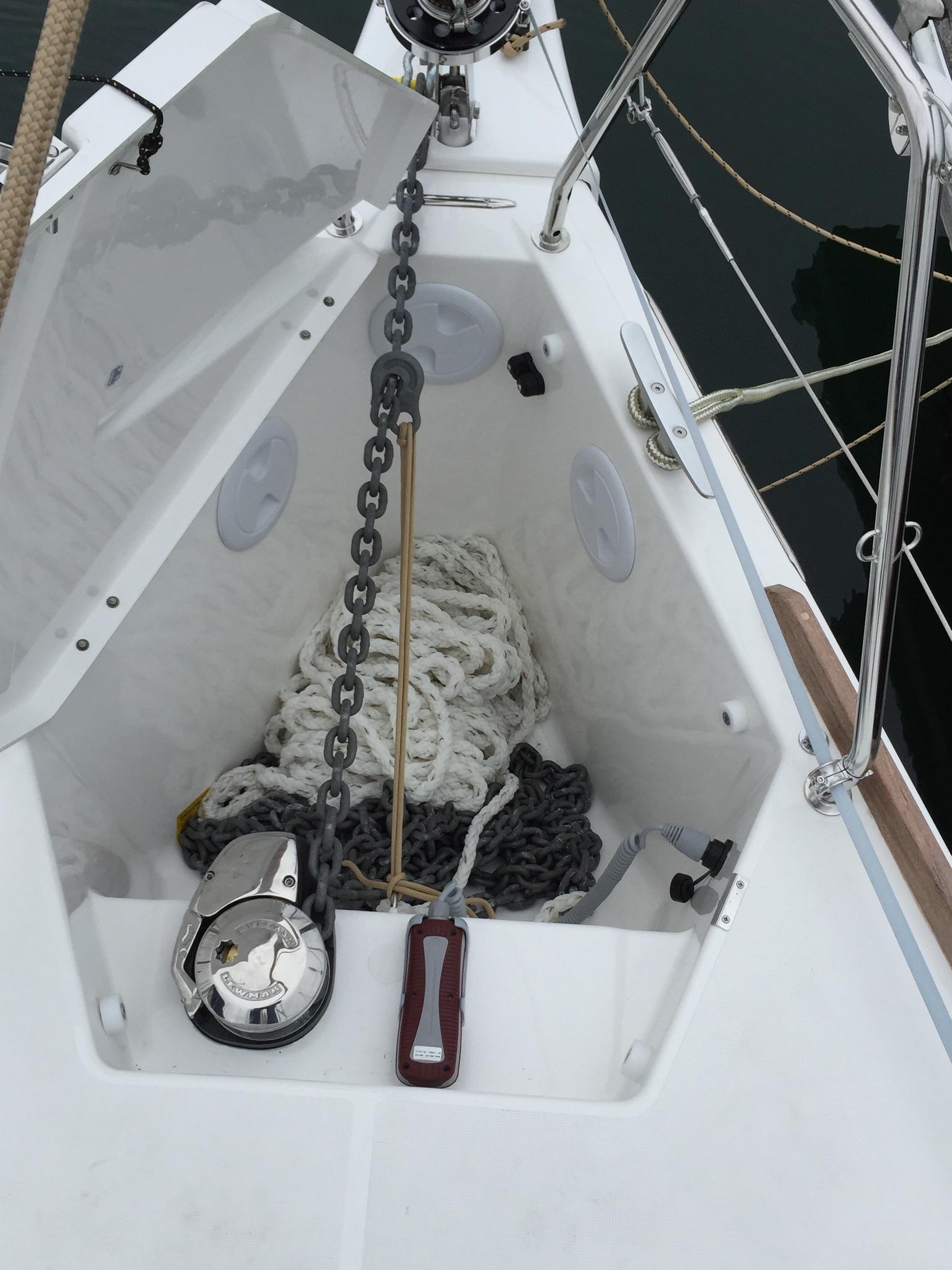- Anchor locker: Molded into the deck, self-draining with built-in windlass support and anchor chain eyebolt, lockable hatch cover.