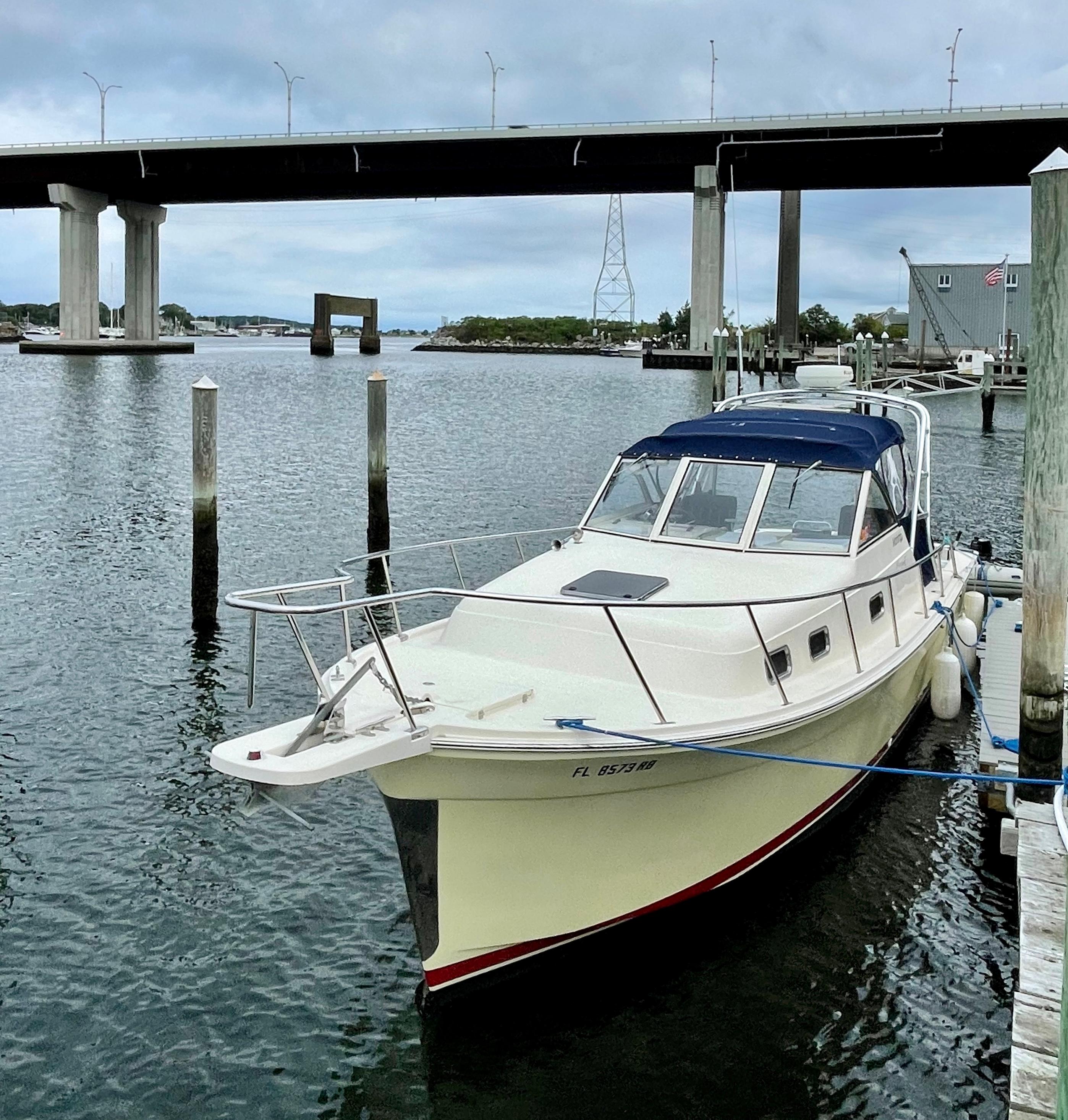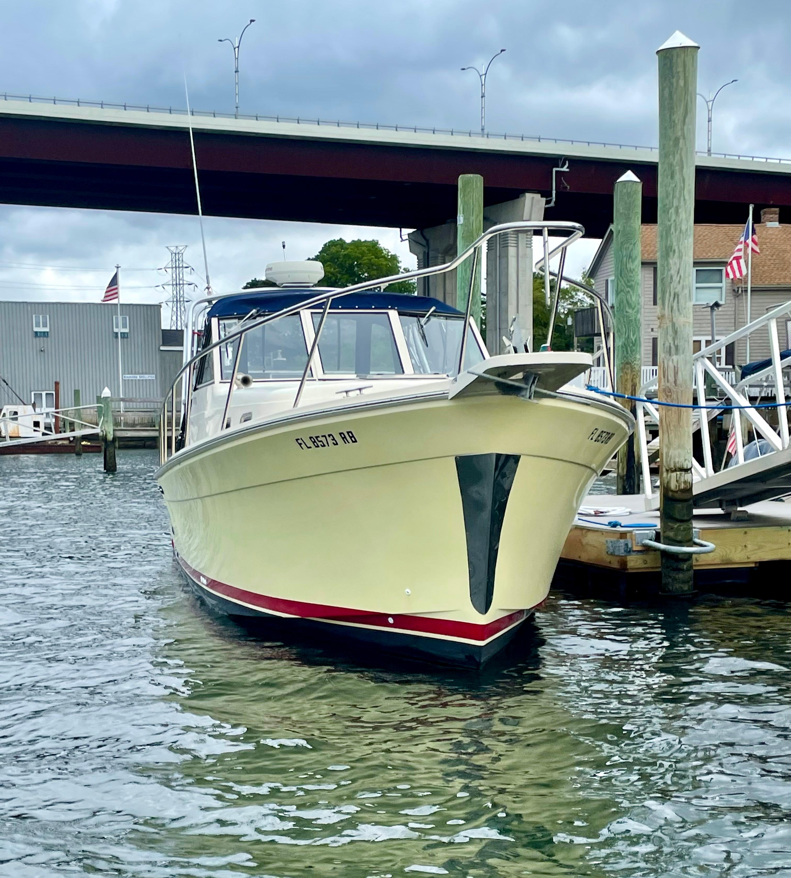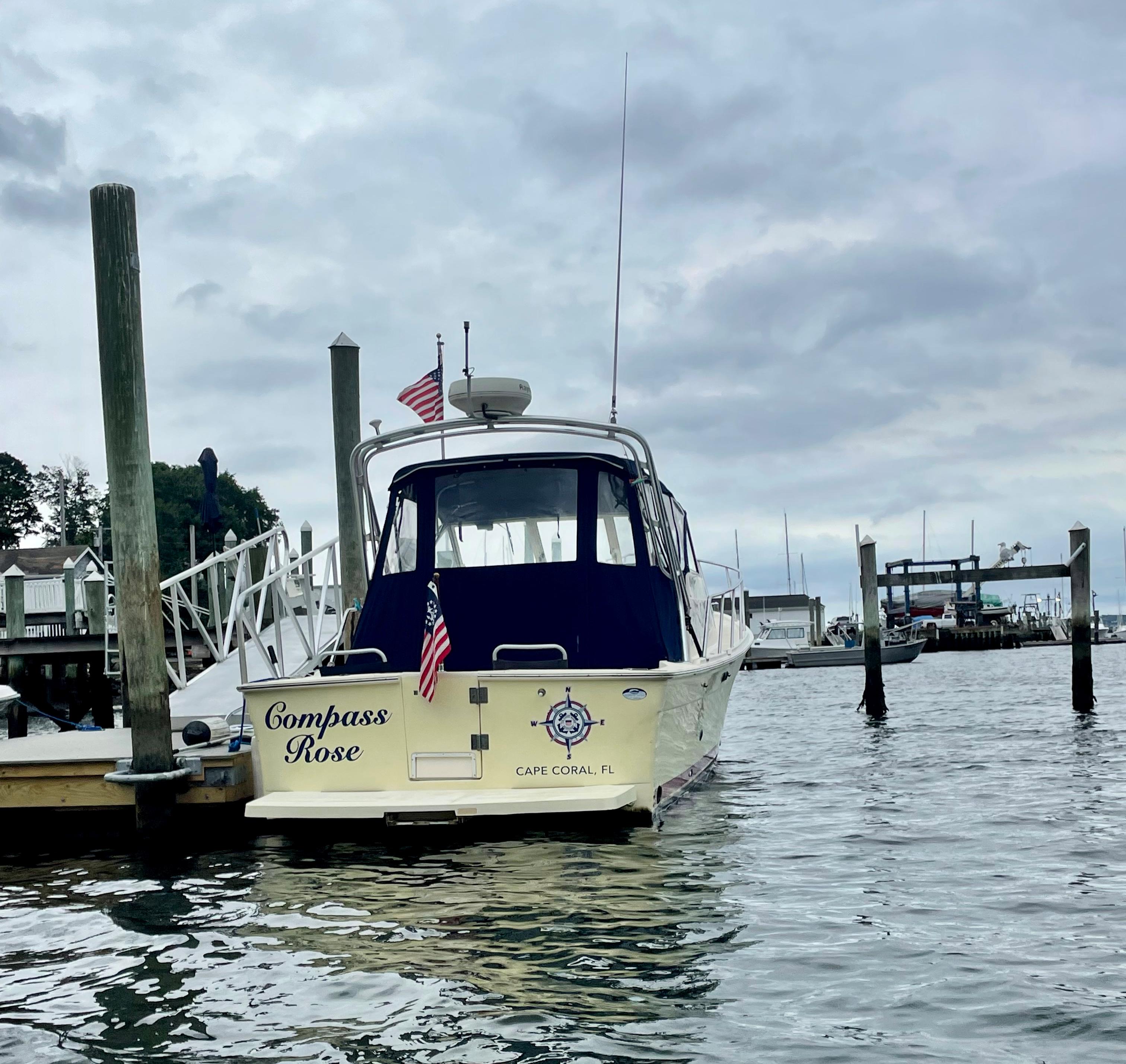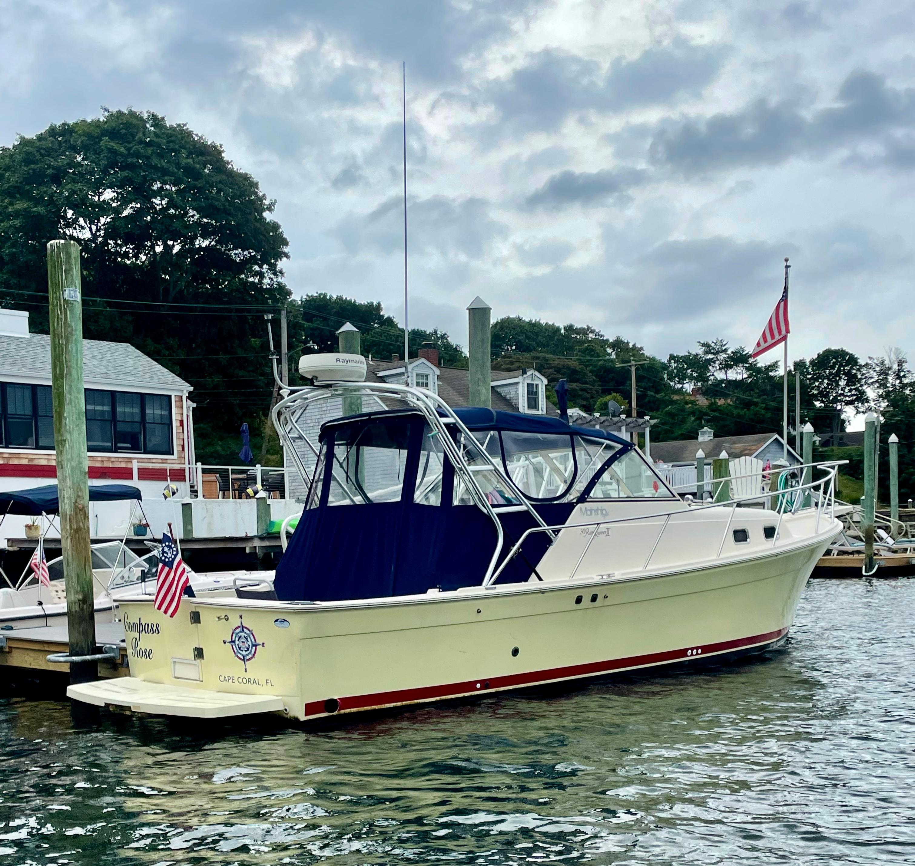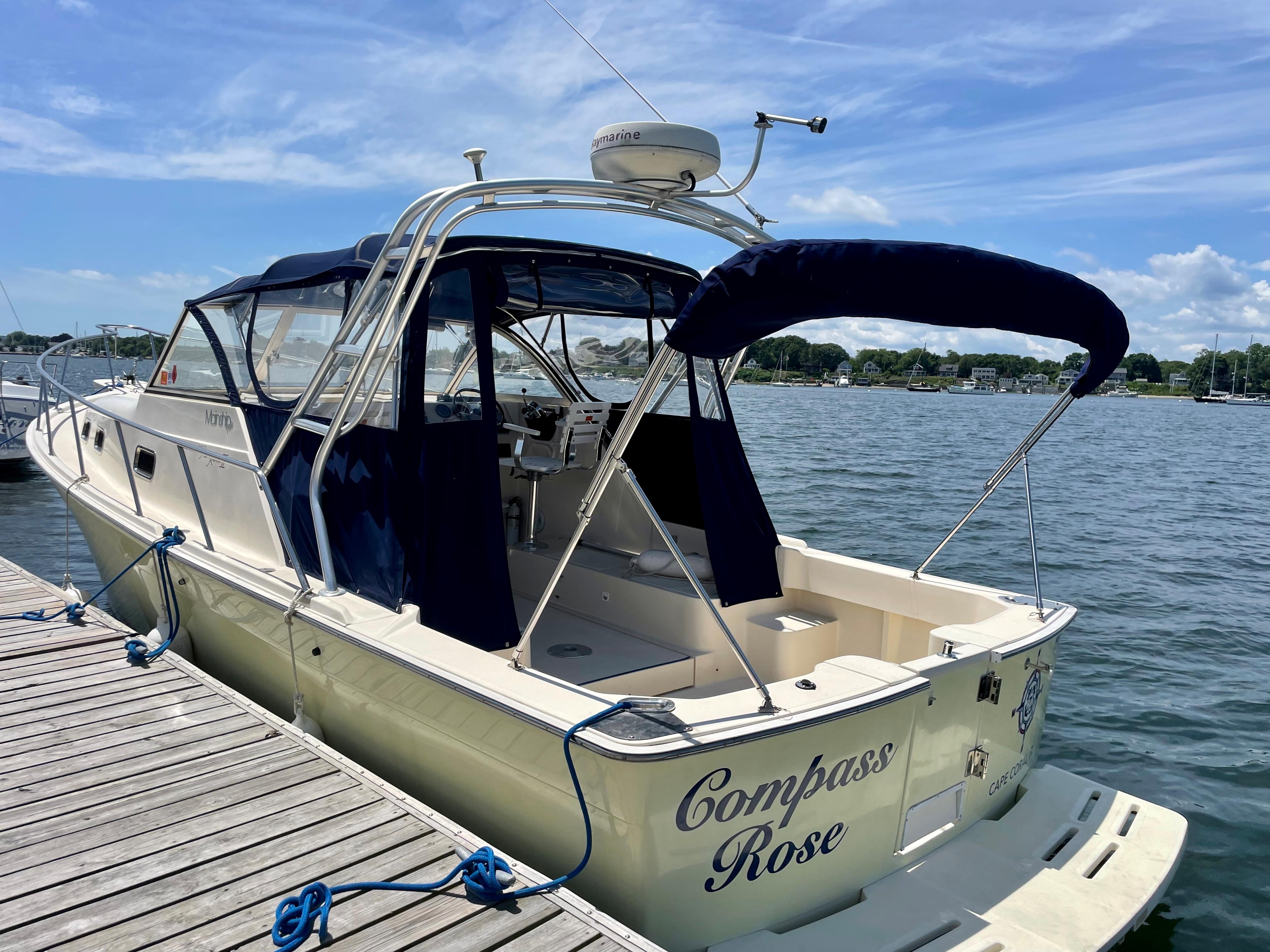 COMPASS ROSE is a first-rate example of the versatile Mainship 30 Pilot II Rum Runner Edition. The updated Pilot II series incorporates a shortened keel, propeller tunnel, and five-blade prop. She optimizes both the wants and needs of a Downeast express cruiser; steady tracking ability, fuel efficiency, handsome looks, and lush accommodations. Reliable power is supplied by a fresh water-cooled Yanmar 315hp with only 579 original engine hours. Ideally suited for social cruising or weekending by a fully enclosed canvas bridge deck and aft deck extension. She benefits from a life of being lift kept and the spectacular Fighting Lady Yellow hull is sure to impress. A clean offering with true value, she will not last long in any market, please refer to the full specifications in the listing details.