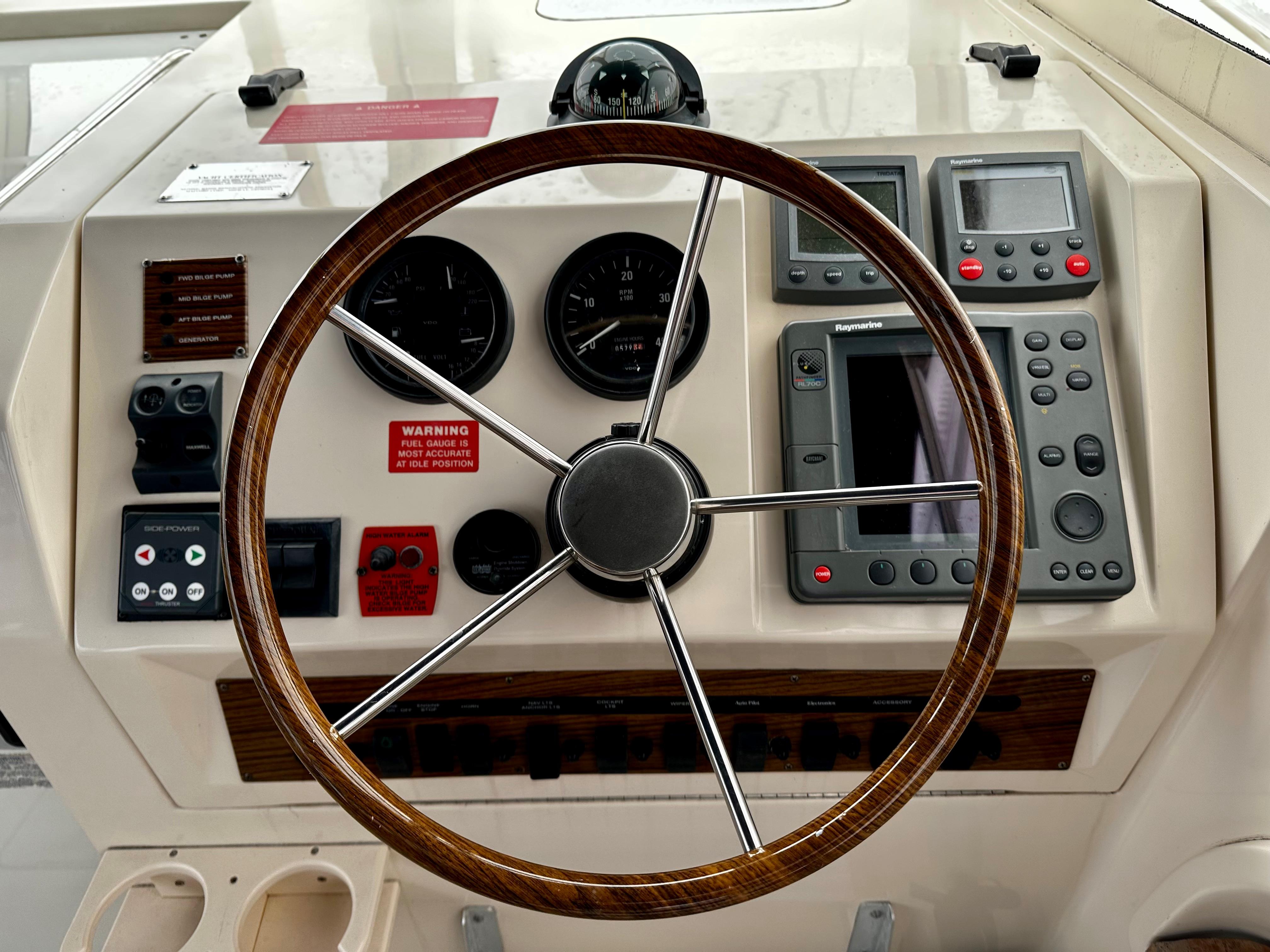 VDO 4 in 1 gauge @ helm: fuel, volt, oil, temp
