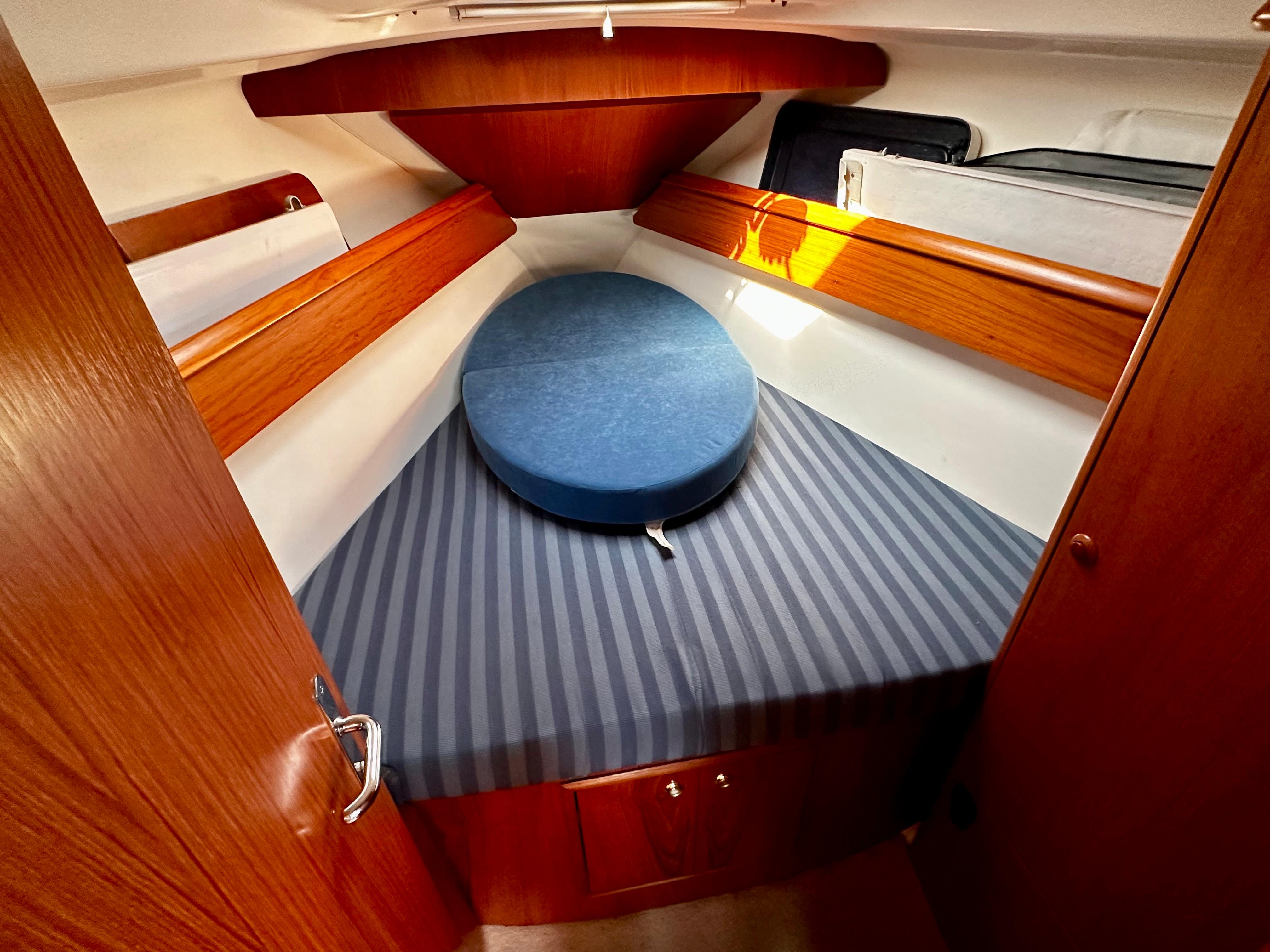 Large hanging lockers in the forward and aft cabin