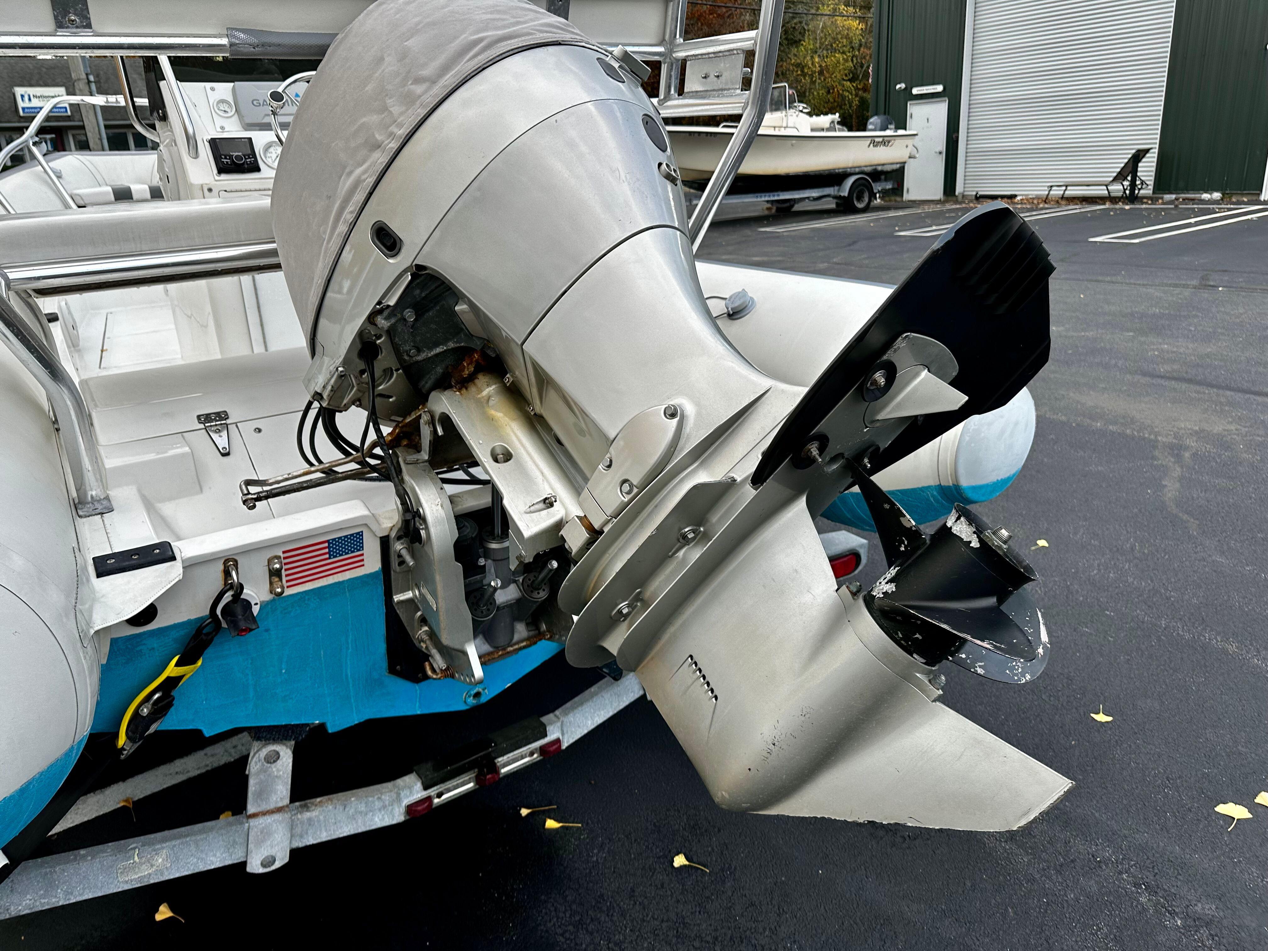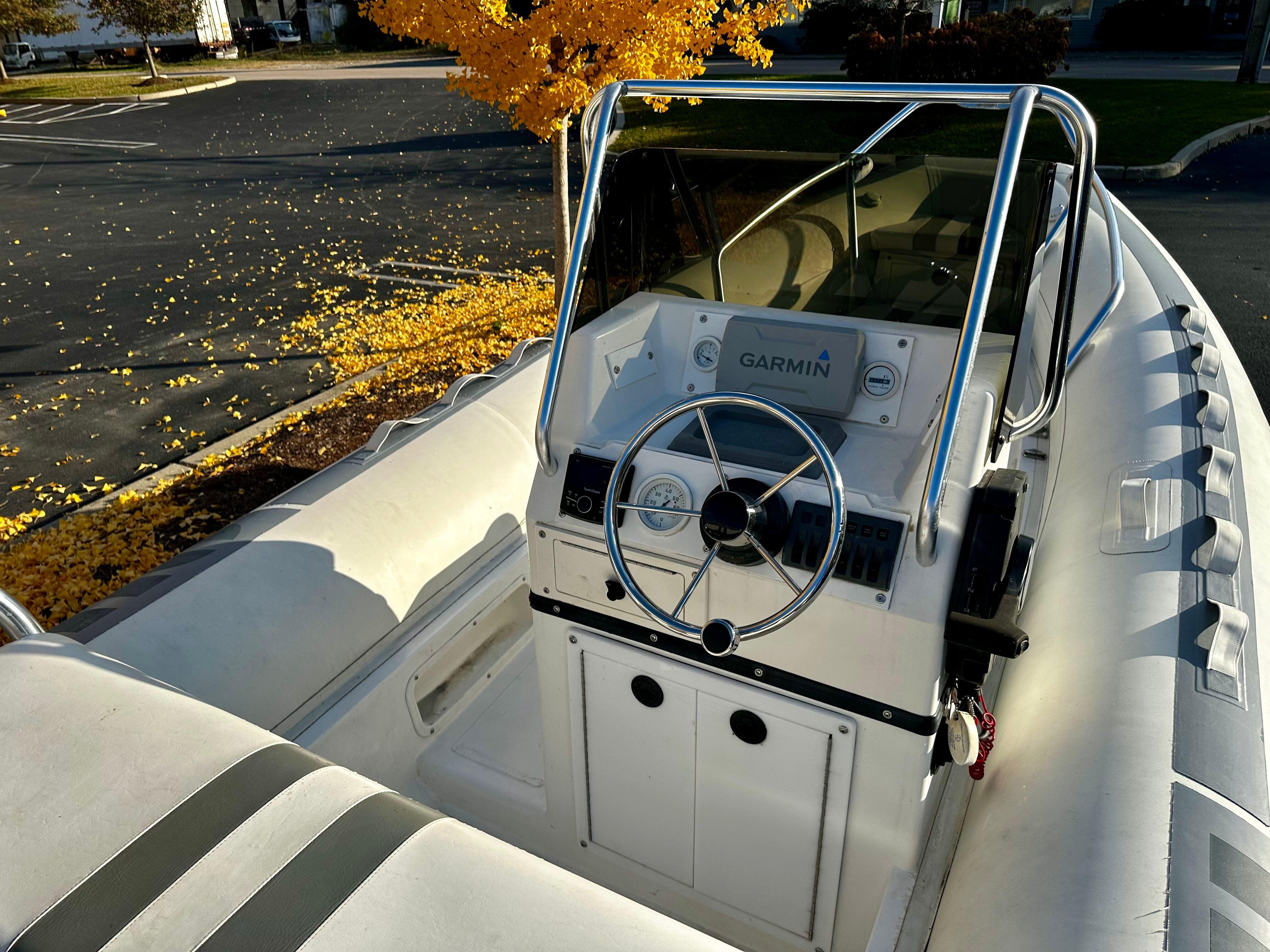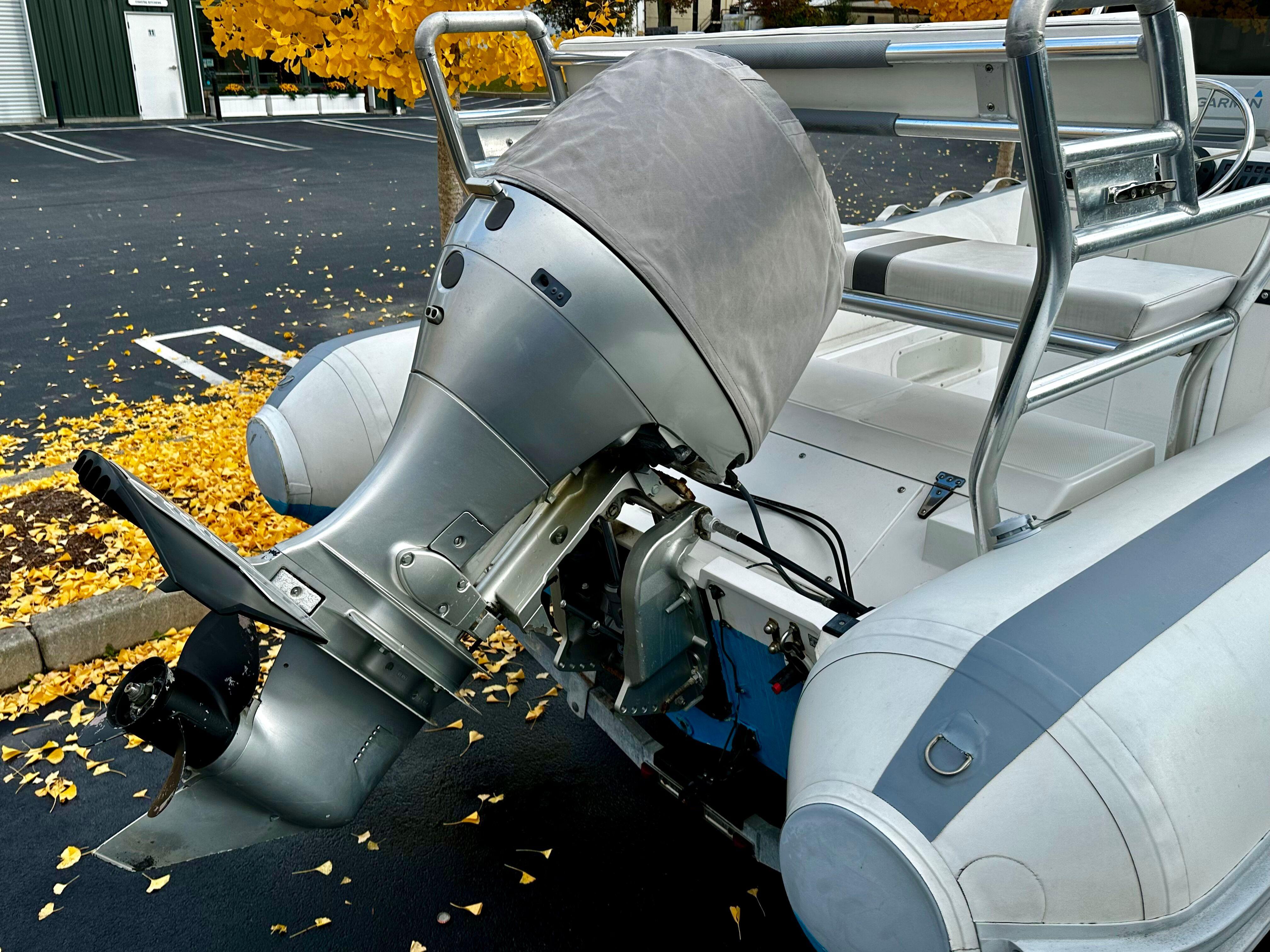 Lightly used and versatile RIB, well maintained with a contemporary refit in 2020. History as a tender for a large yacht where the boat spent most of her life on deck. Trailered and heated indoor stored for the past four New England seasons. Reliable power is provided by a Honda BF-90 HP with under 300 original engine hours.