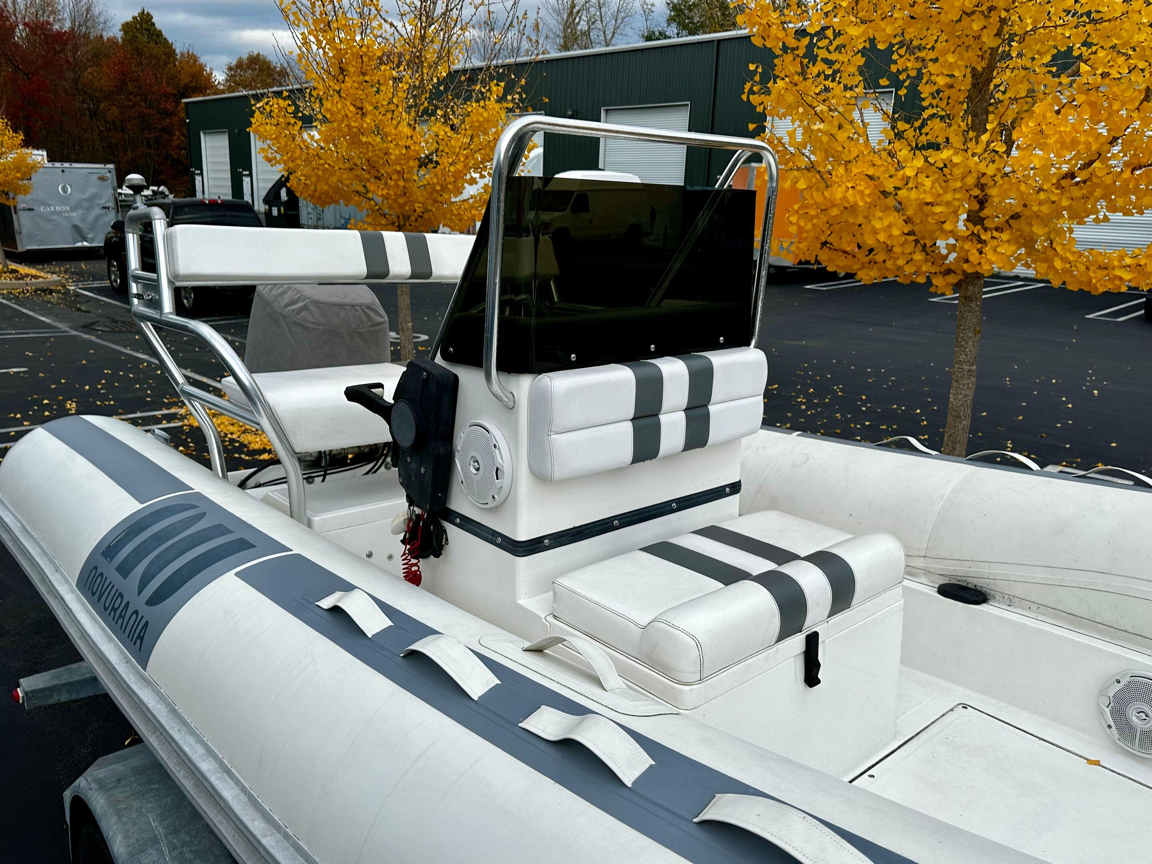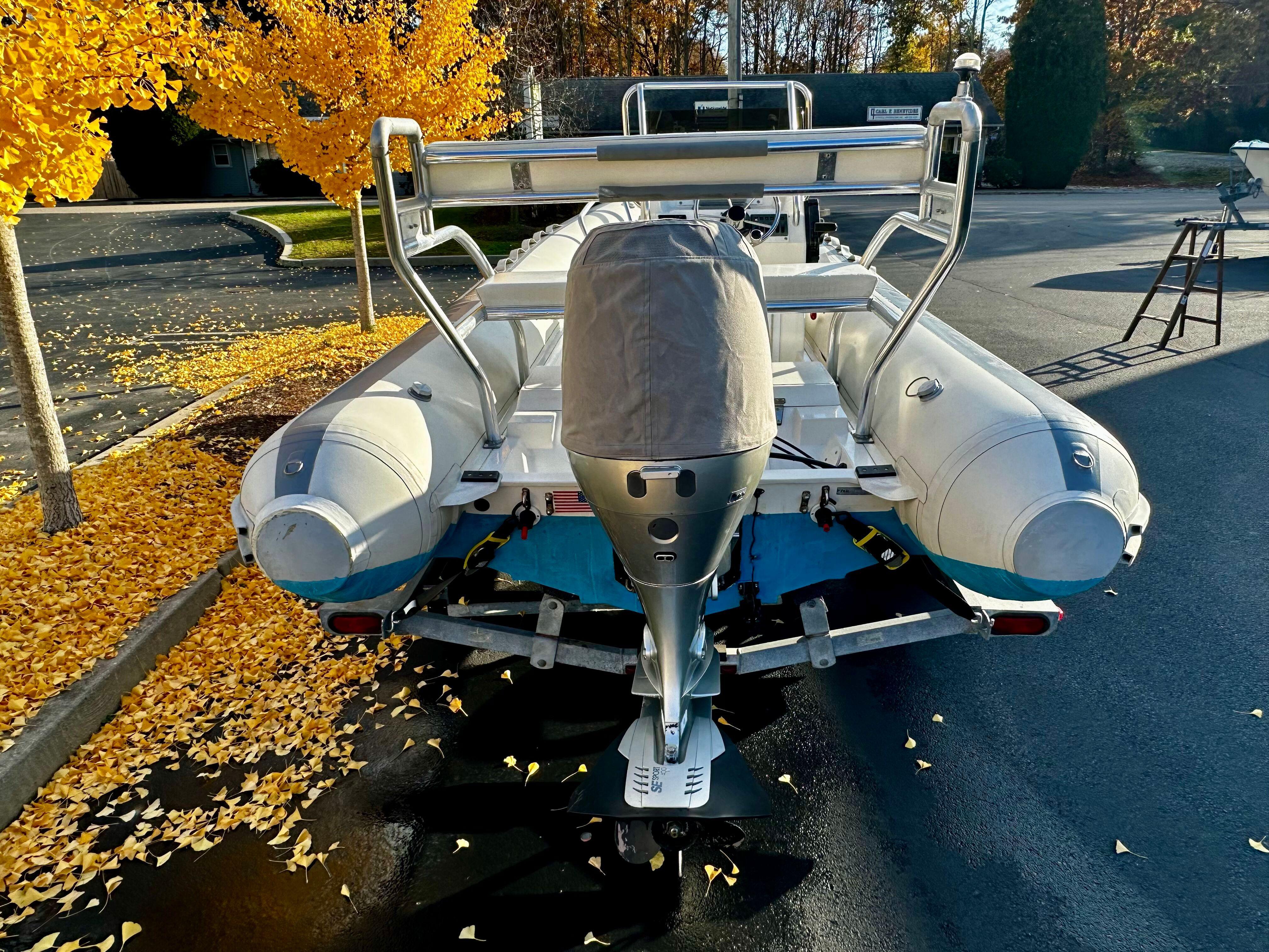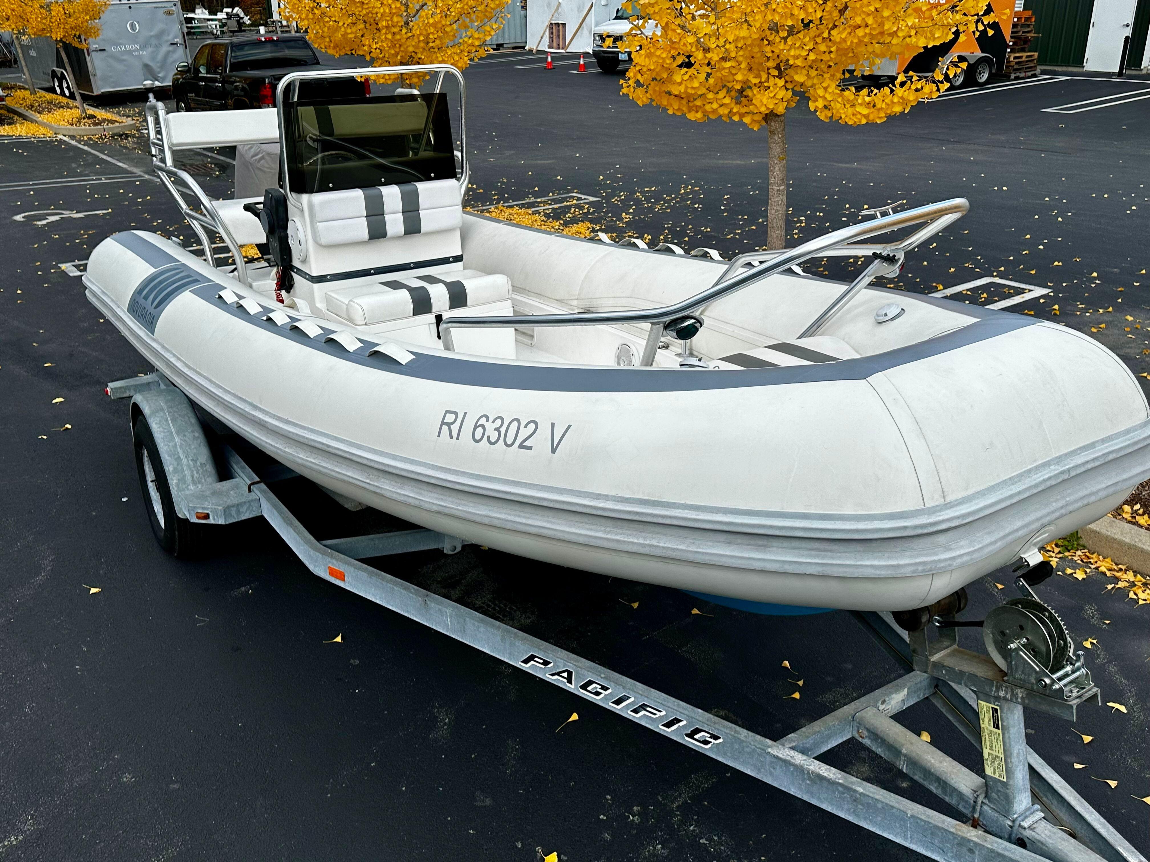 Lightly used and versatile RIB, well maintained with a contemporary refit in 2020. History as a tender for a large yacht where the boat spent most of her life on deck. Trailered and heated indoor stored for the past four New England seasons. Reliable power is provided by a Honda BF-90 HP with under 300 original engine hours.