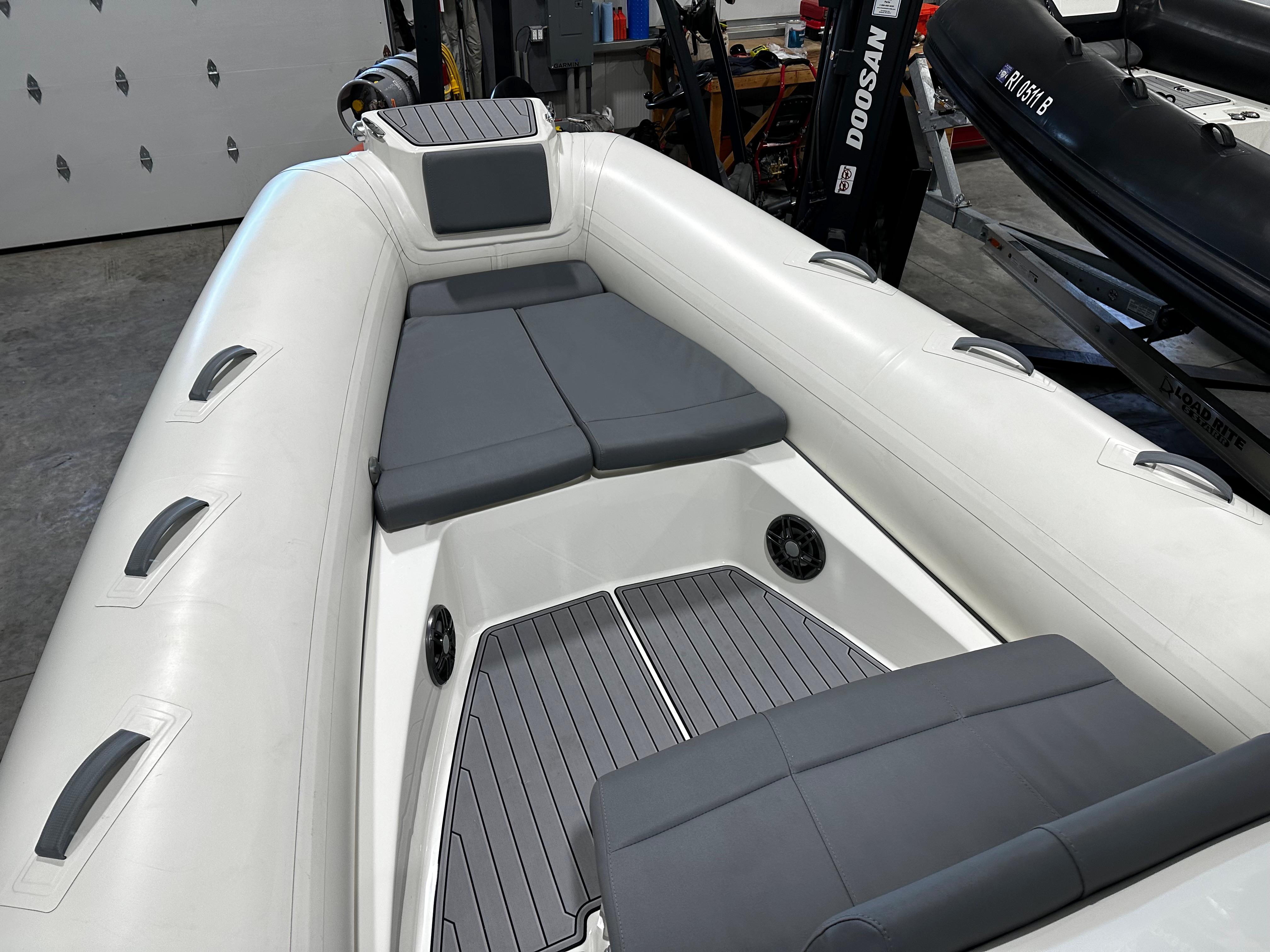 A family cruiser with sleek, iconic profiling and a gorgeous design, the Eagle 8 offers maximum safety and stability thanks to its deep V hull, extended waterline length, and extra-wide ORCA Hypalon® tubes.