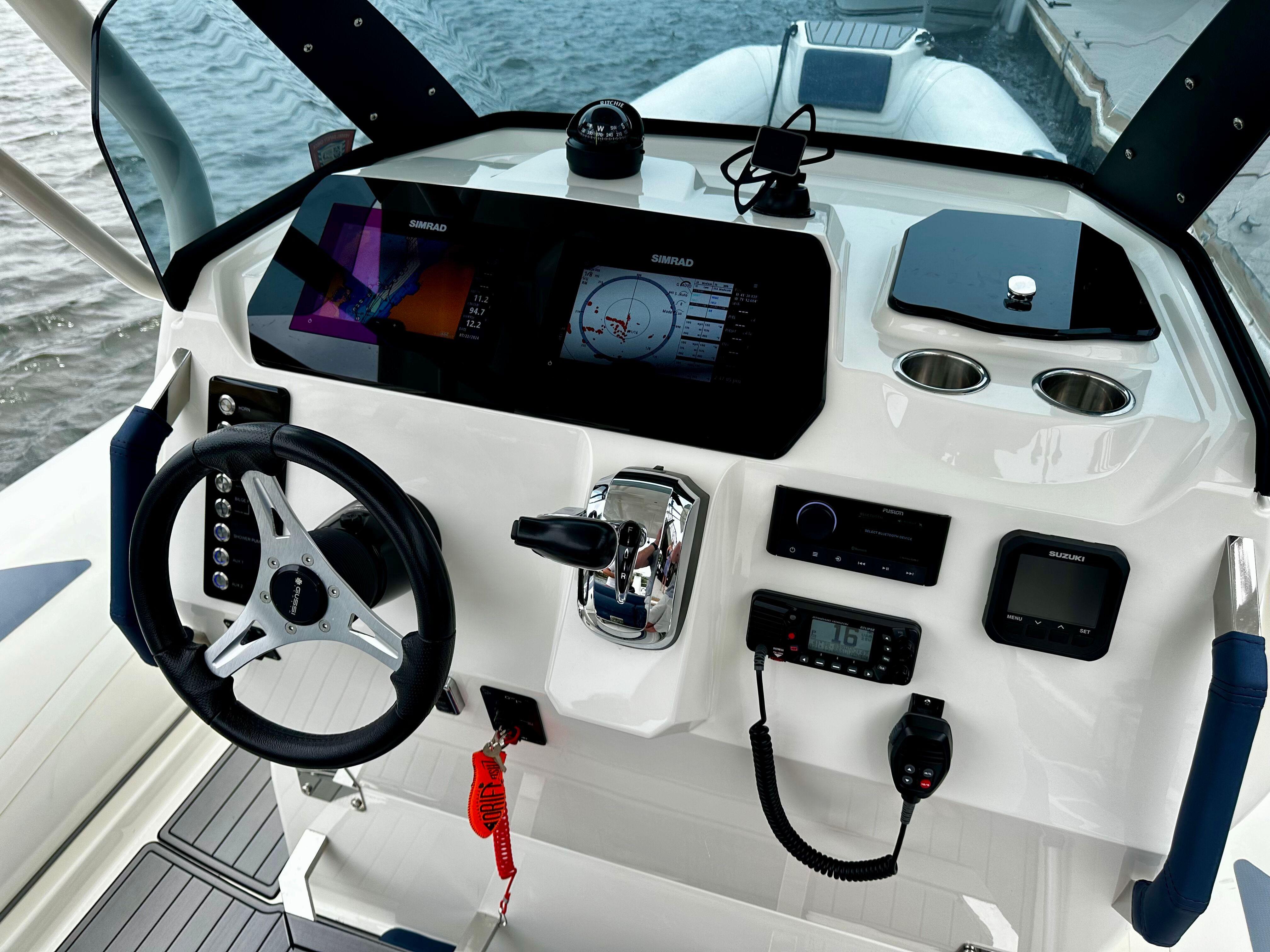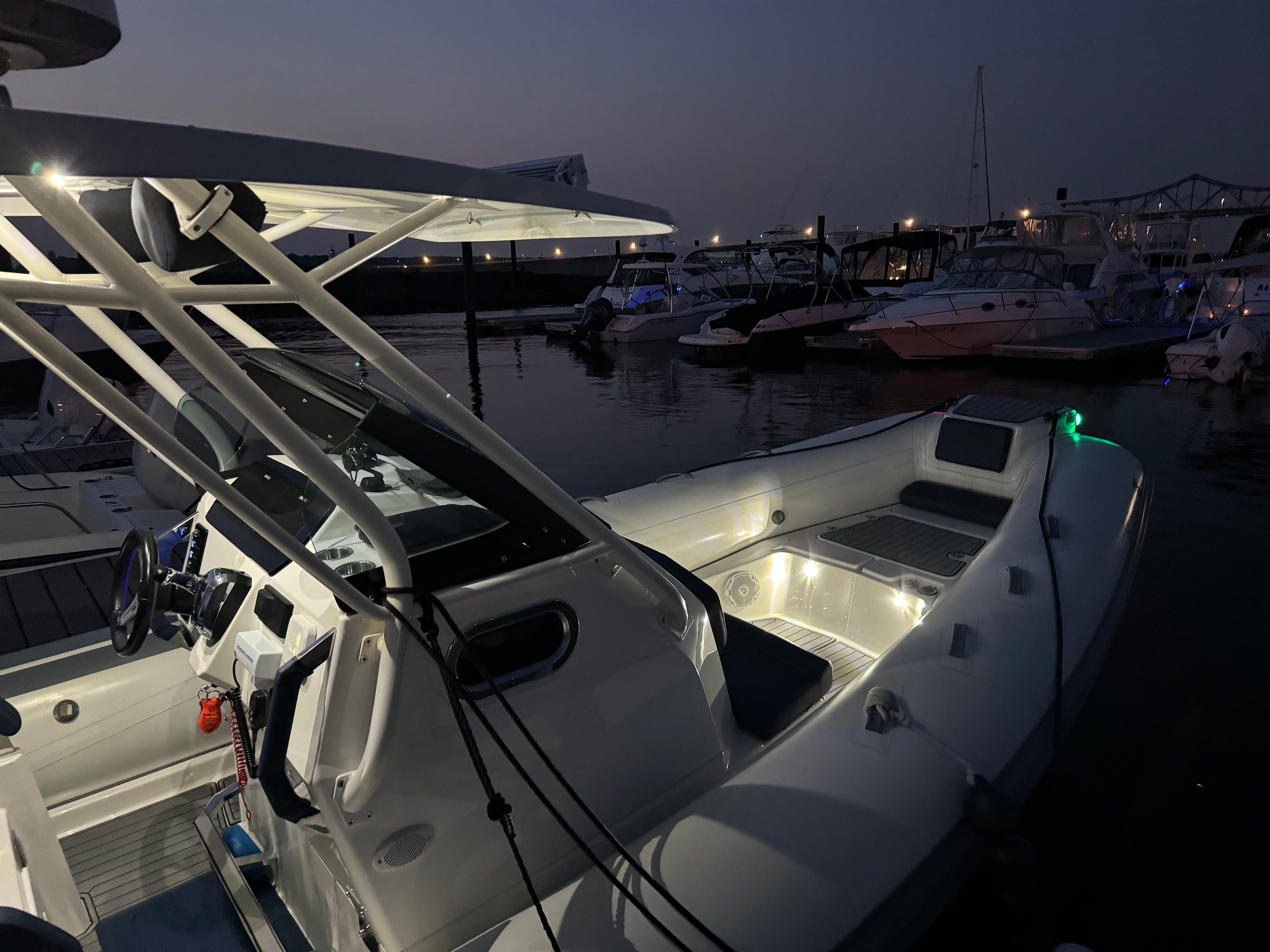 Great opportunity to own a top spec Eagle 8 in head turning colors powered by a Suzuki 350 HP outboard engine with counter rotating props. This large 26 ft RIB is made with extra-wide tubes, a square bow and an extended waterline to ensure you’ll enjoy a smooth stable ride.
