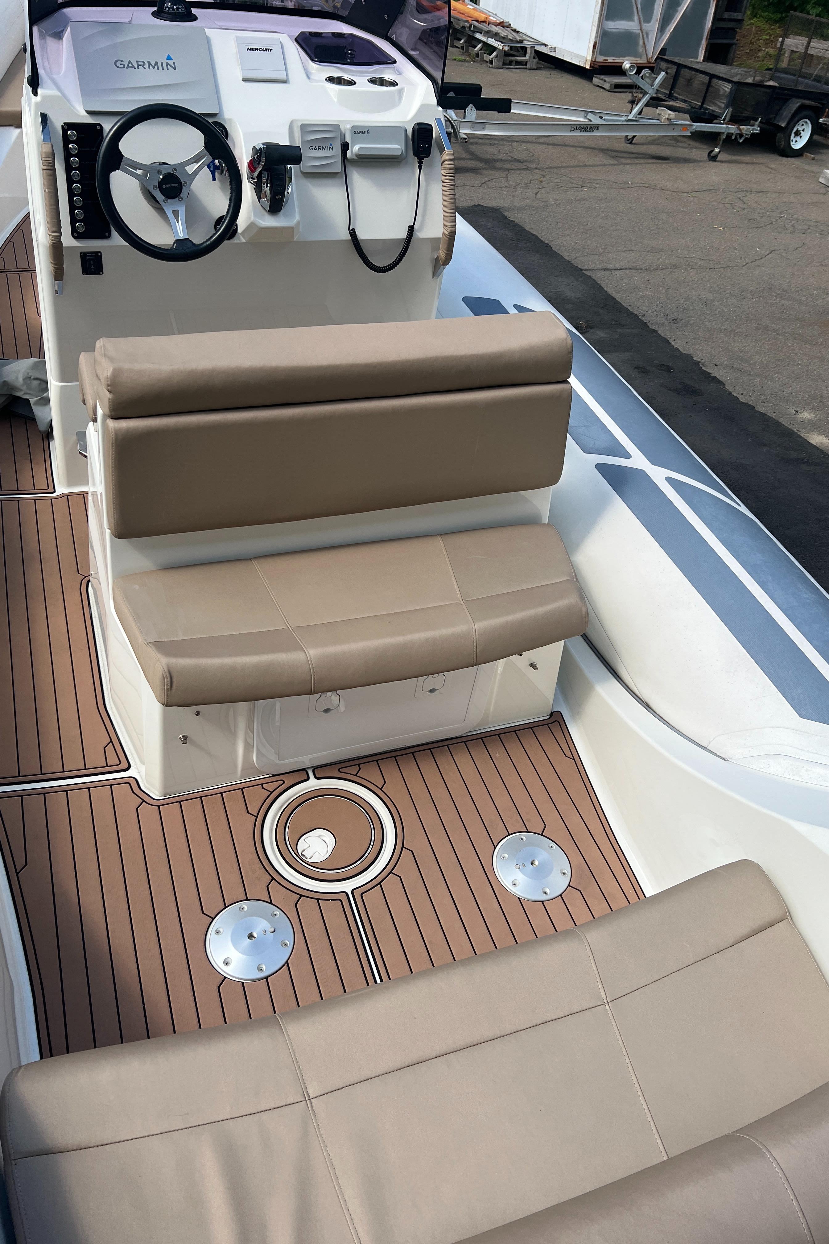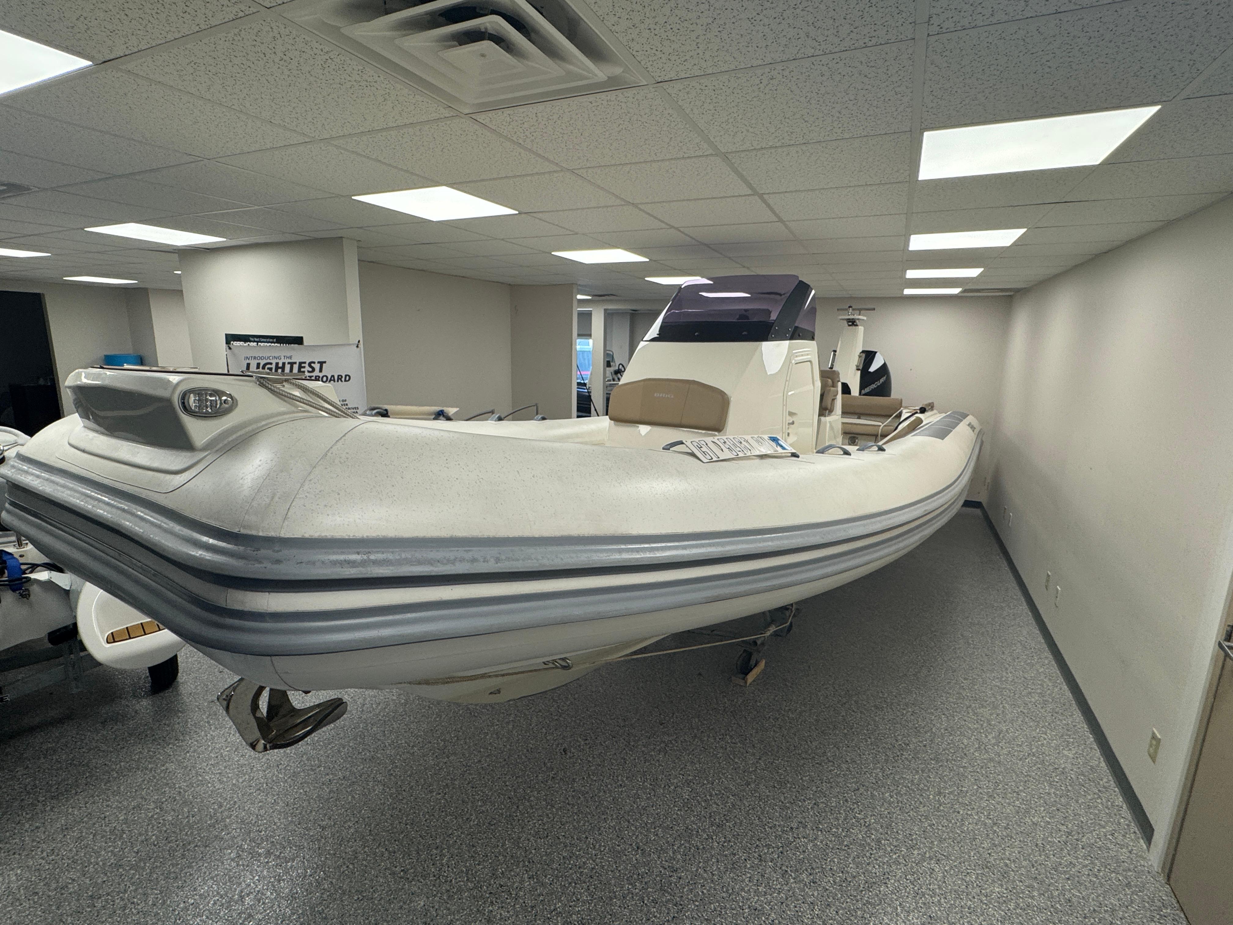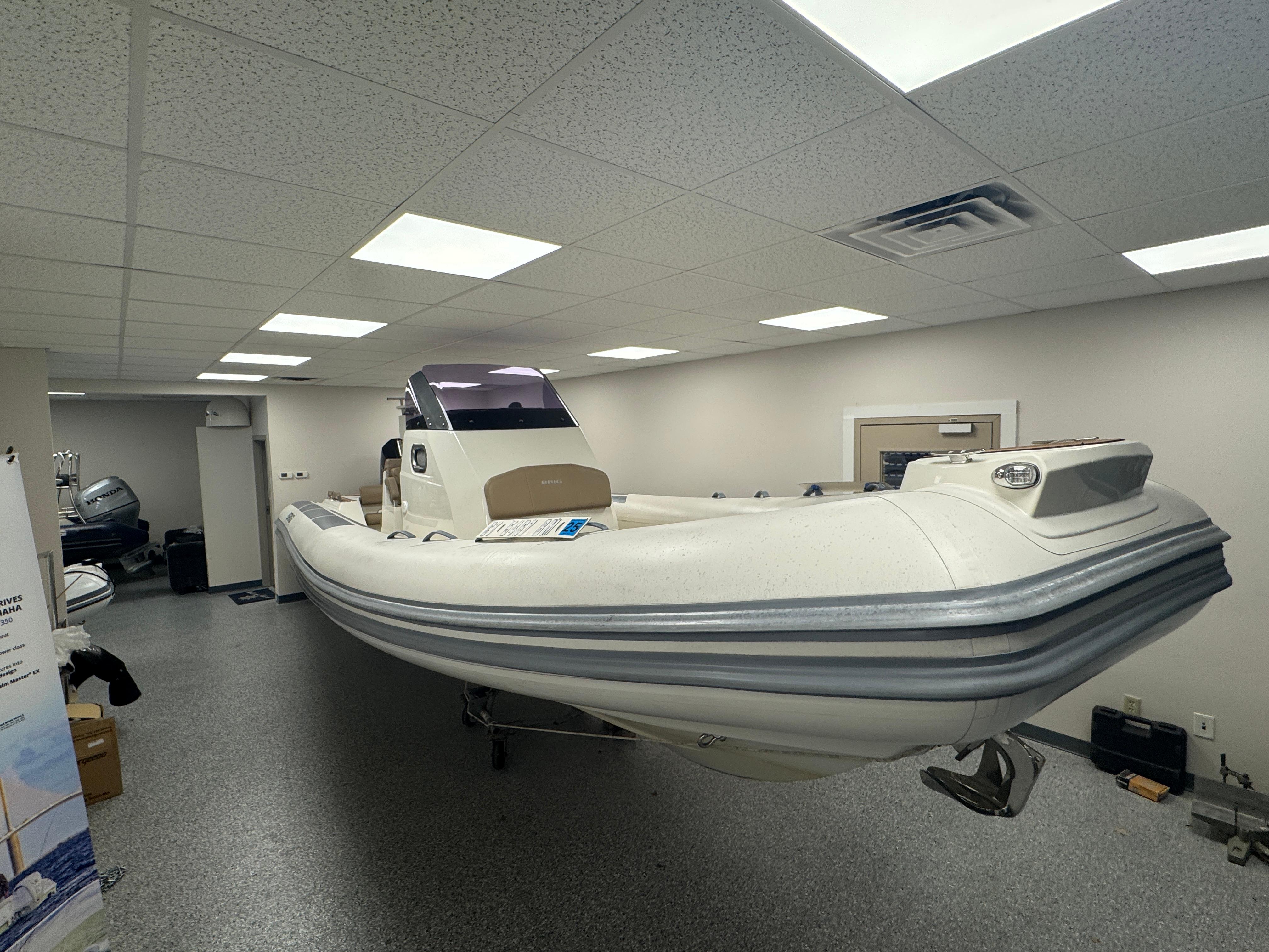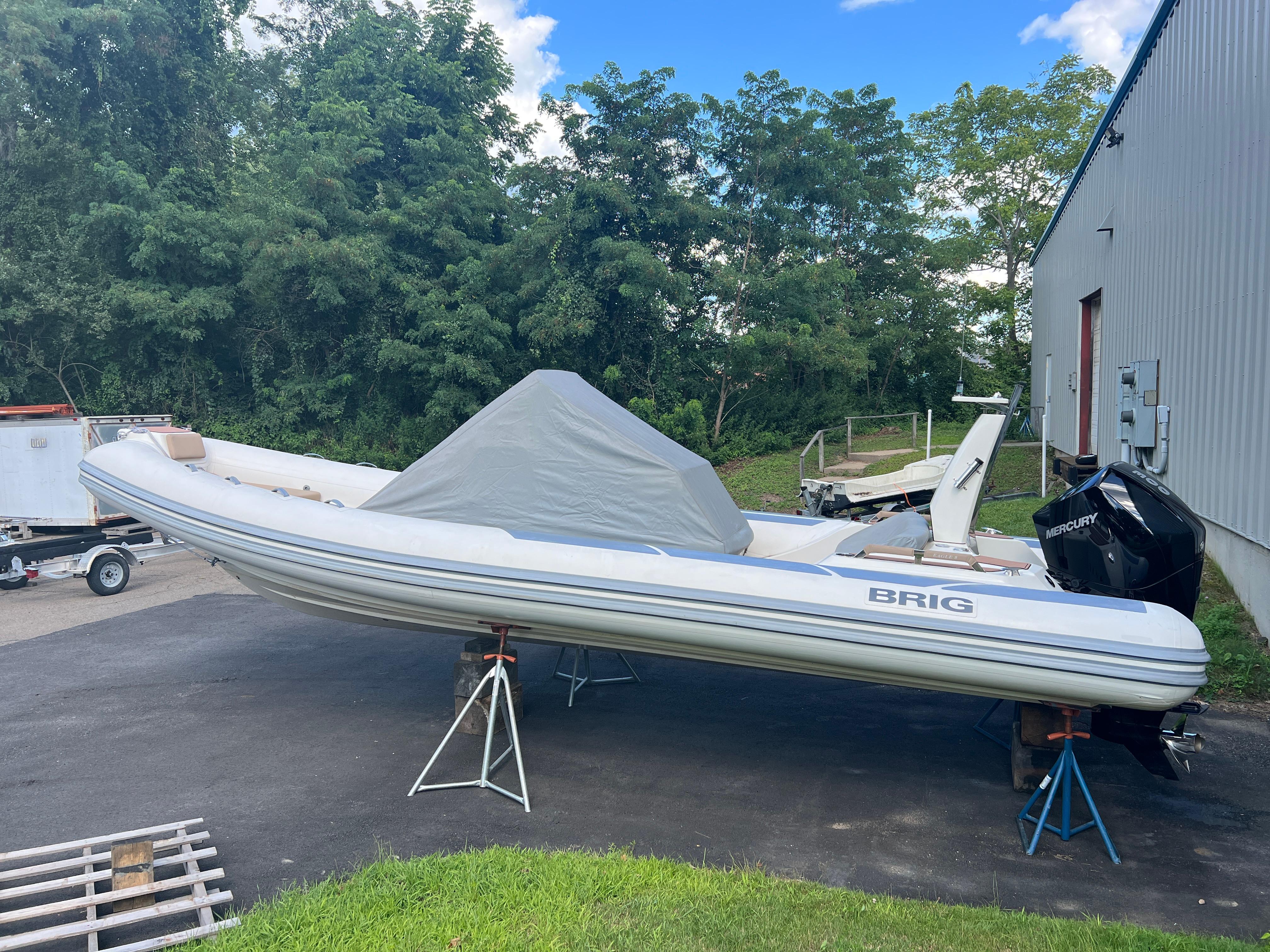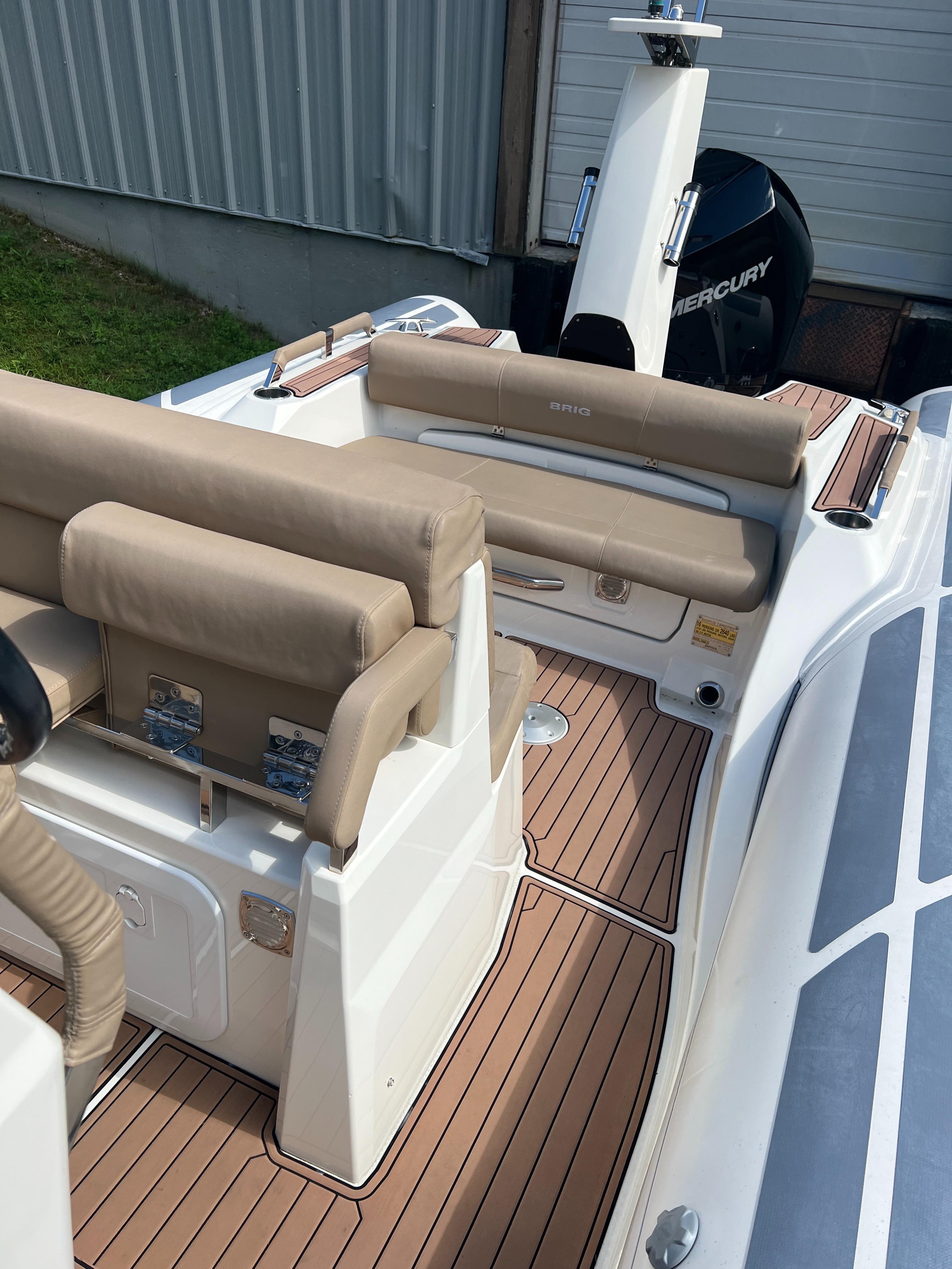 With a sleek, modern design and 26 feet of ample space for you and your guests, the Eagle 8 rigid inflatable boat by BRIG is the premier choice for anyone looking for an unforgettable boating experience. Our high-quality boats are made in Europe by people who are experts in their field. The Eagle 8 is a luxurious family cruiser that shows off everything boaters throughout the world have come to love about our durable, great-looking inflatable boats. The Eagle 8 is constructed with a deep-V-hull, which has become a signature of the Eagle series. This large 26ft RIB boat is made with extra-wide tubes, a square bow and an extended waterline to ensure you’ll enjoy a smooth, stable ride whenever you’re aboard. While the Eagle 8 isn’t the biggest RIB boat in our handsome lineup, it is big enough for you and your friends and family to enjoy with ease. It has enough comfortable seating for 11, and it can transport up to 16 adult passengers at once. The Eagle 8 has storage lockers in the front and back, and it’s capable of hauling a payload of as much as 4,270 pounds. With such a versatile, roomy boat, you’ll never have to worry about leaving anyone or anything at the dock. One of the many things that make the Eagle 8 stand out is the boat’s prominent radar arch. This arch is noticeable from a considerable distance, and it gives the sleekly-styled Eagle 8 an unmistakable appearance that’s indicative of all the fun you’ll have every time you hit the water in your inflatable cruiser.