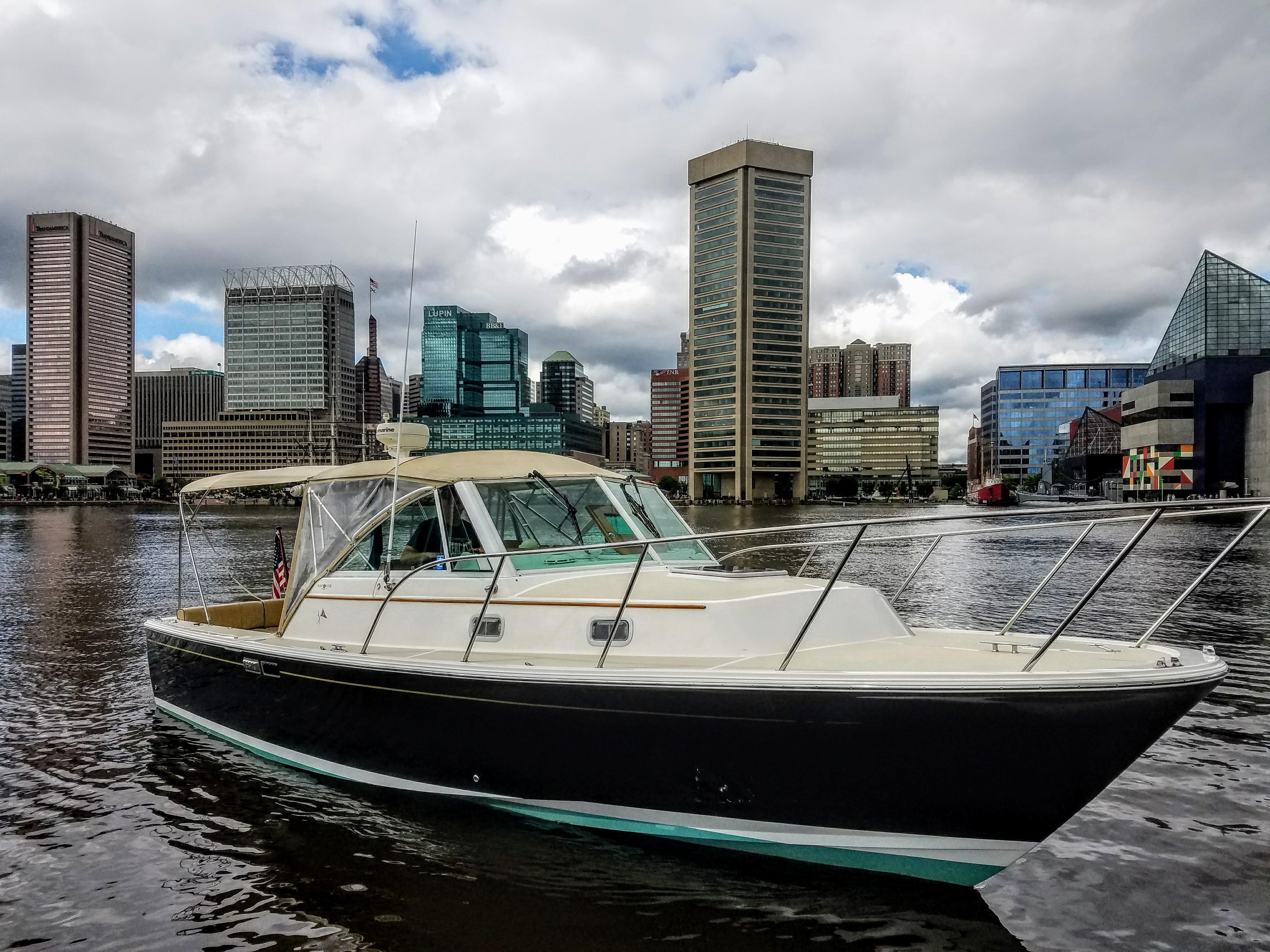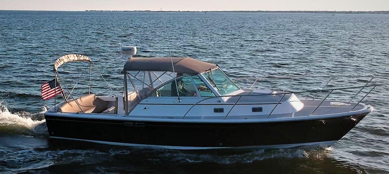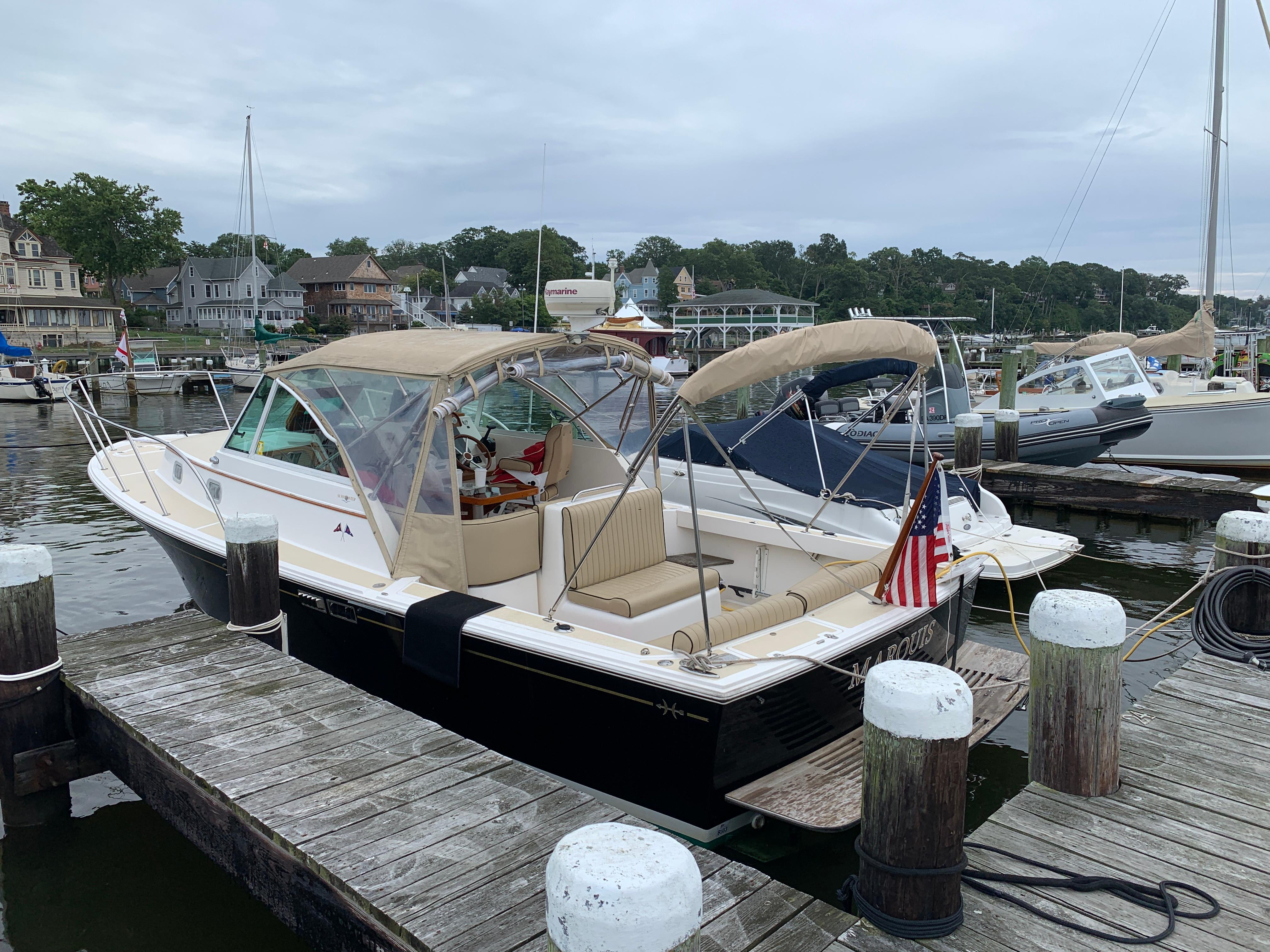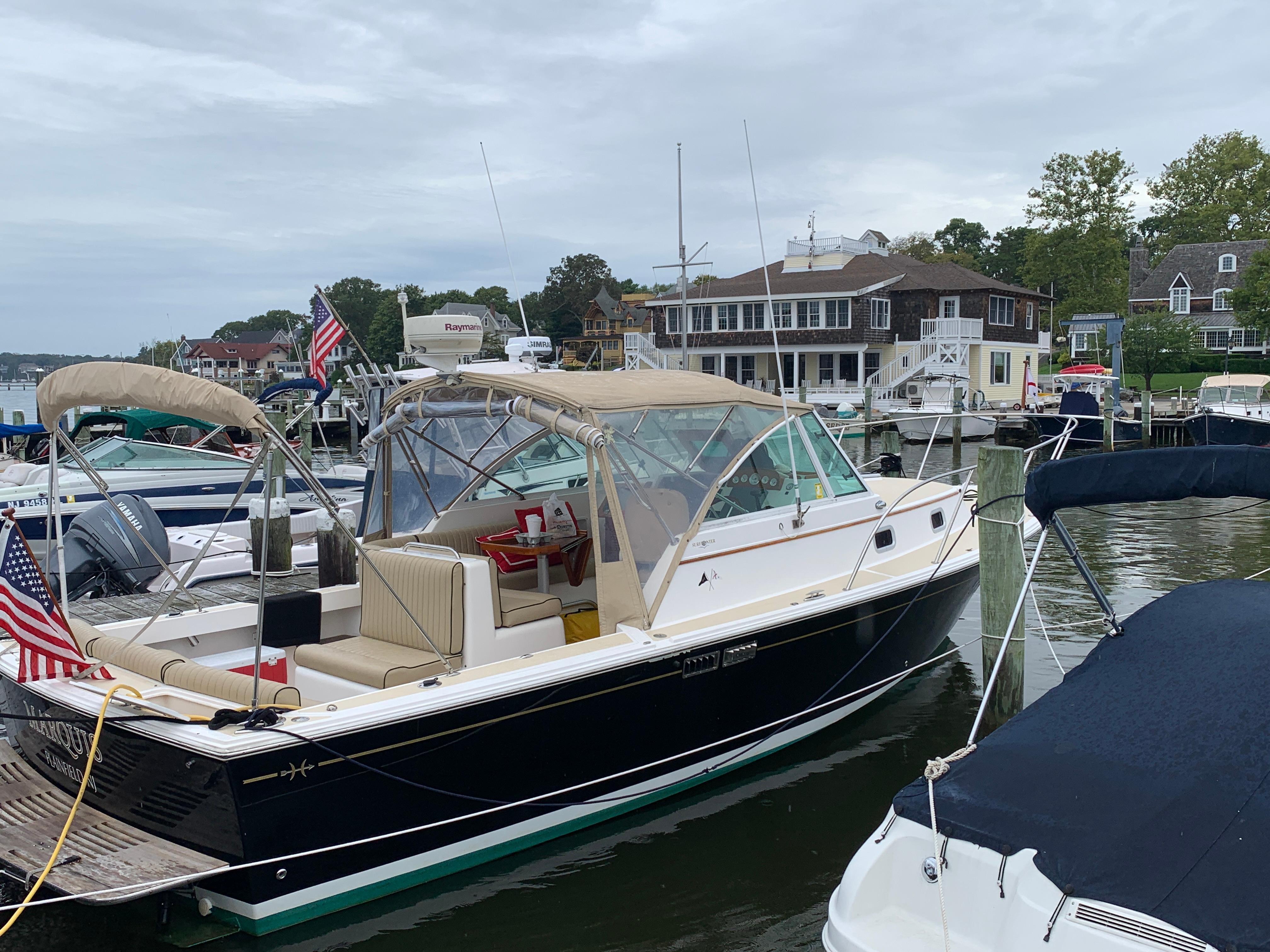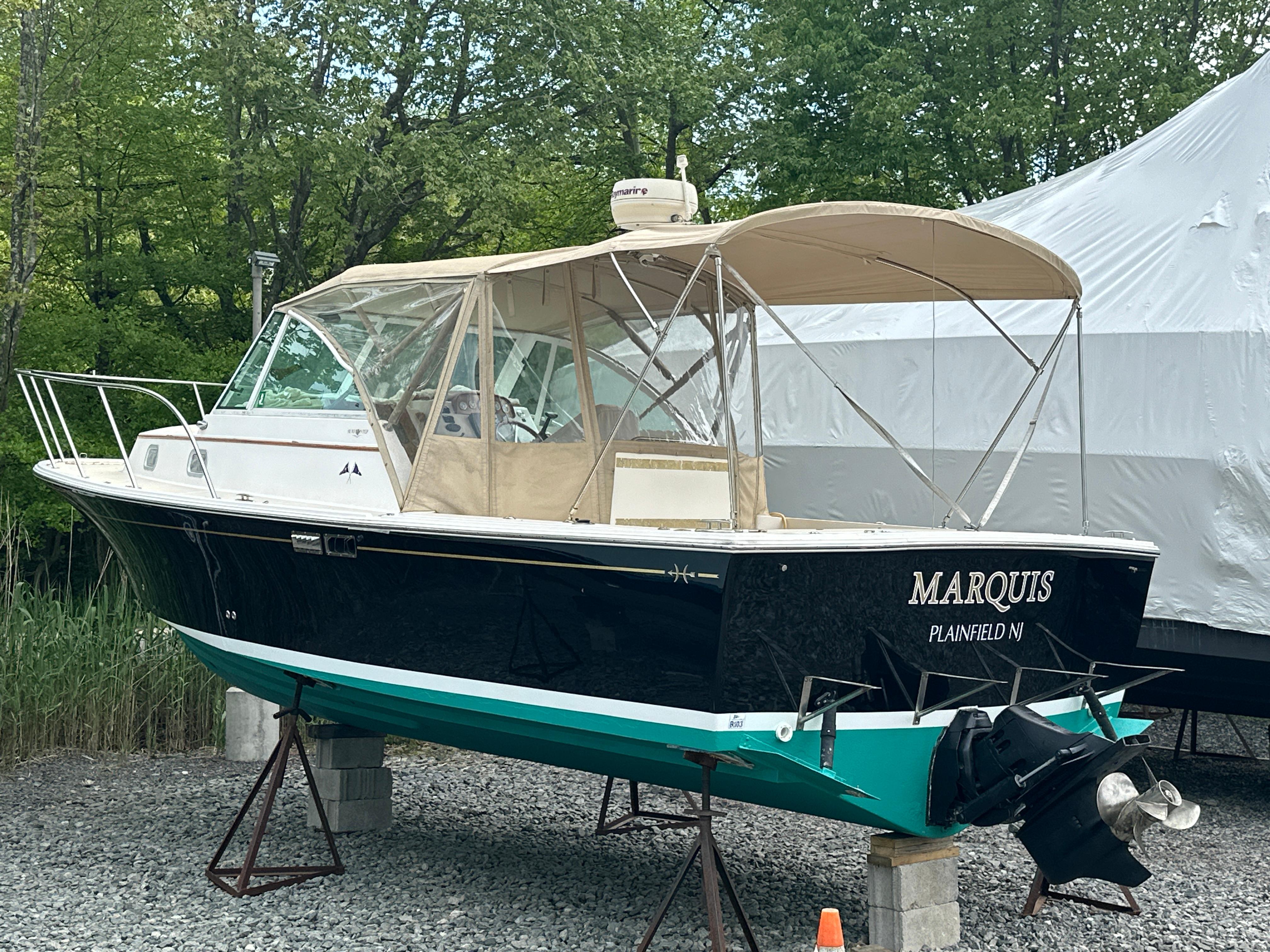 “MARQUIS” is a well-maintained, two-owner Surfhunter 29’. She spent a good portion of her life indoor stored by Hinckley’s Yachtcare program, and a few winters were lift kept in South Carolina until recently being seasonally used out of New Jersey. She has a quiet and economical gas inboard engine, a stern drive, and a bow thruster, allowing great shallow water accessibility and dock movement.