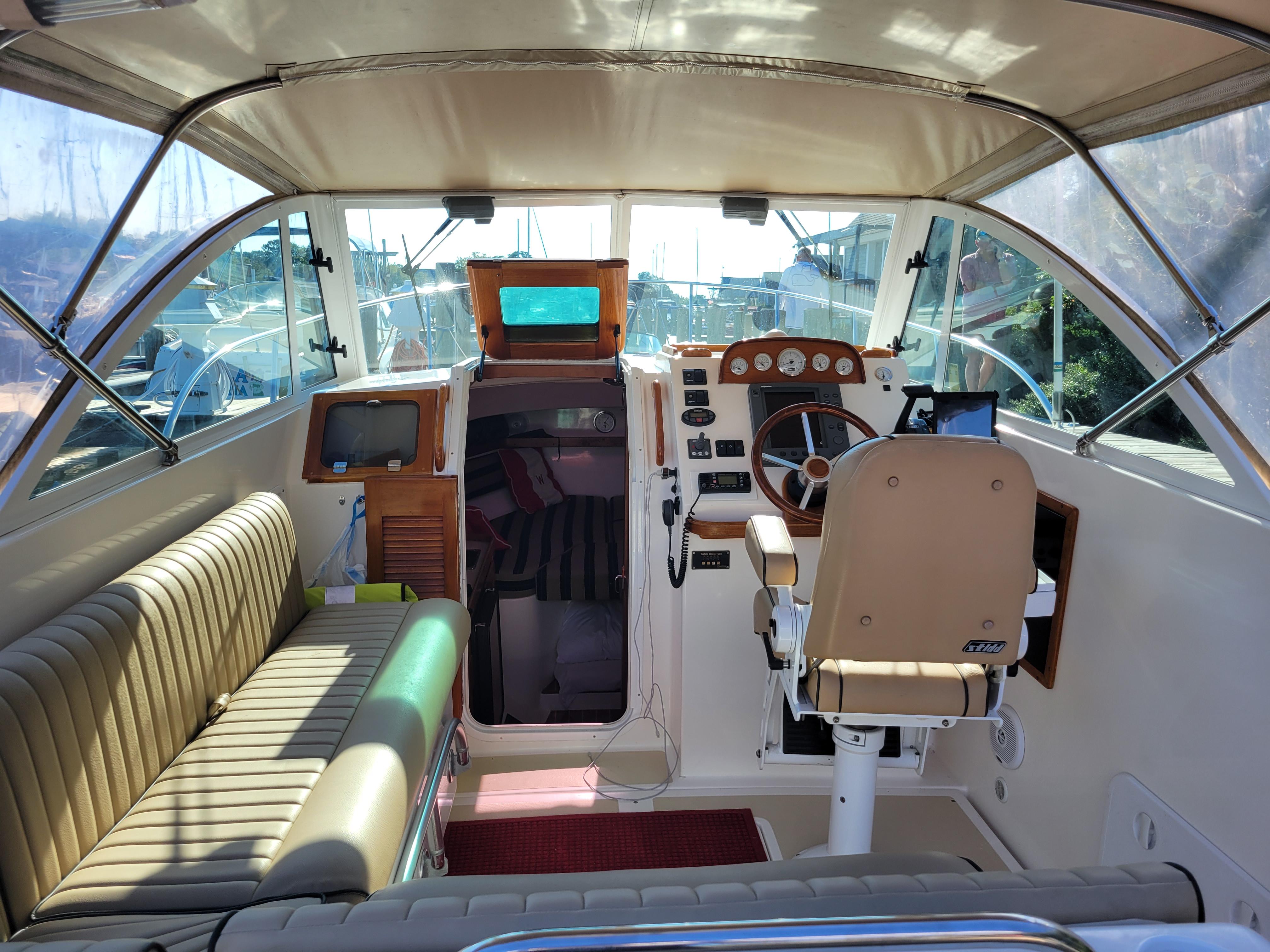 - Collapsable aft cockpit bimini allow all deck areas aft of the helm to be shaded