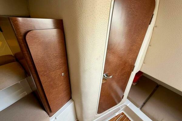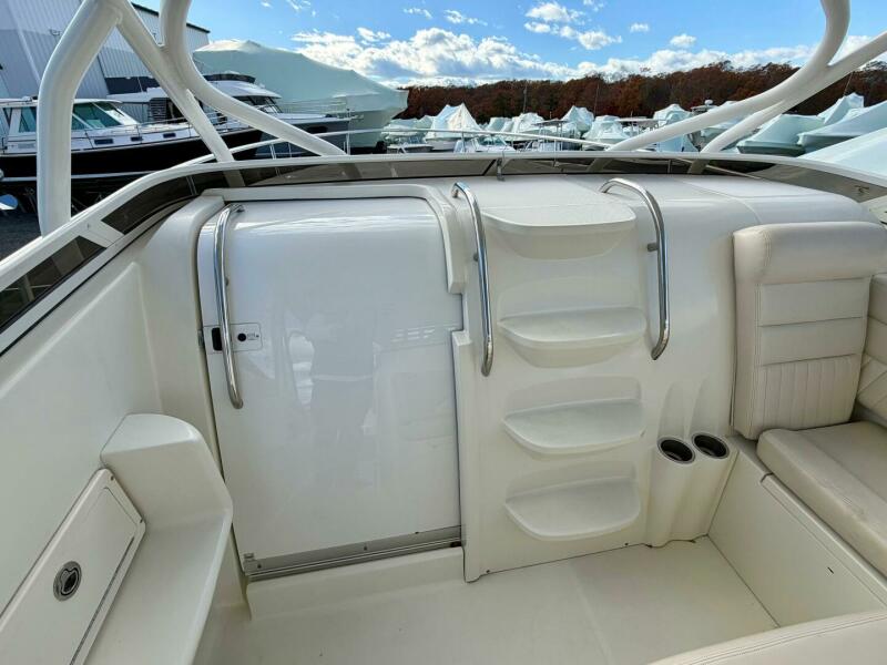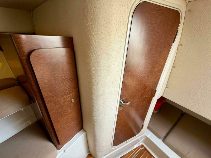 - (2) glove boxes, (1) clear glass starboard on the helm console