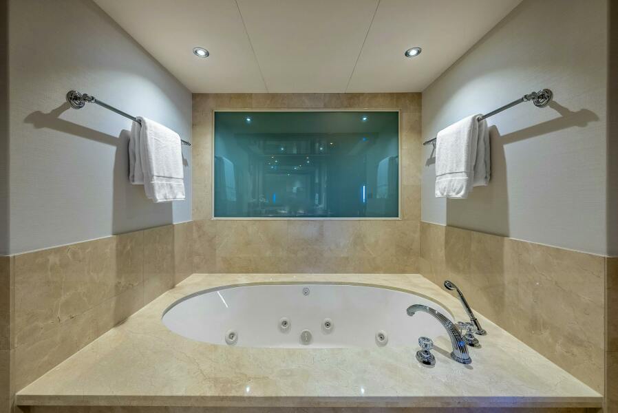Her bridge deck stateroom, presently used as the Captain’s cabin, was originally designed as a guest suite for an owner that wanted to run the yacht as an owner/operator and who wanted to be close to the bridge. In that case, as it was under one of her previous owners, the Captain relocates to the starboard side aft crew stateroom.