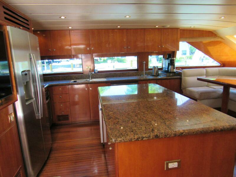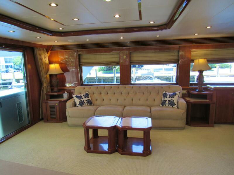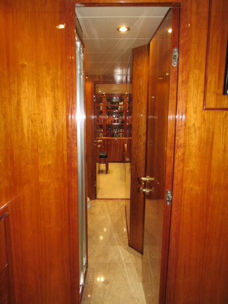 Staterooms are on the lower deck including a full beam master, VIP, twin berth stateroom and library with single berth and pullman.